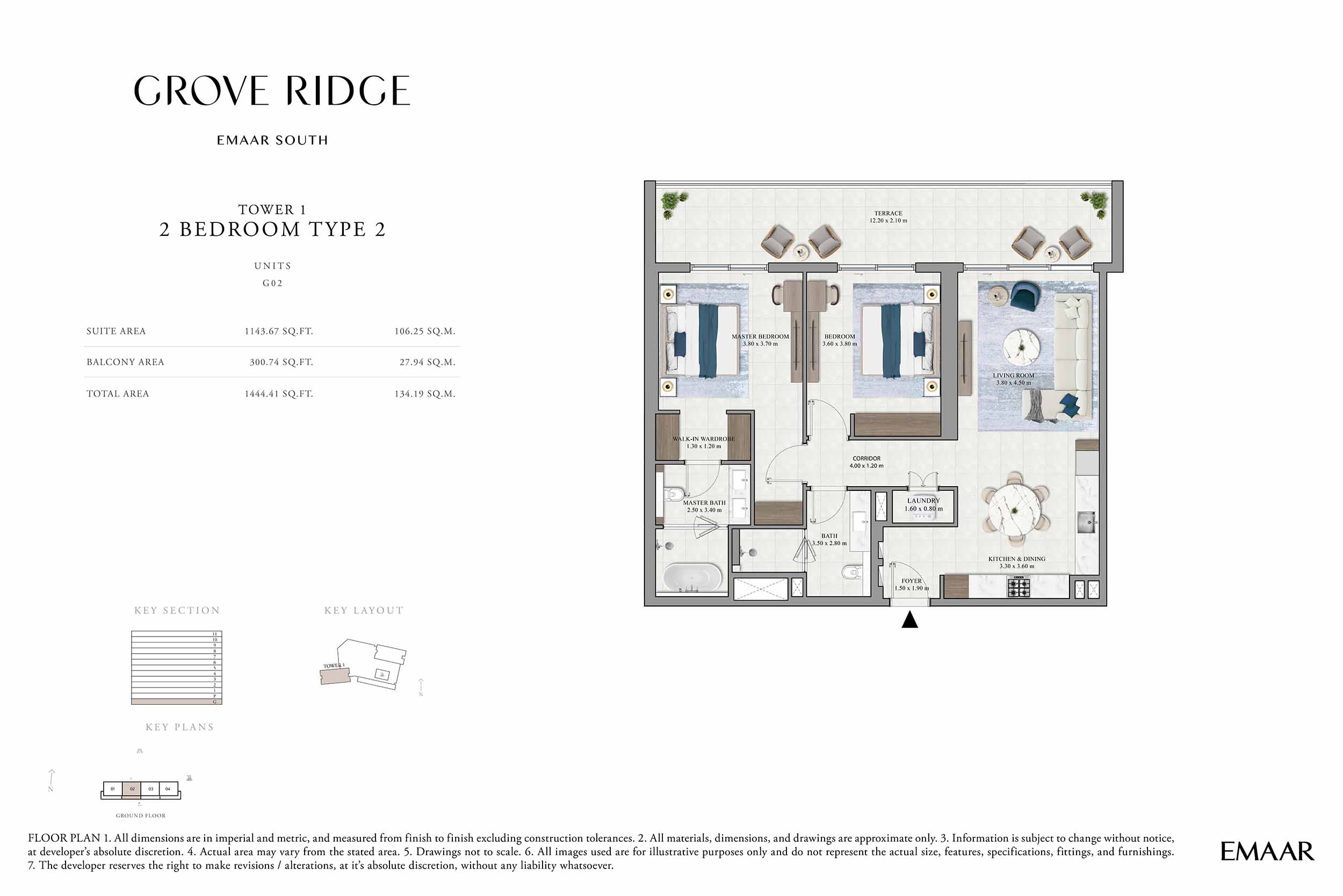 | Tower 1 | 2 Bedrooms | Gorund Floor (Type 2-Unit-G02) | 1444.41 Sq Ft | Click Here |