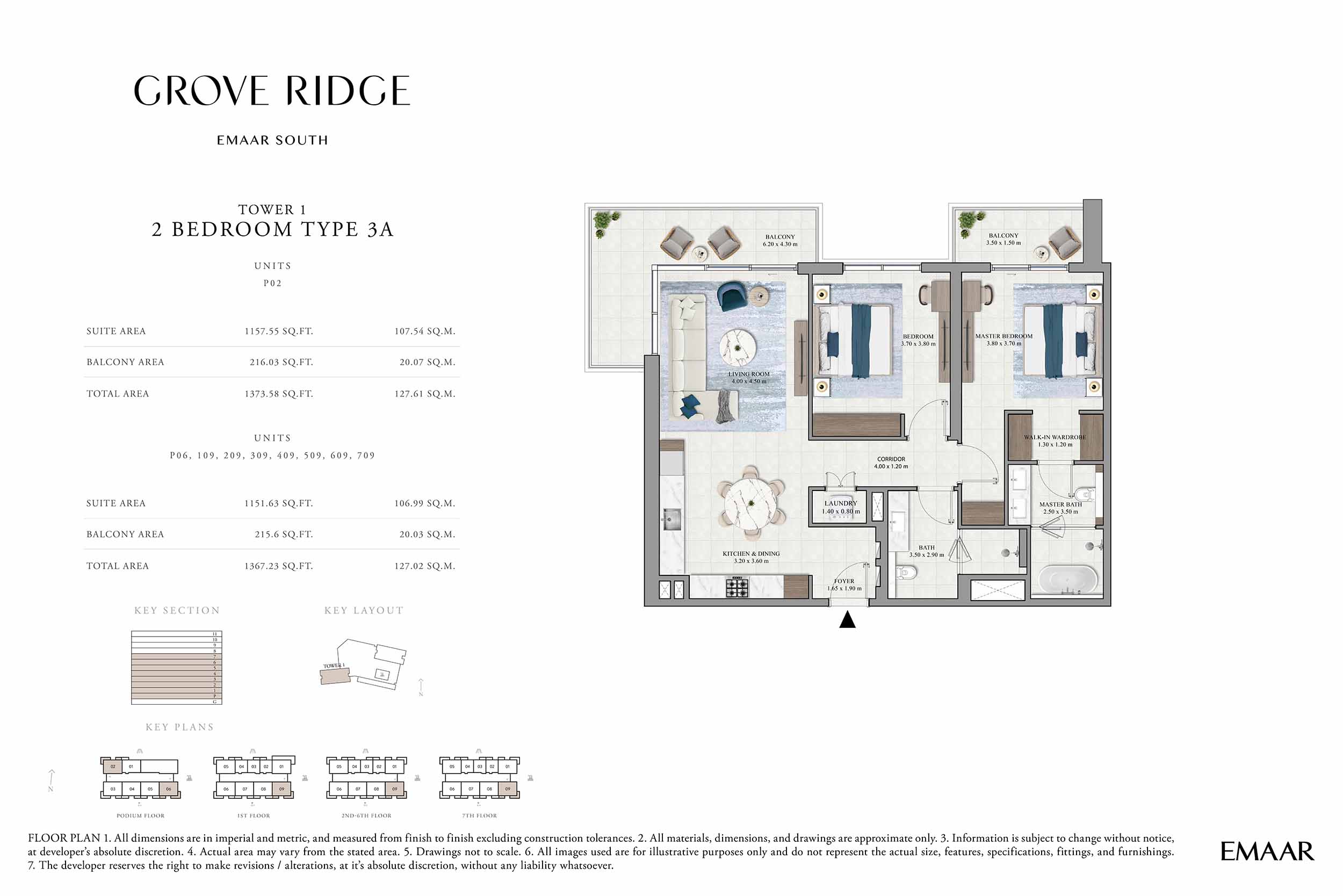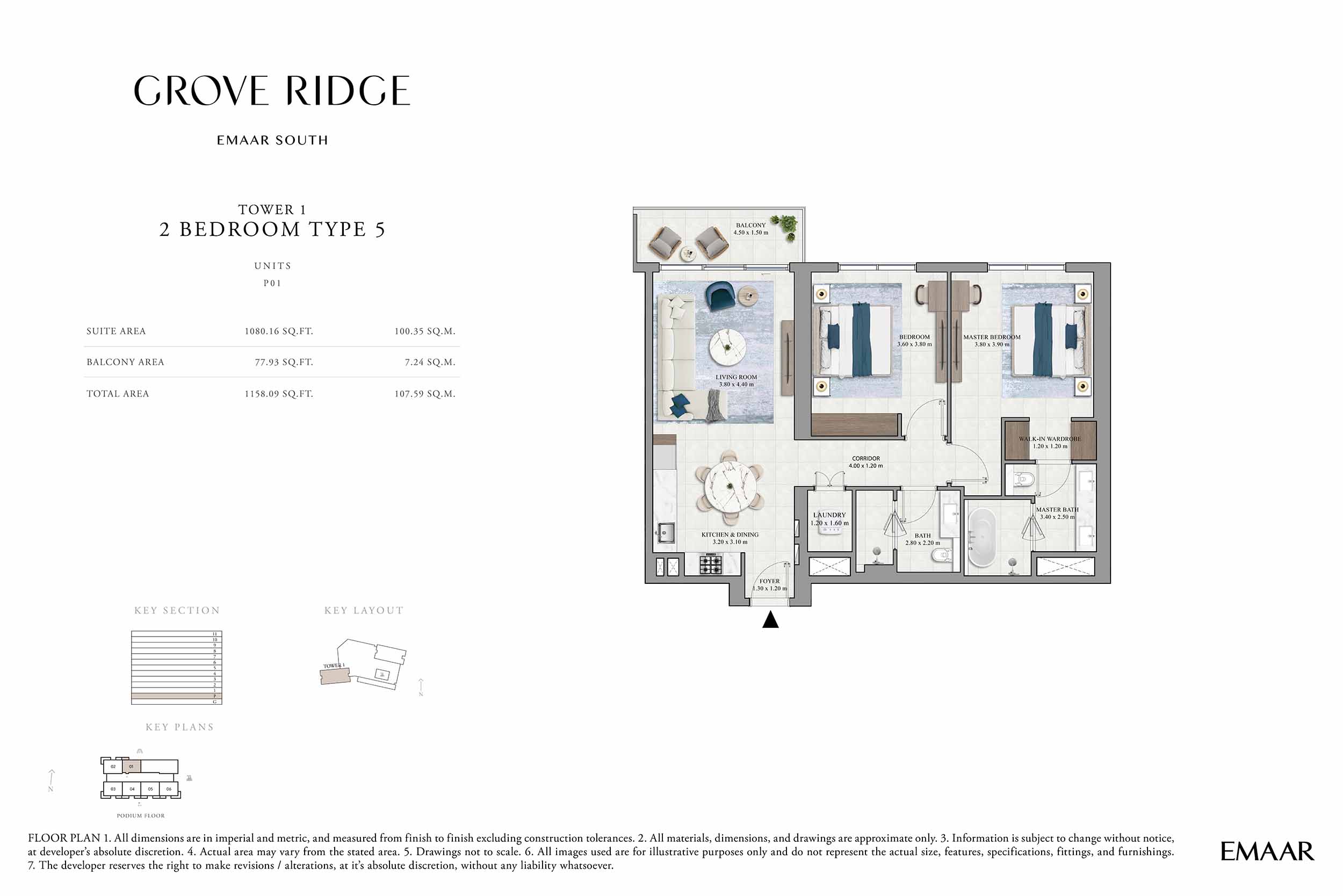 | Tower 1 | 2 Bedrooms | Podium Floor (Type 5-Unit-P01) | 1158.09 Sq Ft | Click Here |