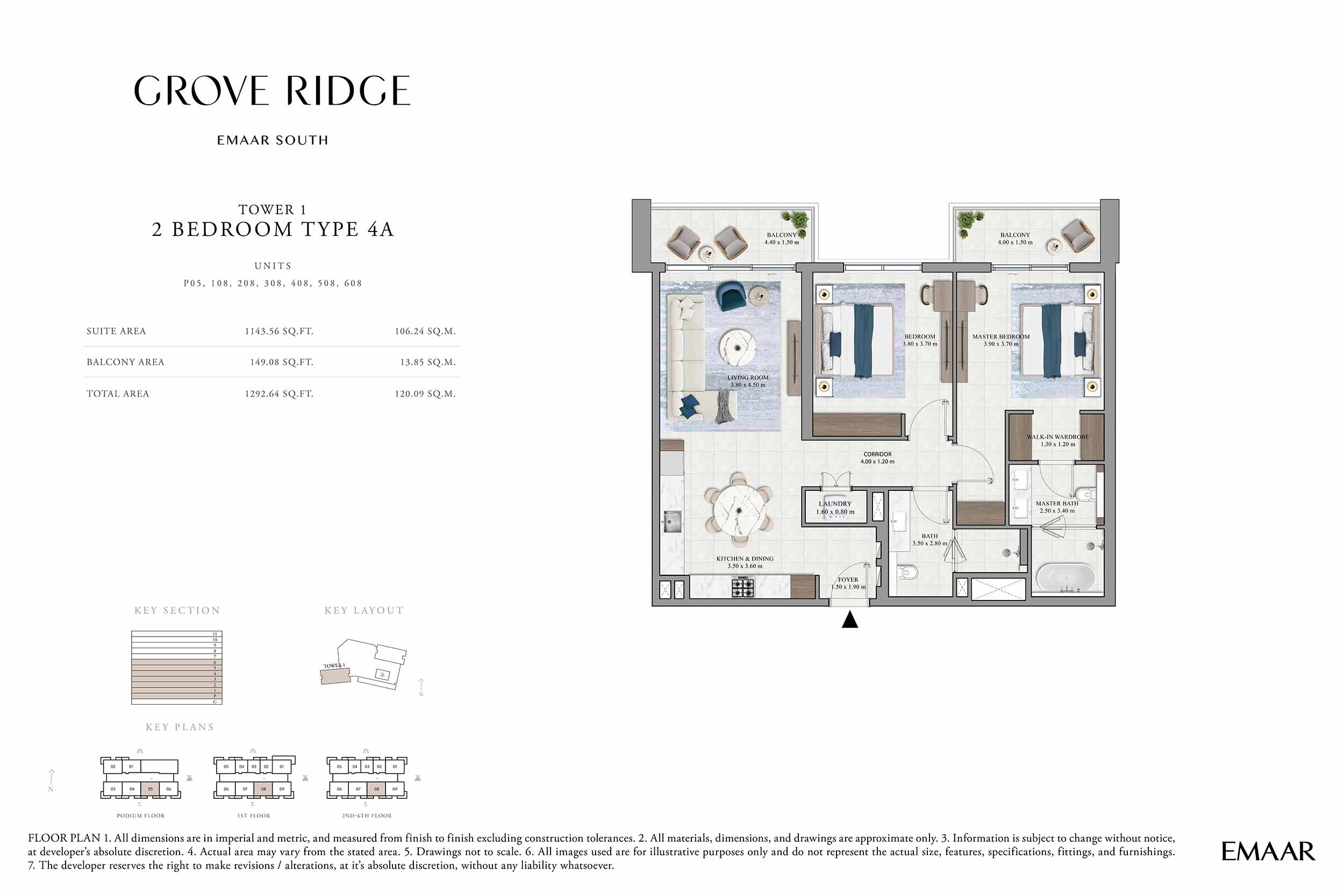 | Tower 1 | 2 Bedrooms | Podium Floor-6th Floor (Type 4A-Unit-P05-608) | 1292.64 Sq Ft | Click Here |