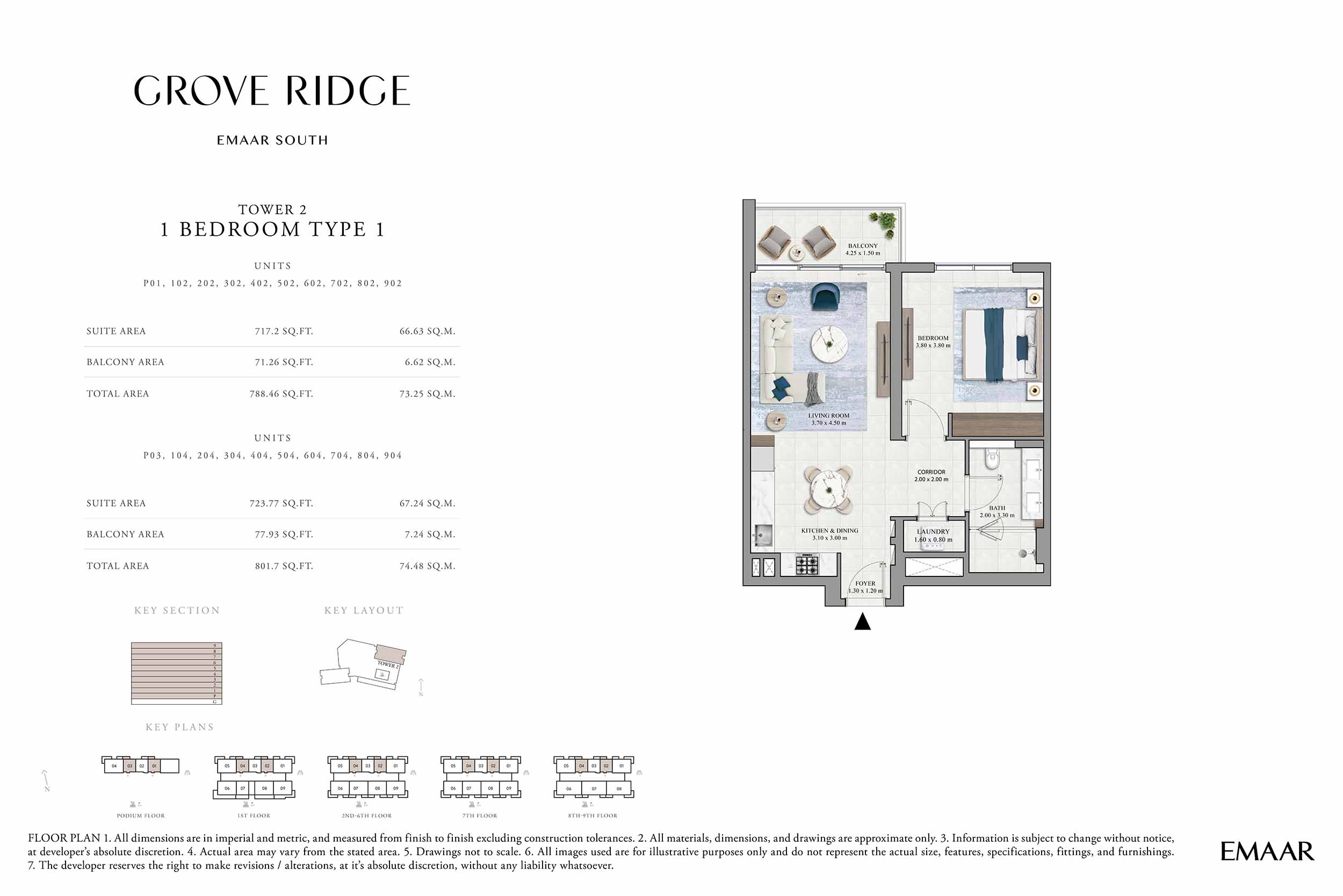 | Tower 2 | 1 Bedroom | Podium Floor-9th Floor (Type 1-Unit P01-904) | 8017.00 Sq Ft | Click Here |