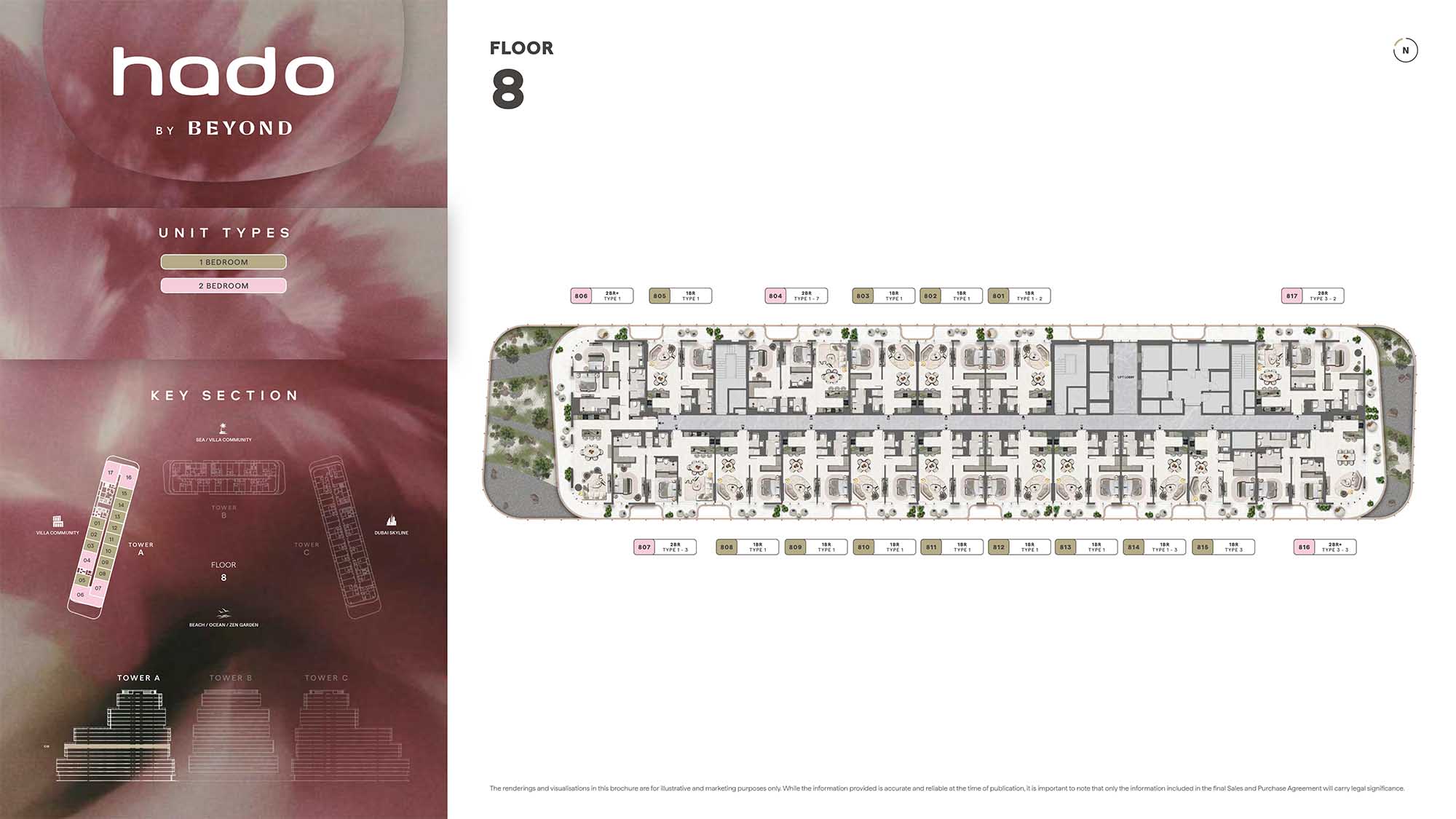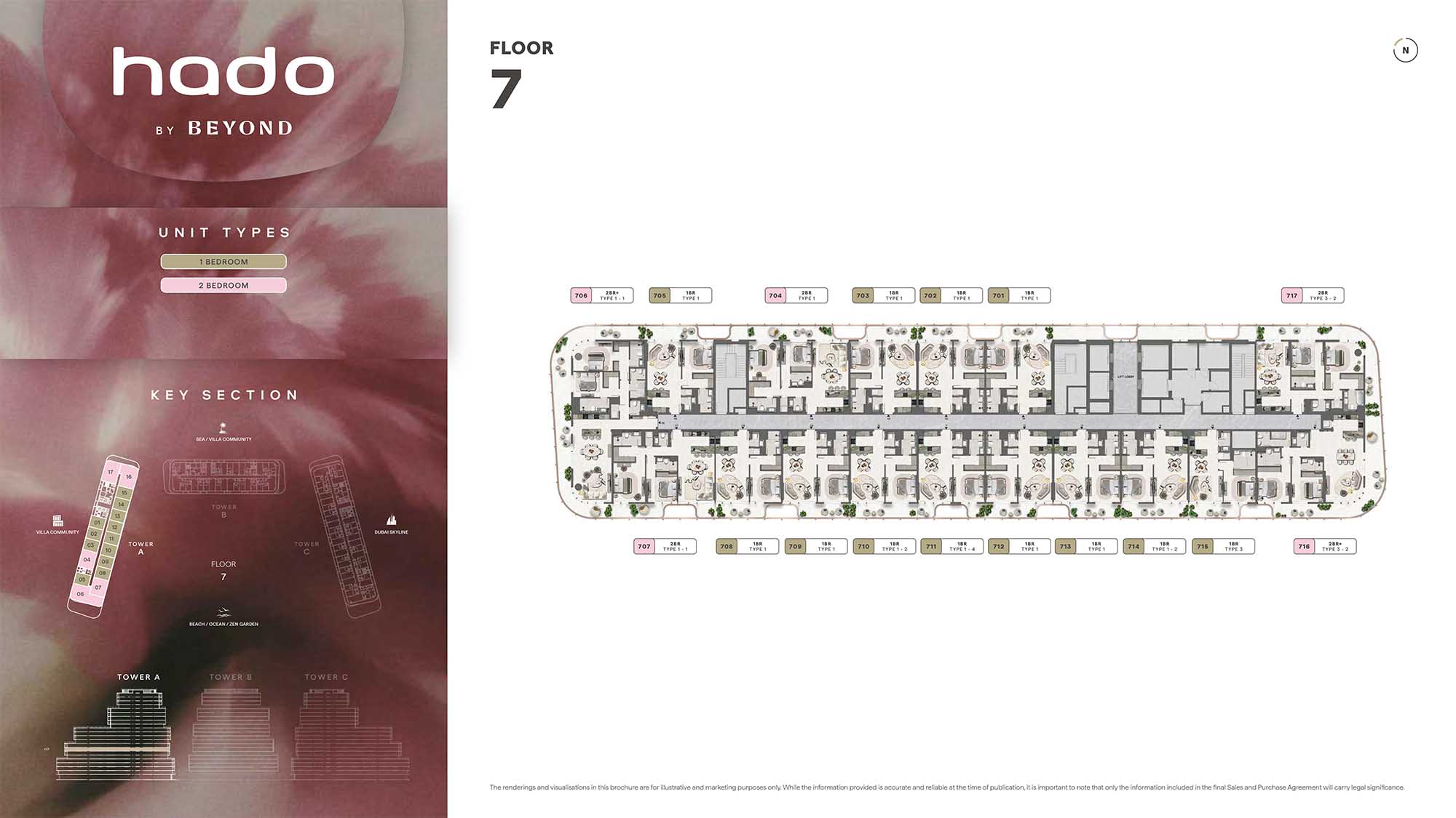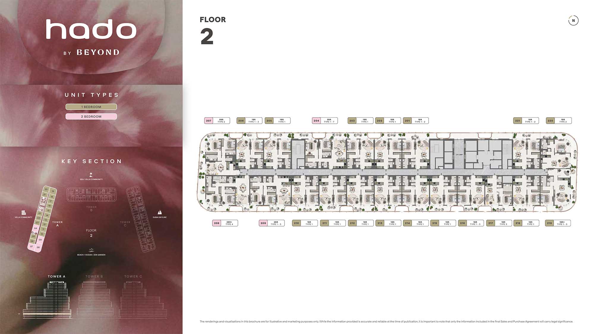 Beyond Hado comes with exclusive selection of floor plans lined with 1 to 4-bedroom apartments, simplex and duplexes to redefine the lifestyle. All the houses will enjoy the ample floor to ceiling heights of 3.2 metres, corner-to-corner glazing and wide terraces that take the living spaces to the sea or cityscape. Interiors are arranged on systematic zoning plans; where open living spaces take place to take advantage of natural illumination but bedrooms are divested into secluded and very intimate spaces. Kitchens are designed as stone and timber functional islands lending credence to the central volume of living, and bathrooms are planned as a minimized spa-like arrangement. Each of the layouts is a combination of architecture and individual comfort and ambience.