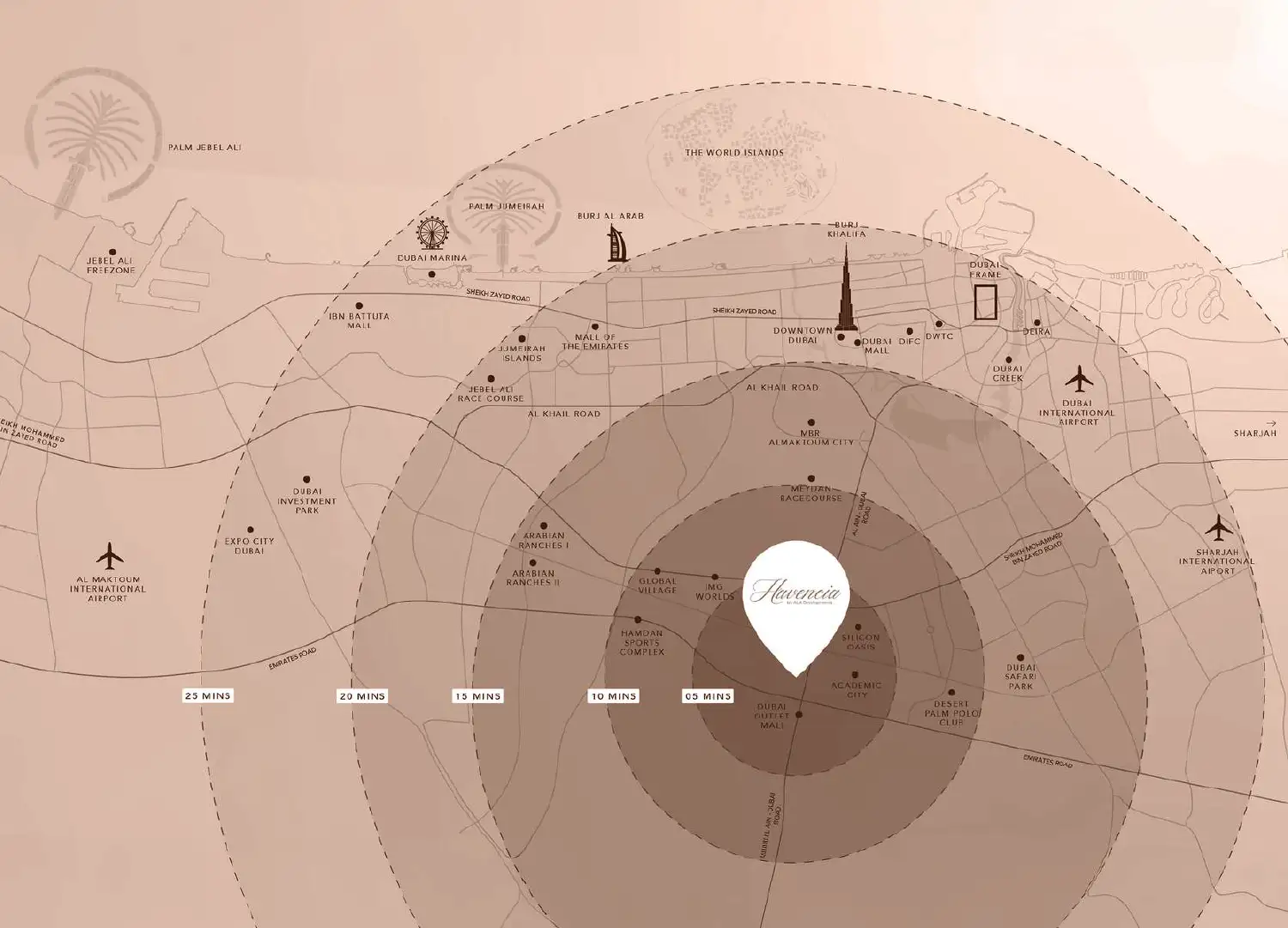 Havencia by ALA Developments is a premium residential advancement made available with studios, 1 and 2-bedroom apartments in the heart of Dubailand Residence Complex (DLRC). Located on the territory of complex District, this is a sophisticated residential declaration influenced by vision, legacy, and building accuracy. This philosophy is converted into a mid-rise residential that is characterized by stunning vertical lines, warm modern colour schemes, and well-expressed balconies in the form of rhythmic lines. The exterior of the building can be characterized by minimalism of the modern style, which has been influenced by the refinement of the textures and minimal detailing, and the podium and entrance can be implemented in the style of the boutique-hotel. The lobby is two stories high, there is a dense technological dialogue of marble finish, custom-made lighting systems, sculptural seating, and edited collections - establishing the mood of an address that is not only personal but epic. All the architectural choices are deliberate, all the decisions are based on the successful mix of aesthetic and utilitarian urban principles.