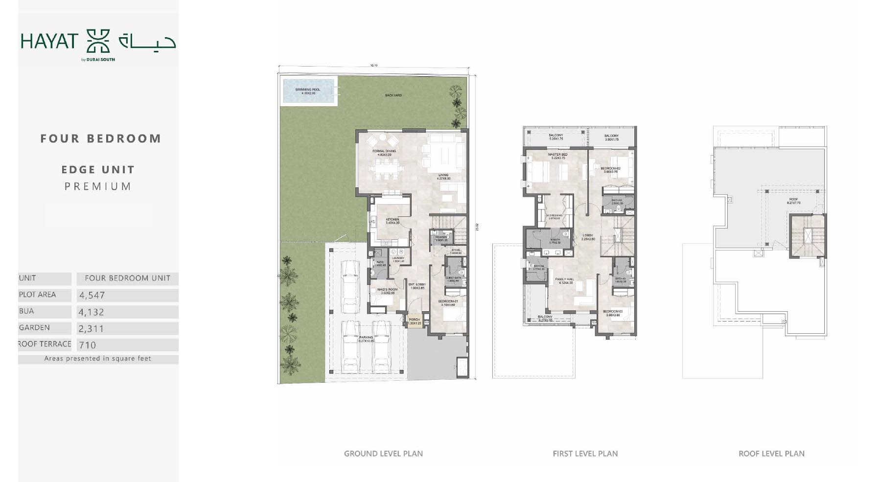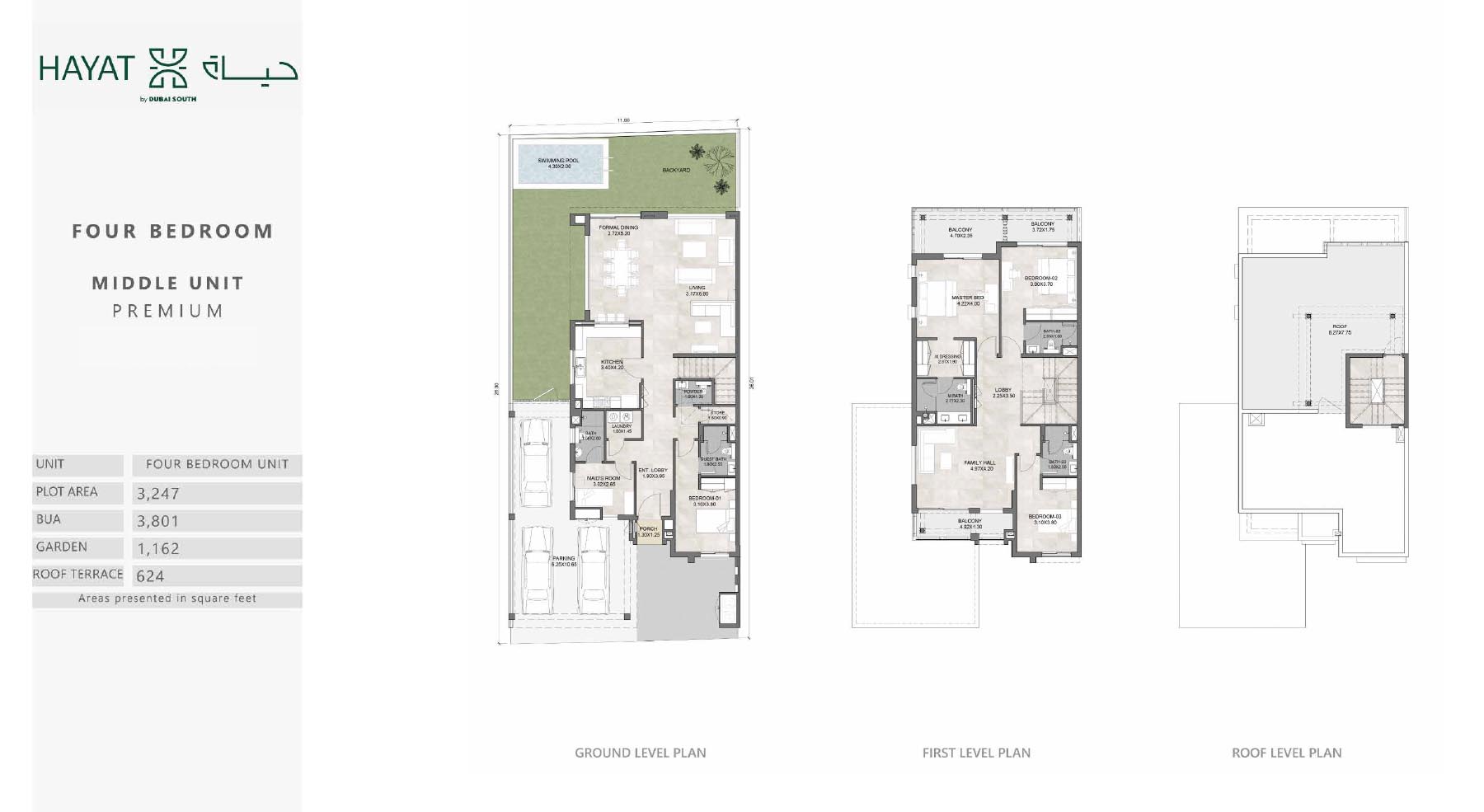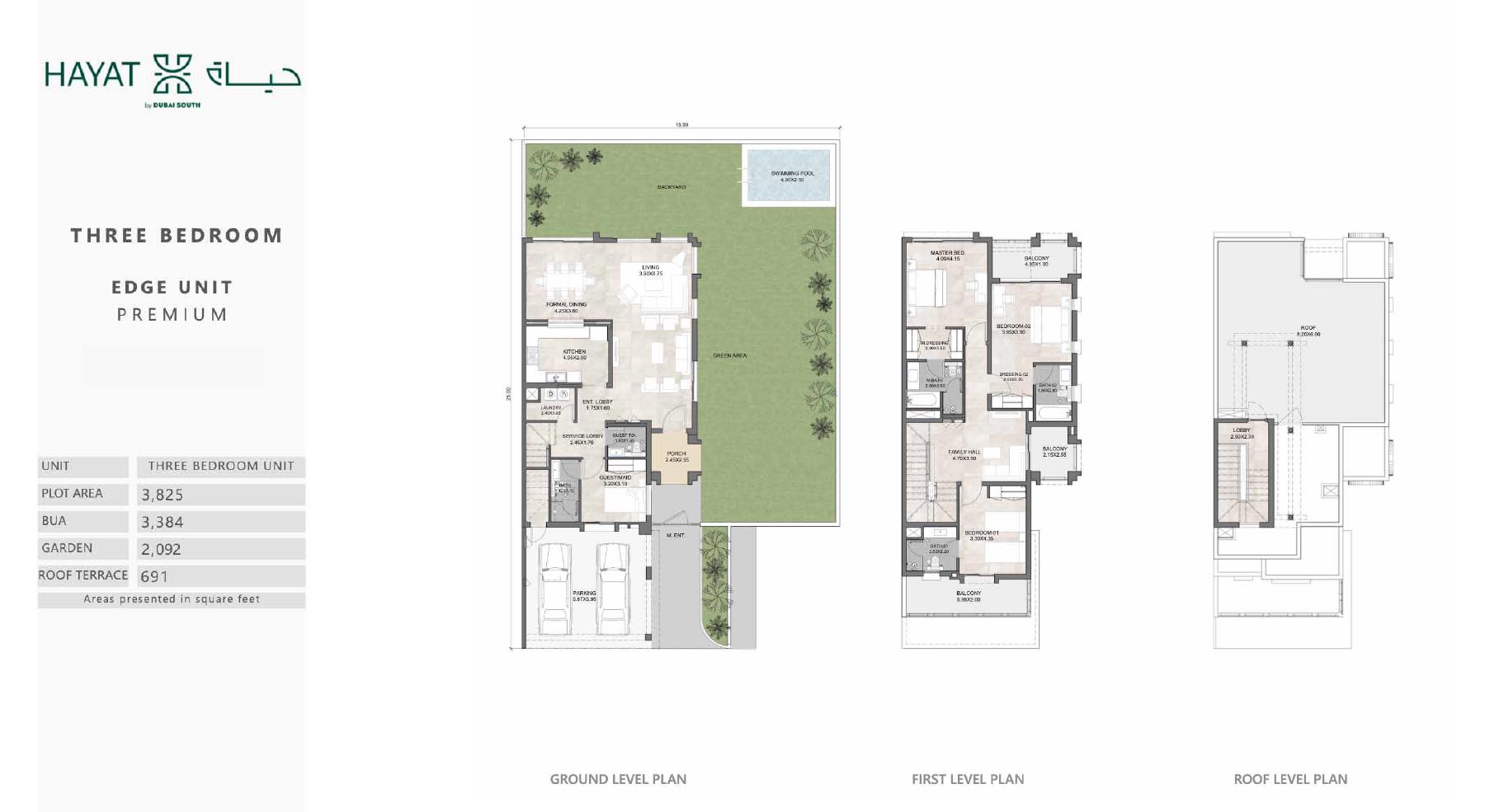 Hayat 4 has various range of floor plans that aims to provide luxury and comfort in Dubai South. Each unit are made which is mainly considered with the advantage of space and natural lights through the large and wide window. Materials which are used are of fine qualities and this can be seen and observed from each corner of the property. It has spacious bedrooms connected with living room, dining area which gives us facility of open environment. Kitchens are made with fully equipped and automatic appliances.