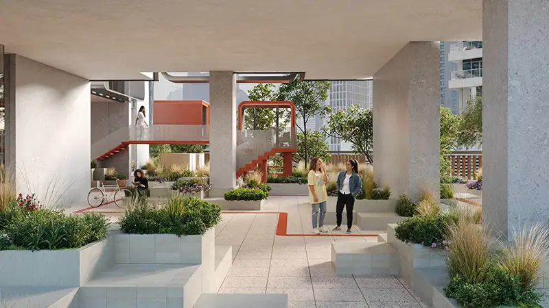 - 5 basements and 3 levels are dedicated for 988 parking spaces with EV charging stations, valet parking, and bicycle zone