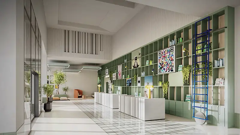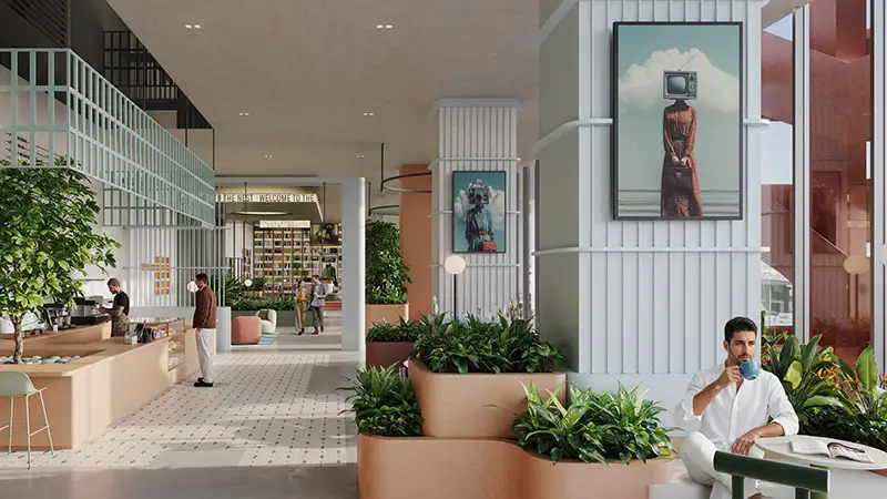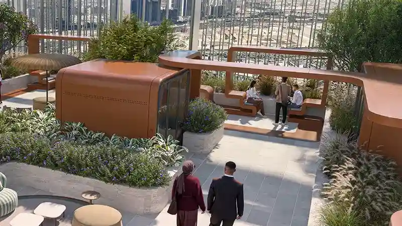 The ground floor of this complex ensures an impressive welcome arrival space, a food hall, and an event break time and special gatherings. Five basements and three upper levels are reserved for parking, while level four comes with lifestyle amenities. An indoor pool and wellness club with spa are on levels 15 and 16, where employees can recharge and relax for a fresh start at work. With almost everything, you can work and play under the same roof, which offers a fully equipped gym and creative corners for an elevated professional life.