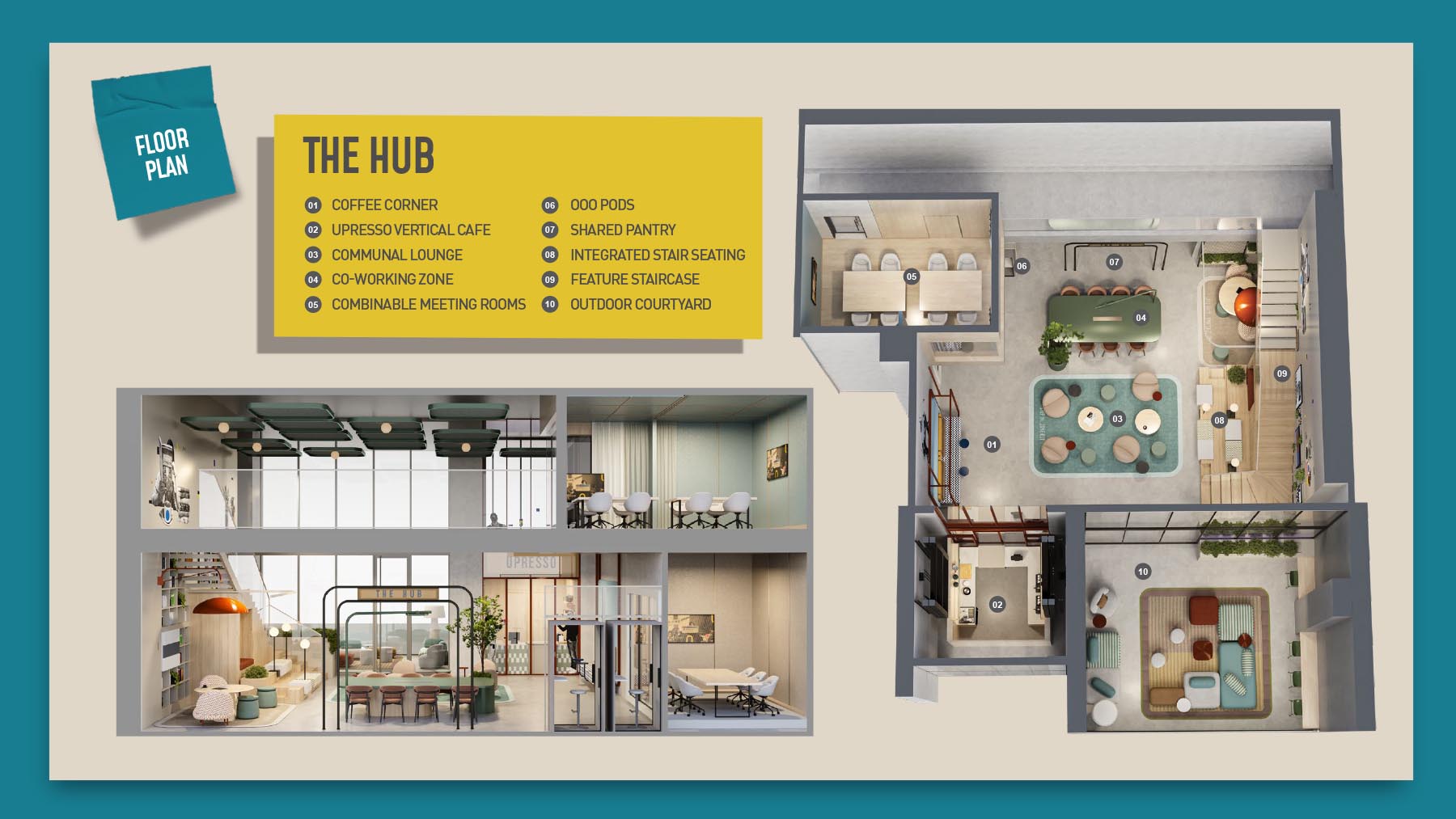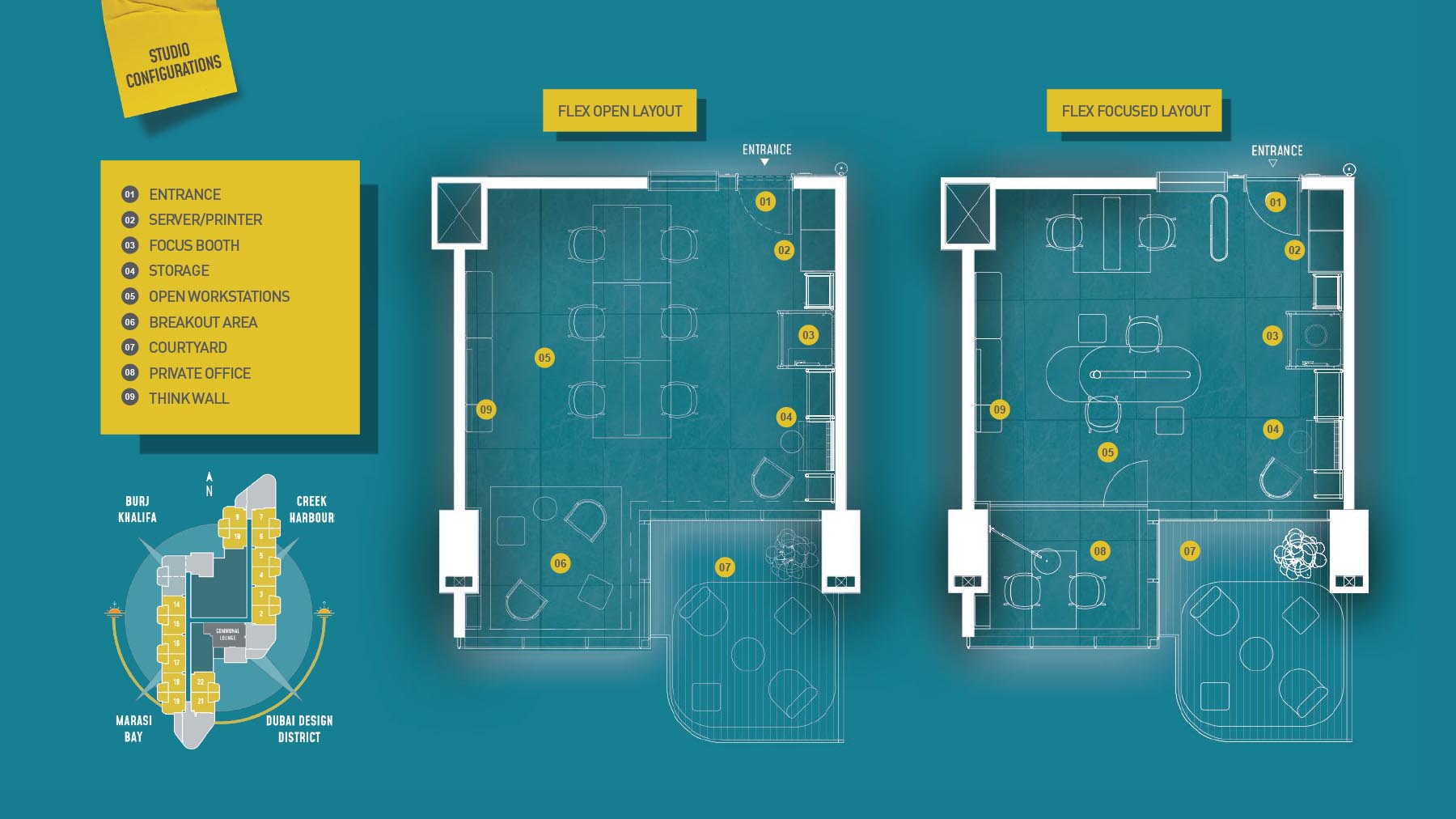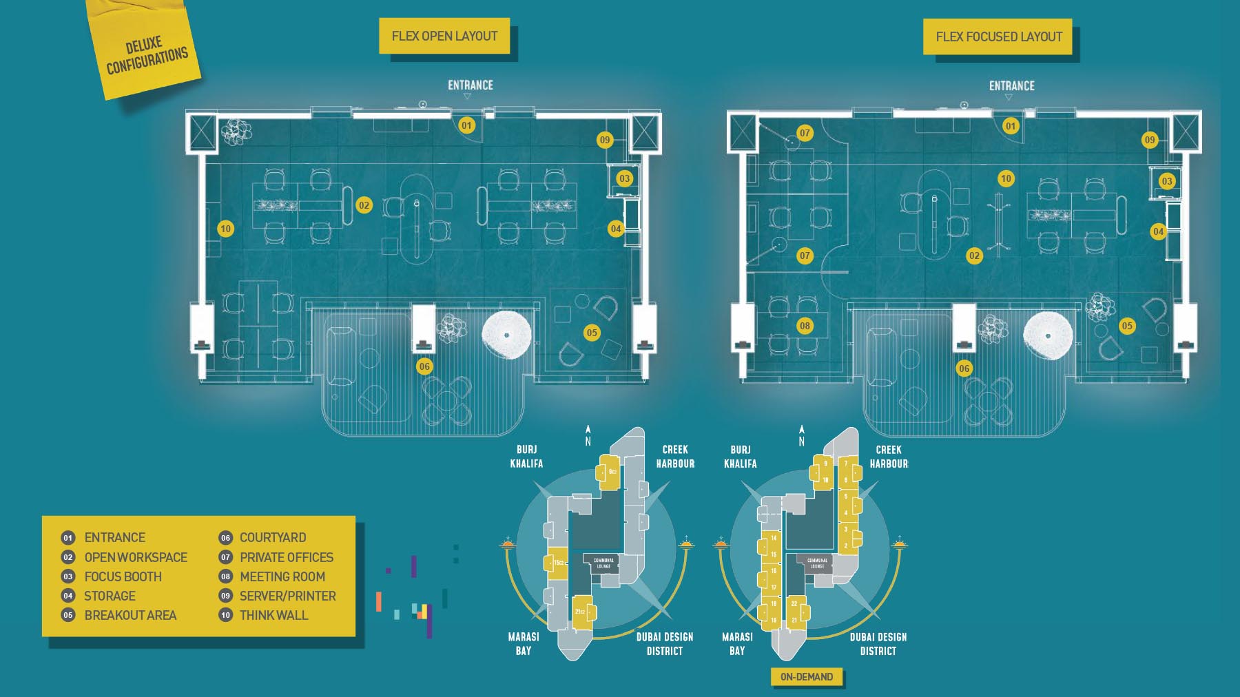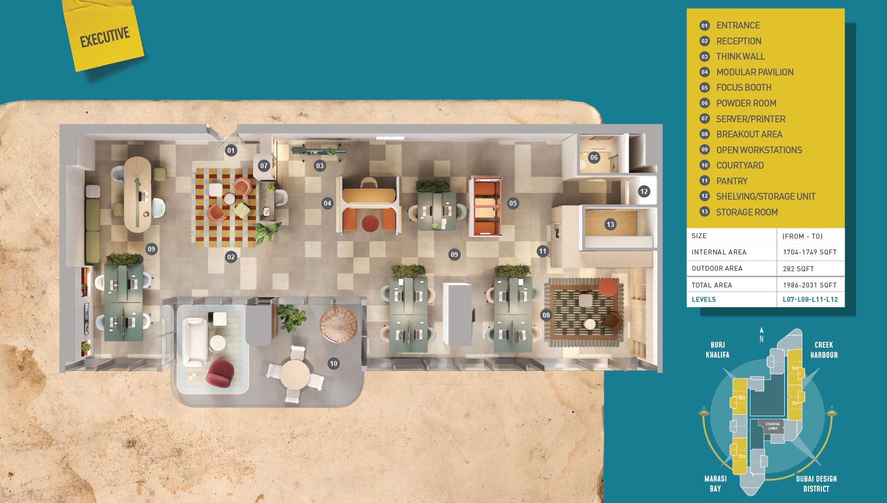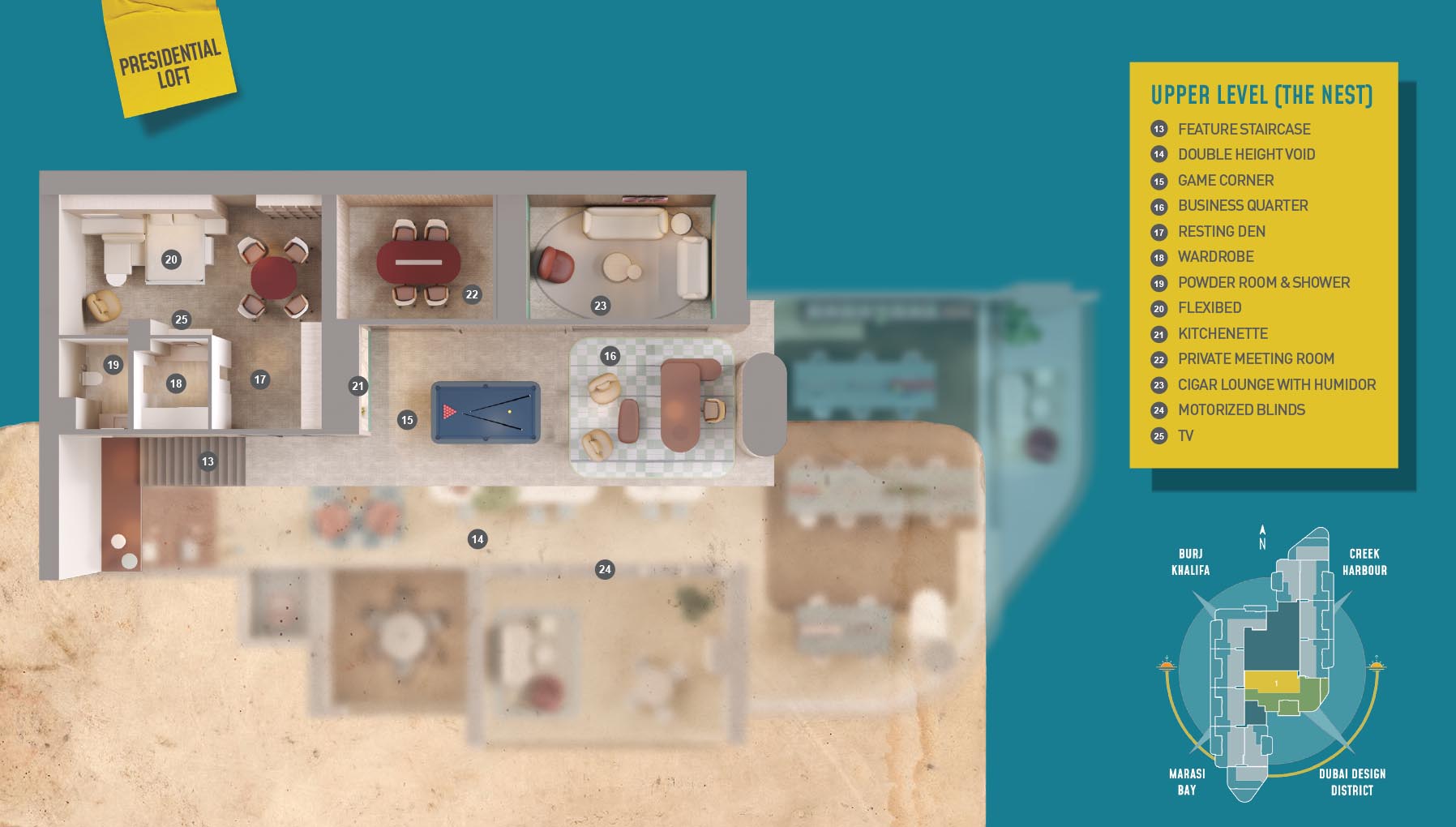 HQ by Rove is emerging as an attention-grabbing Grade – A office building with distinctive floor plans within modular offices, loft offices, and penthouse loft offices. In this 23-storey building, the modular working spaces are divided into studios, deluxe, executive, simplex edge, and A La Carte units where meeting rooms, quality furnishings, and thoughtful layouts create an ideal and hassle-free ambience for working. The loft-edge units offer double-height ceilings, and exquisite design detail. However, the additional services of call handling, high-speed internet, IT tech support, office assistance, and smart booking are available for all employees.