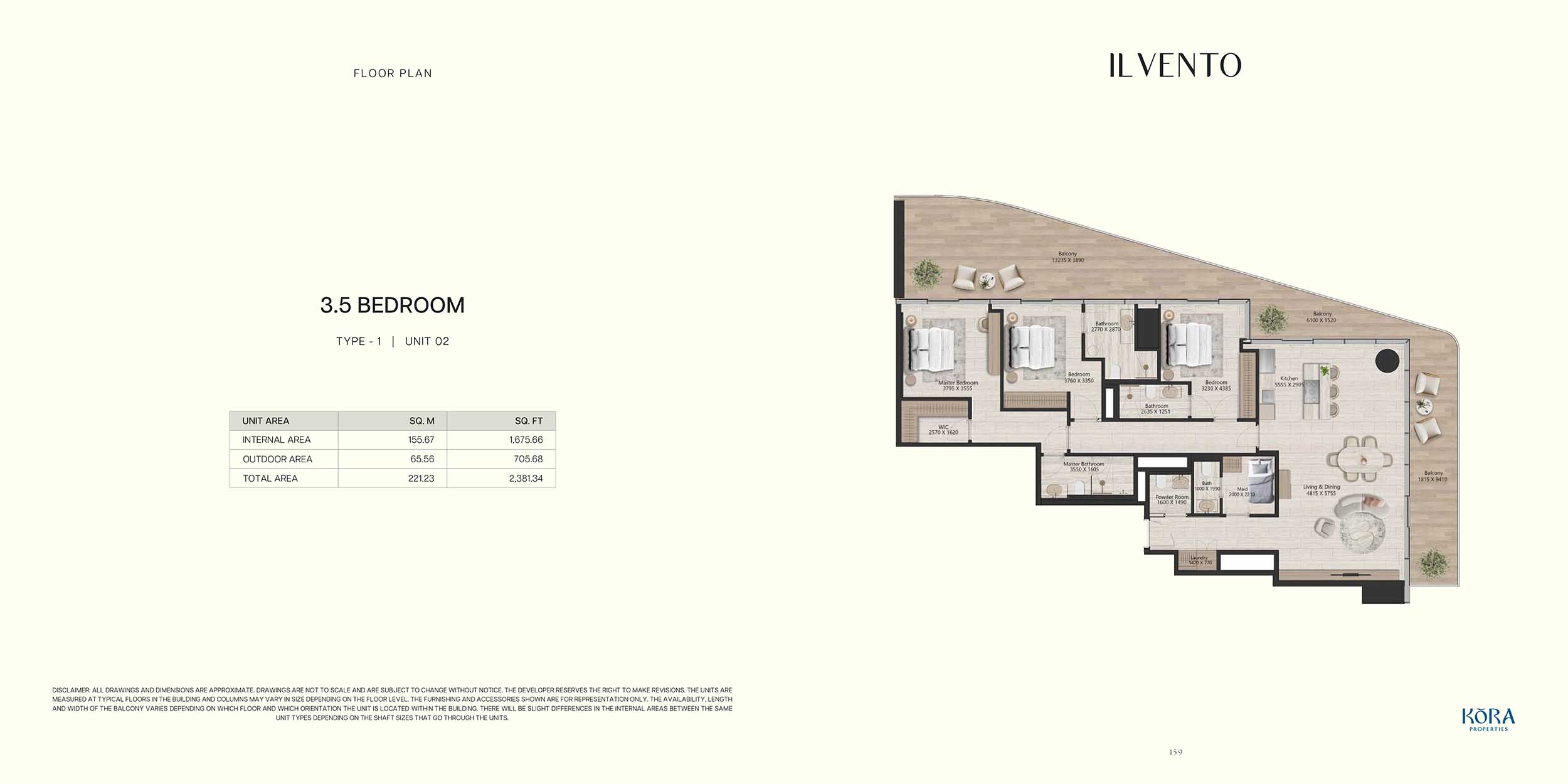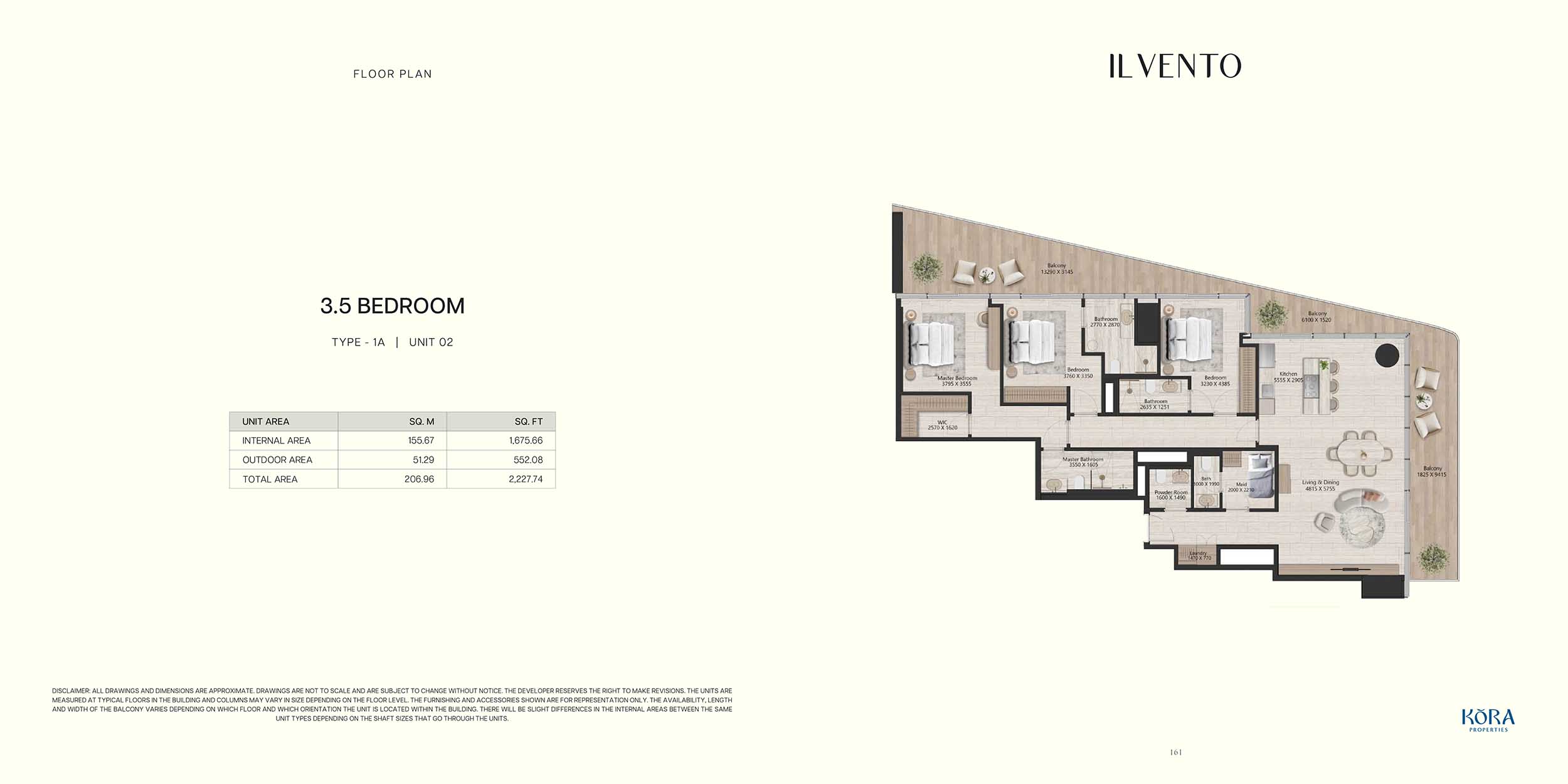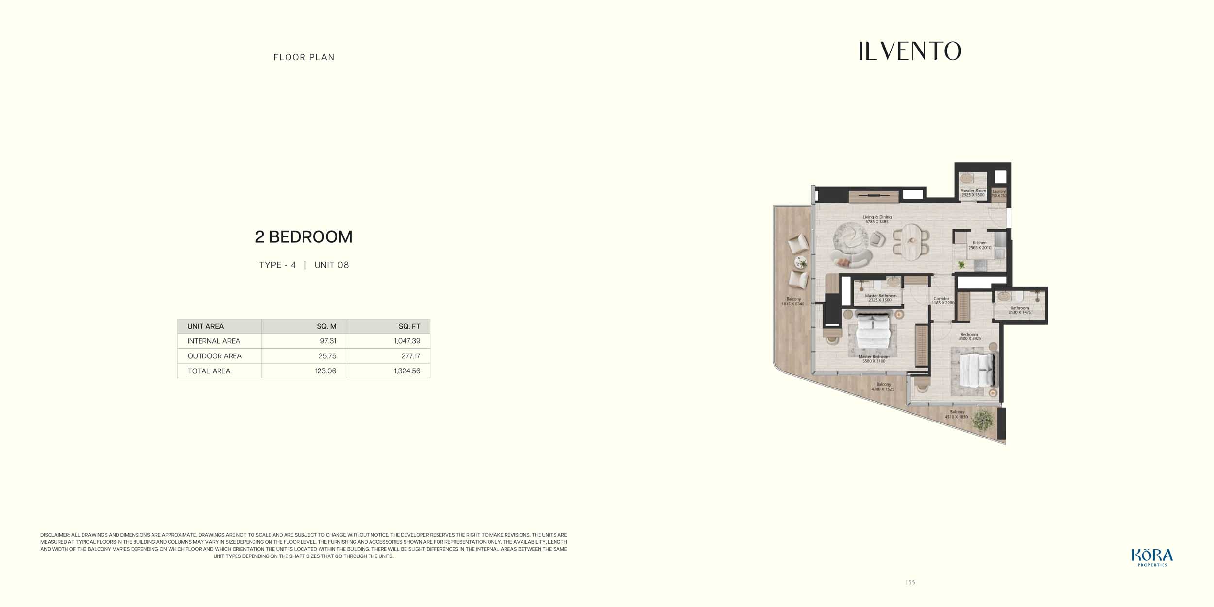 Floor plan layouts at IL Vento offers a range of studios, 1, 2, and 3-bedroom apartments that respect the direction and access to natural light. The living areas are arranged within the waterfront views, where one enjoys a connection with the outside through large balconies. Bedrooms are private and rooms feature en-suite and large wardrobe storage. The intention of the designs is that of balancing the efficiency of the apartment, with a sense of volume and a connection to the outside world to ensure that the terraces are a usable addition, expanding the mantle and picking up on the whimsy of the harbour environment.