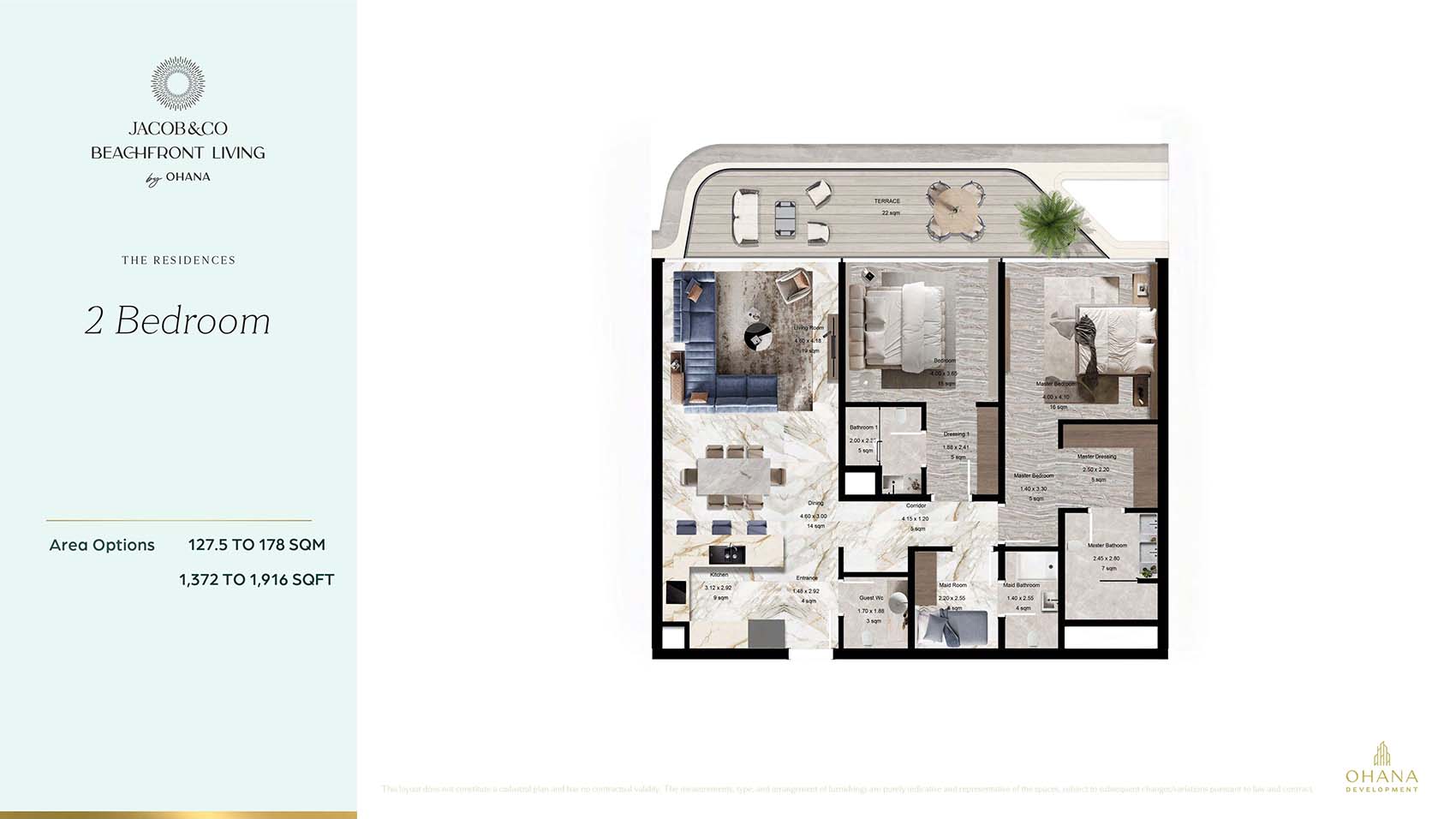Jacob & Co. Beachfront Living exudes floor plans of stylish 1 to 3-bedroom apartments and luxurious 3 to 6-bedroom villas at the scenic seafront destination. This architectural masterpiece boasts invigorating homes with high ceilings & large windows, while the open-plan format of living rooms welcomes a flow of sunlight and delivers the mesmerising vistas of the landscape. The neutral & elegant themes with furnished & curated rooms, ensure the modern convenience and soulful tranquil comfort right at your doorstep.