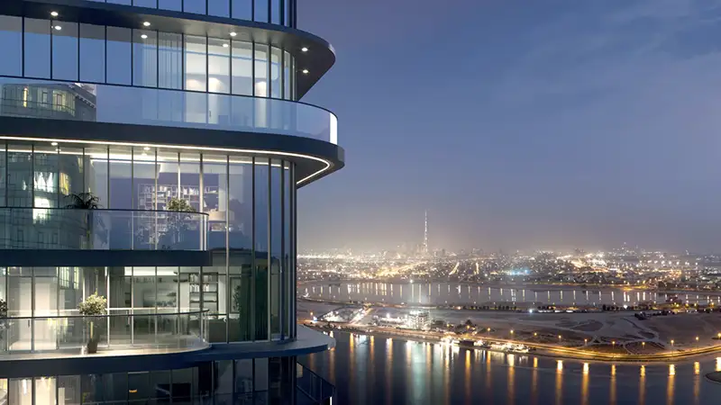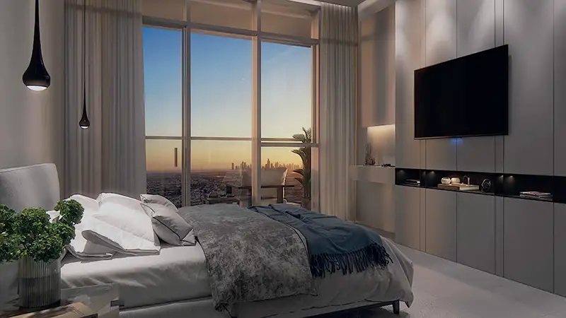 The design has been created to perfection to bring natural lighting, expansive space, and spectacular sights to every house. Its high-rise status forms hold well-defined balconies, brilliantly calculated corner curves and flow layers of glass which form a conversation between the inside and the forming waterfront landscapes. The tower measures 55 floors and accommodates 572 apartments that have been created by the spirit of modern elegance. The refined design language prevails in the interior, including the spacious layouts supplied with the elite wardrobes, high-tech appliances, and smart-house items that add to the aesthetics and comfort of the interior space. Explore the premium apartment, garden residence on the podium, villa duplex, or the unbelievable penthouse with its own pool, each of the units is designed to impress with the feeling of exclusivity and luxury living.