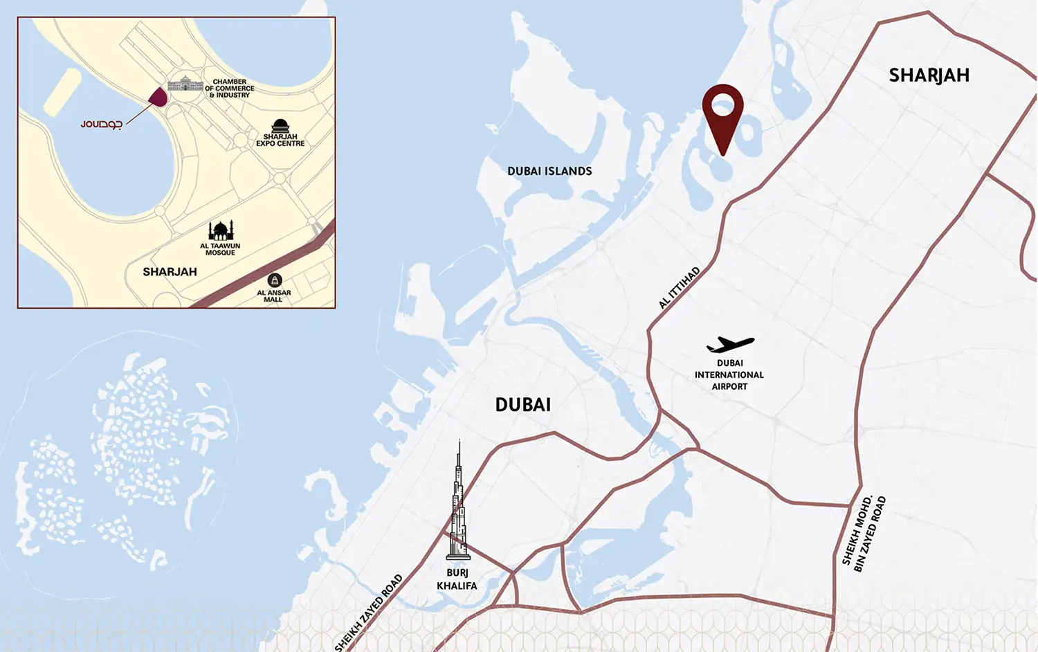 Joud Tower at Al Mamzar in Sharjah presents the luxury amalgam of residential allure within the name by Albatha Real Estate, including selected 2 to 4-bedroom apartments, duplexes villas and penthouses. Soaring high with 55-floors above the sparkling waters of Al Mamzar and Al Khan lake, this newest venture is considered as a masterpiece; where the architectural beauty can be perfectly contrasted with the calm of water front living. It is a tower which is imagined as not only a place to live in but a new horizon where everyday life is defined by serene views, refined as well as a high level of privacy. The moment we first look at the sculptured exterior and the flowing lines of a glass surface, with their sleek futurist appearance and rapidly changes the landscape of the sky line as well as it touches down establishing a bench mark that is indisputably high-rise living in Sharjah.