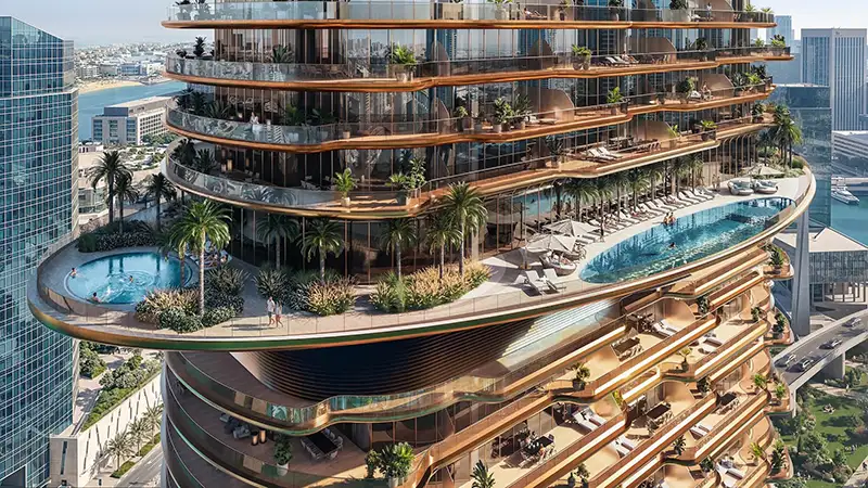 - Integrates elevated lifestyle elements such as sky gardens, an iconic infinity pool, and curated communal spaces that enhance social and personal well-being.
