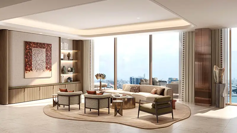 The philosophy of a high-quality lifestyle being exact and elegant with all of its specifics, which is present in the high-rise façade. The structure does not just provide shelter, it also coordinates a harmonious balance of natural light, expansive scenery and fluid connection of indoors and outdoors. Every single dwelling is filled with expansive views of the sea, cityscape and promontory, with floor to ceiling windows making sure that every room is met with a new palette of light at all times. Interiors are created as cosy personal retreats which echo the historic Jumeirah tradition of a design-focused hospitality - a harmonious combination of high-end materials, clean lines, and elegant proportions. The entire feature, the sweeping floating terrace, the4 sky high garden and sight-seeing elevated pool, everything has been well thought out to bring the exclusive experience to a level beyond common.