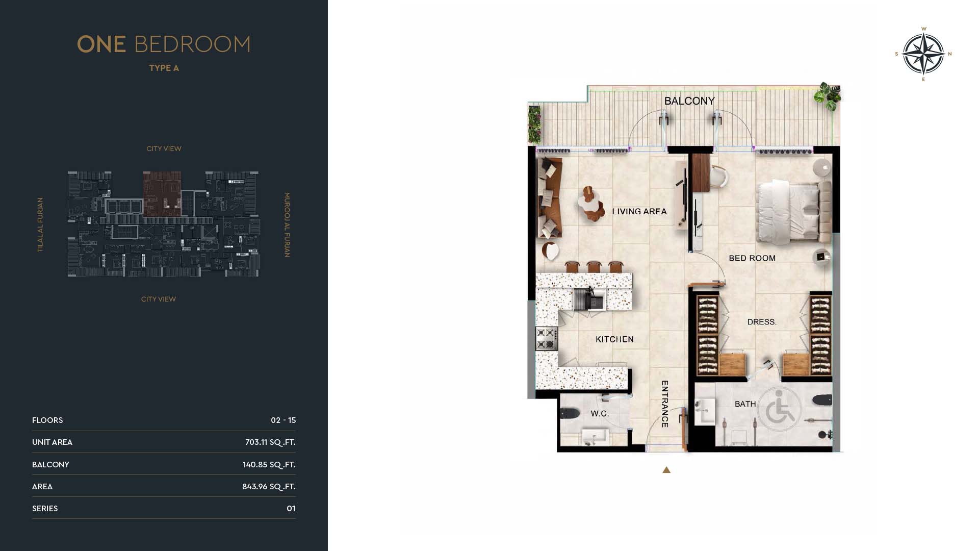 Made for modern lifestyles, Kingdom Gate is a 24-storey residential icon with carefully constructed floor plans of 1 to 3-bedroom apartments & penthouses. This prestigious complex comes with a curated mix of dynamic and elegant homes crafted for diverse lifestyles and needs of the owners. Each unit is defined by a spacious and smart functional design, while the large windows and higher ceilings offer a comfortable and bright environment with inspiring views of the surroundings. The spa-inspired bathrooms with opulent fittings and fixtures and chef-ready modern kitchens ensure an elevated daily lifestyle for the natives.