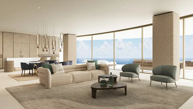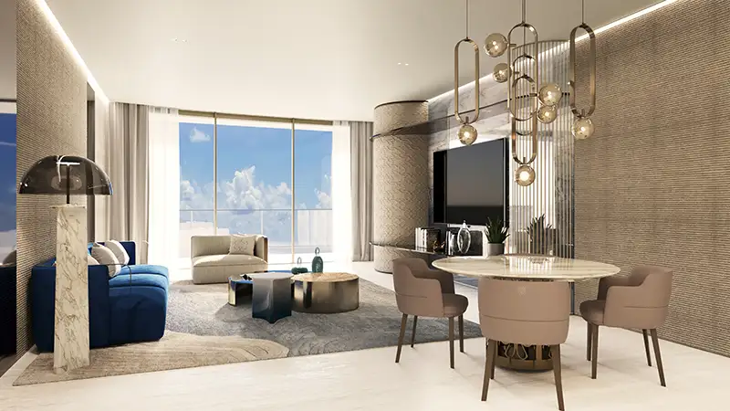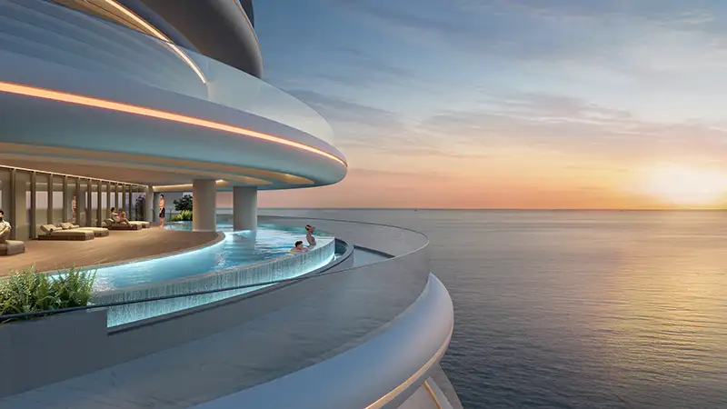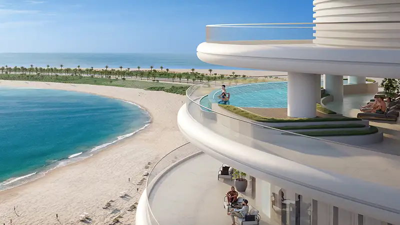 La Mer by Elie Saab at AI Marjan Island, visualized by ARTE Development, boasts three interconnected towers characterized by an intricate design. It features dual lobby and world class architectural design, promises to be a masterpiece of modern residential living. The combination of sophisticated architecture and luxurious amenities ensures an unparalleled residential experience in a prime location. Nestled adjacent to a water body offers scenic views, recreational opportunities like boating or swimming and potential for higher property value.