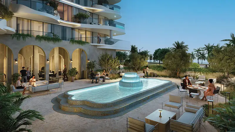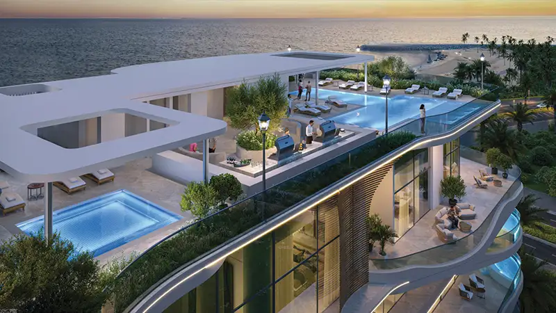 The master plan of La Perla lies on the basis of its harmonized nature in the peaceful ambience of the lagoon relating to the Dubai Islands. It has a premium waterfront site that ran beautifully along the shore of the waters, so most of the units have a clear view of a large sea, or soft park landscapes. The shared and common areas are located in strategic positions to develop the engagement and relaxation of the community members, landscaped gardens and infinity-edge pools are also interwoven in residential towers forming smooth and continuous tour around greenery and the stream of water. A continuity of indoor and outdoor living is highlighted in the plan, with the promenades running directly out of ground-floor lobbies to areas of shaded deck and to casual cafe seating.