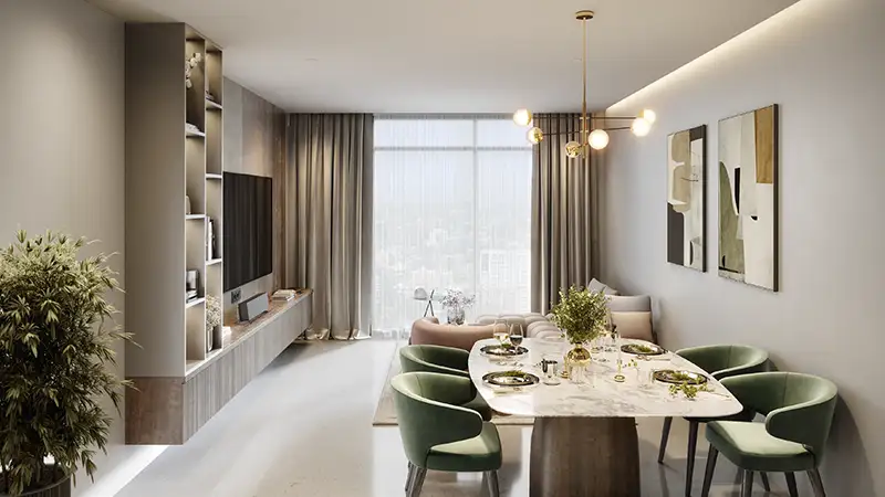 - Premium selection of studios, 1 and 2-bedroom apartments, designed to redefine affordable luxury living through refined architecture.