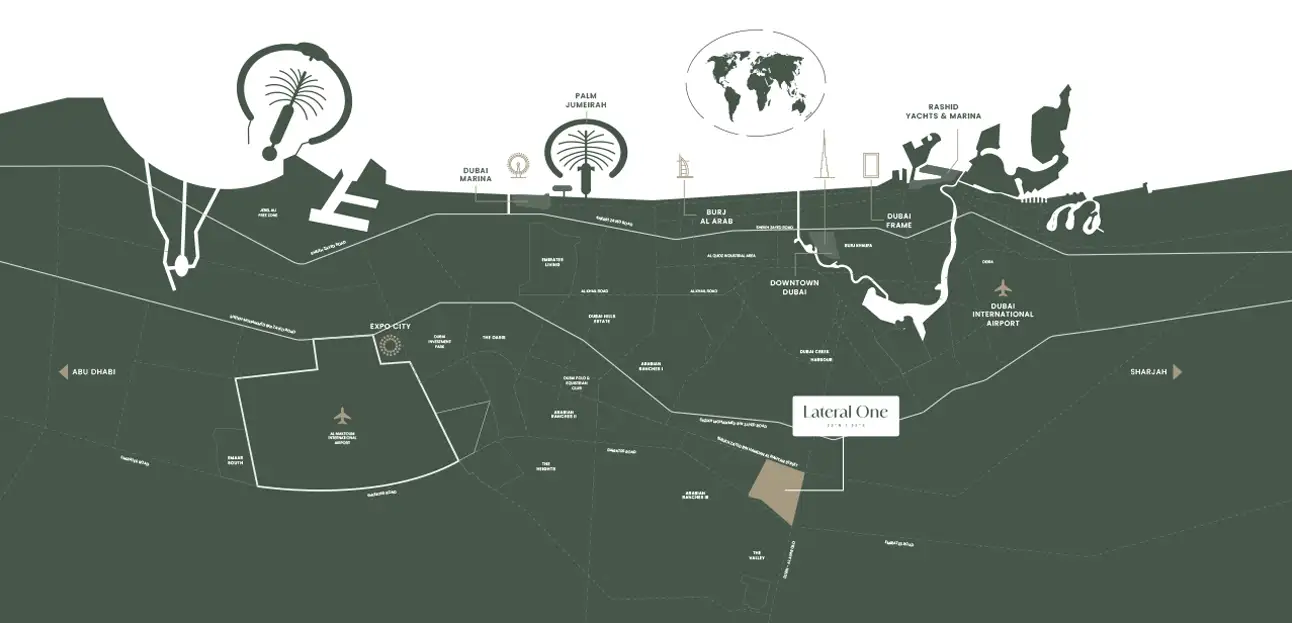 Lateral One at Dubai Land Residential Complex (DLRC) is a premium class residential development by the admired Aqua Properties with studios, 1 & 2-bedroom apartments in Dubai. In a city covered with ambitious and architecturally bold designs, this new mint inspiration opens as a sophisticated residential design that subtly reinvents affordable luxury lifestyle. This is a carefully thought out project created by Grand Signature, as the developers are fully aware of the demands of contemporary lifestyles, in which comfort, aesthetics, and functionality have to be an inseparable trio. Instead of overarching of its concept, this aims at one-to-one craftsmanship, smart designs, and stylish interiors that are personalized, cosy and last long. The project will be marketed as a residential home of people who can appreciate elegant simplicity and long-term durability in one of the most promising residential areas of Dubai.