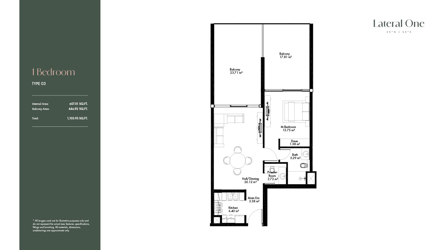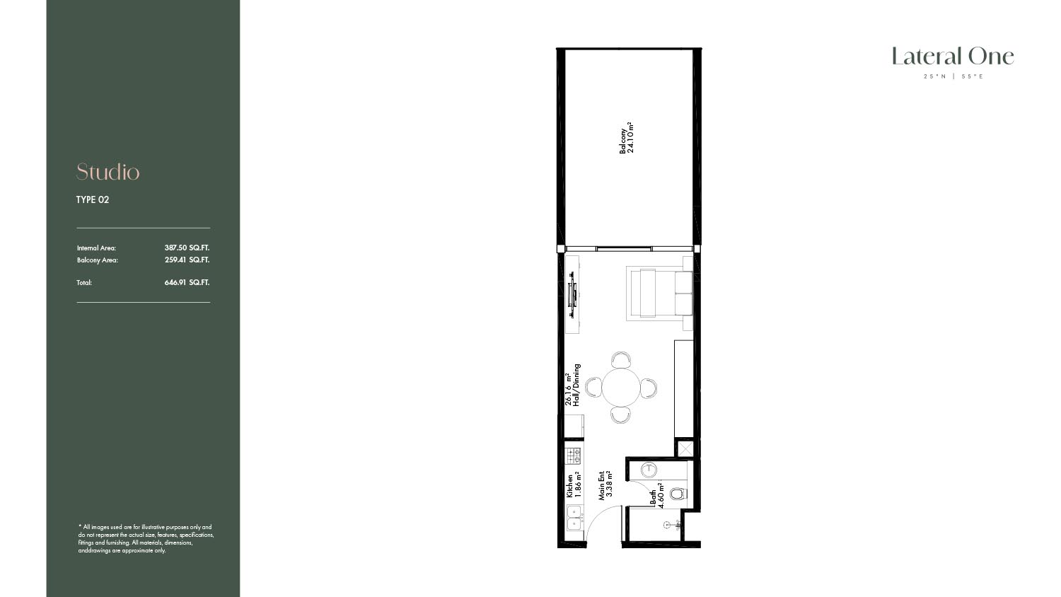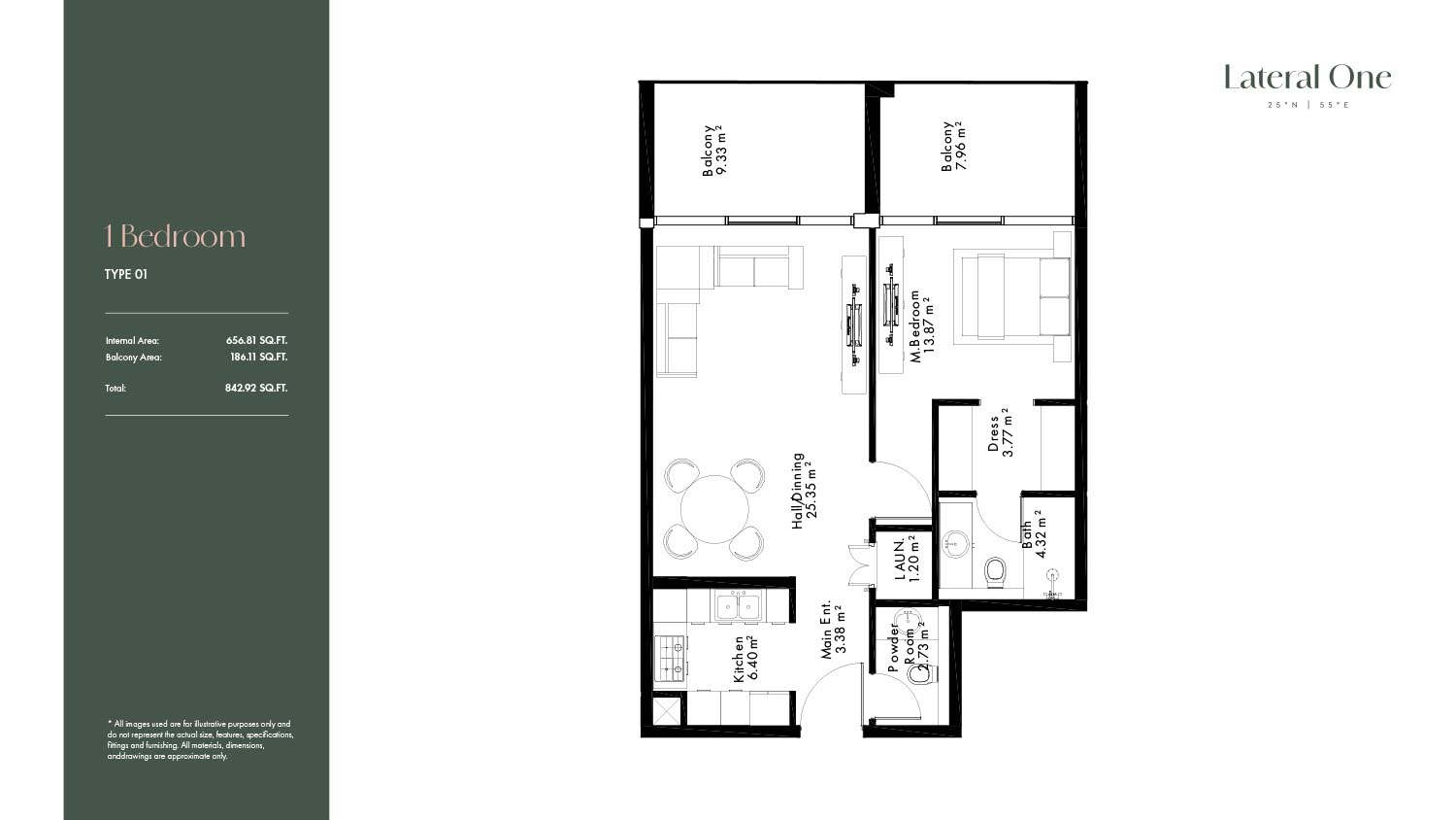 Lateral One is a luxurious boutique furnished with floor plans of studios, 1, and 2-bedroom apartments, all offered with an optimized use of space and comfort. The layouts focus on open format that ensures flexibility in furniture planning and free movement between rooms. Bedrooms, living and dining, and bathrooms are arranged so as to give spaces in use as well as to entertain. Kitchens and bathrooms are carefully designed keeping an optimum functionality in mind and not sacrificing on the beauty. These designs accommodate the different lifestyles, all the way to young professionals and families.
