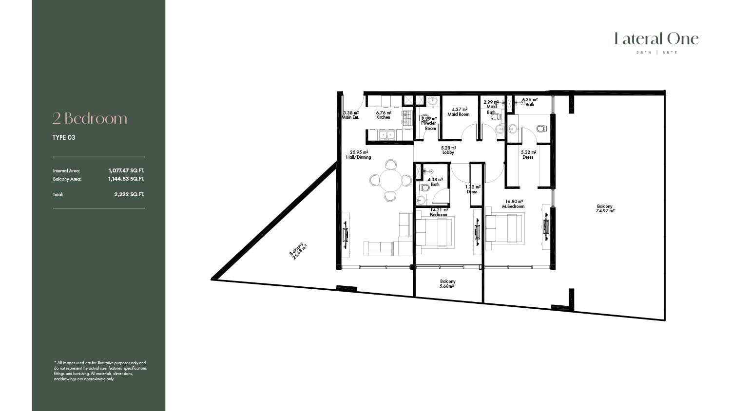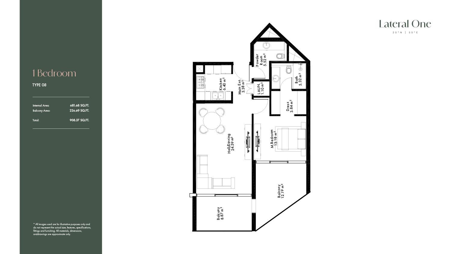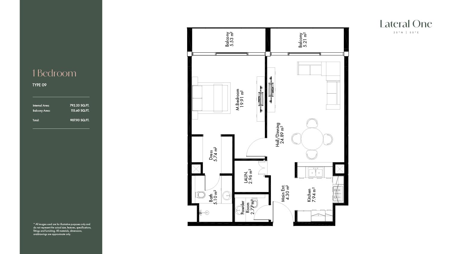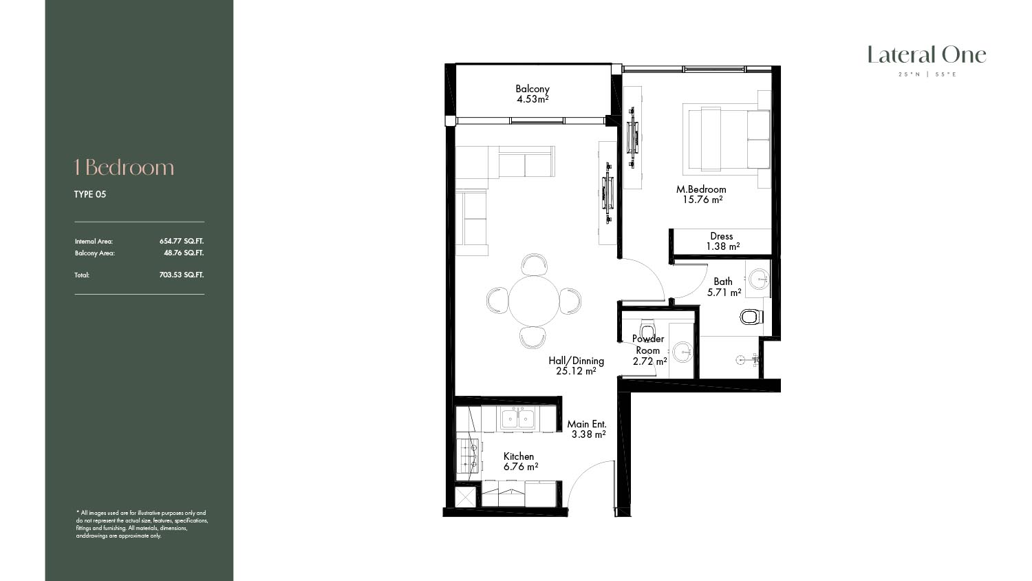 Lateral One is a luxurious boutique furnished with floor plans of studios, 1, and 2-bedroom apartments, all offered with an optimized use of space and comfort. The layouts focus on open format that ensures flexibility in furniture planning and free movement between rooms. Bedrooms, living and dining, and bathrooms are arranged so as to give spaces in use as well as to entertain. Kitchens and bathrooms are carefully designed keeping an optimum functionality in mind and not sacrificing on the beauty. These designs accommodate the different lifestyles, all the way to young professionals and families.