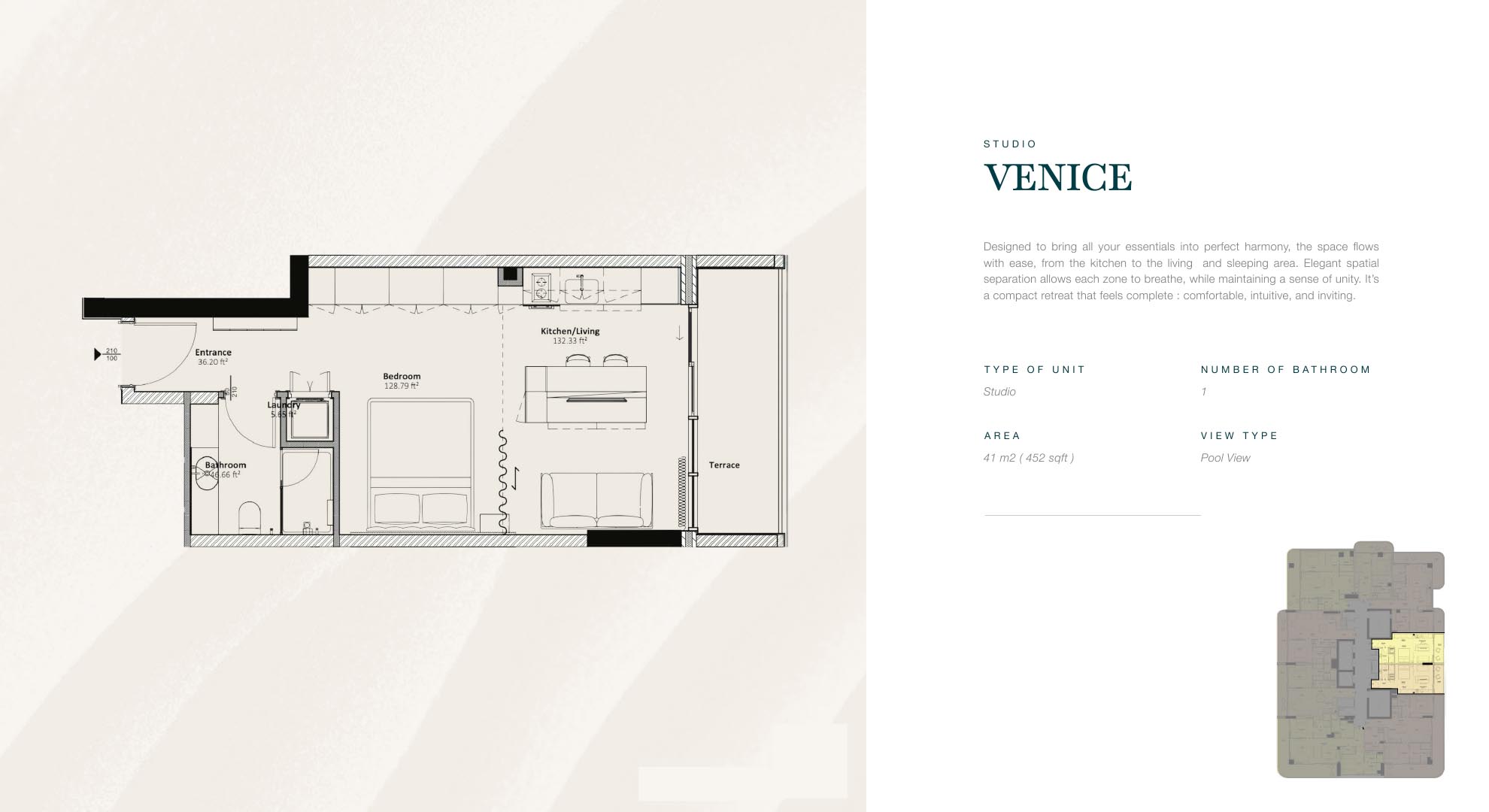 It offers a spacious layout that makes the most of every inch. The L-shaped kitchen includes a built-in dining table, making mealtime both easy and enjoyable. They have well-appointed with a laundry room, luggage storage, and ample closet space, for both residents and short-stay guests.