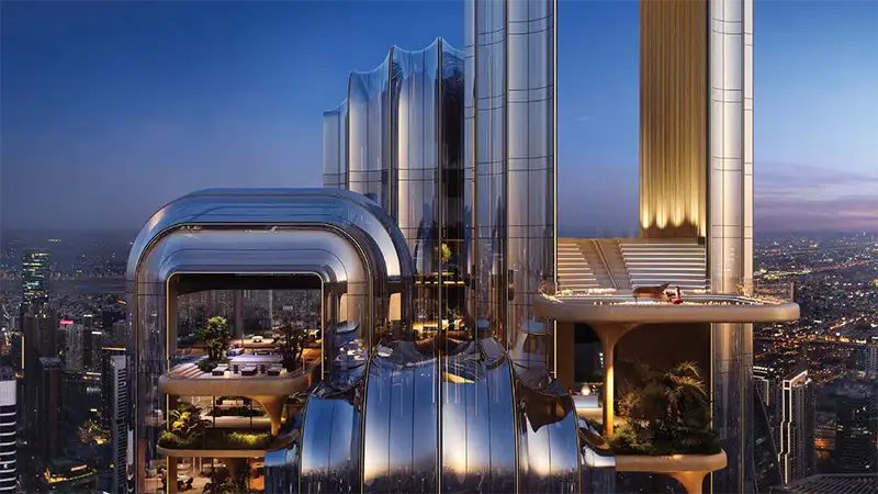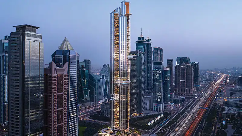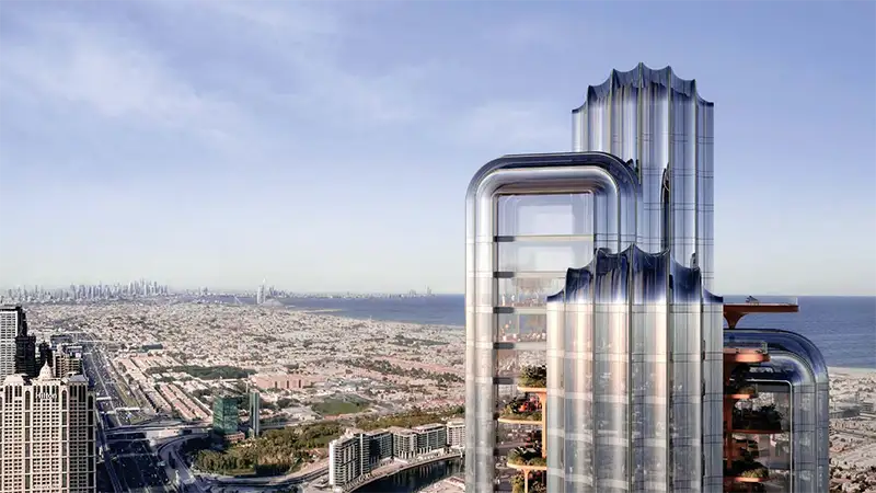 Merging bespoke architecture with sustainable and dynamic spaces, this soaring tower combines over 47 floors, where the entire surface, each line, and stroke is carved attentively. This purposeful building exudes a balance of precision and graceful elegance. The thoughtfully designed shift of the form as the tower rises showcases a more open and lighter look that overlooks the surroundings’ view of Burj Khalifa, Burj Al Arab, and the sweeping Gulf water.