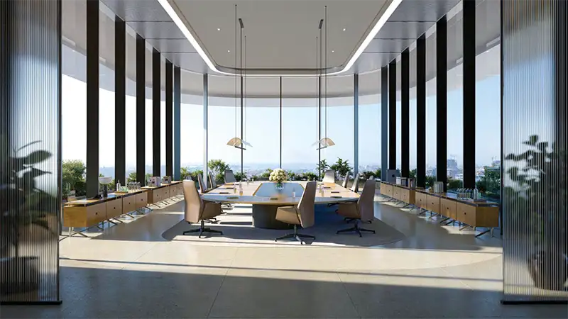 Find amenities for special meetings, harmonious experiences, and refreshing entertainment within this pristine tower. This includes an Executive Business Club with co-working space and conference facilities, a sky theatre, while a wellness sanctuary comes with fitness technology and premium spaces for cardio and heavy workouts. A sky pool with an outdoor rejuvenation terrace, yoga & Pilates studio offer breathtaking views with a sense of calm and refreshing vision. Additionally, the services managed by Omniyat include office concierge, wellness concierge, personal & lifestyle services, ensuring an effortless, safe, reliable, and curated working environment.