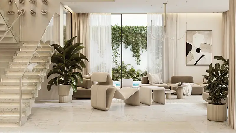 The architecture demonstrates the philosophy of boutique developer, who is known to integrate playful design and nature. The homes are designed with a keen consideration of the spatial dynamics, with a double-height living space, large glazing, with flowing inner-outer space, which optimize the amount of natural light and panoramic vistas of the lagoons. Each of the typologies is specially created with private gardens, rooftops terraces and in numerous instances, private swimming pools. Contemporary but organic in terms of their architectural language, the interior consist of soft curves, open schemes, and high quality materials that develop the feeling of luxury. The interiors are characterized by the luxurious finishes of marble floors, customized details, floor-to-ceiling windows, that overlook serene waterfront views. This fitting interior style makes sure that each house does not only represent a shelter but also a home-away-home, which is based on luxury and comfort.
