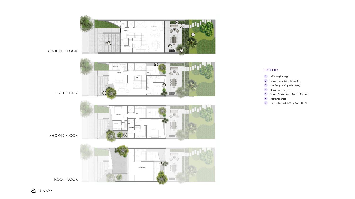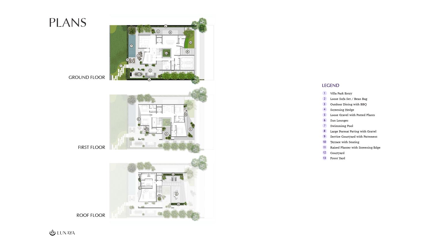 Lunaya has a wide variety of floor plans of 4 & 5-bedroom townhouses, maisonette and villas, to meet different lifestyle needs and still be at a standard level of luxury. The project comprises of luxury class townhouses and maisonette along with spacious duet and individual villas. The houses are all characterized by open plan living rooms, ceilings that are two storeys high and smooth blending of indoors with the outdoors. Most and most layouts incorporate private gardens, terraces, and pools, which adds to functionality and future beautification. The space is well planned with maximum use of space, natural light as well as privacy so as to provide comfortable and smooth living standards to small and large family units.