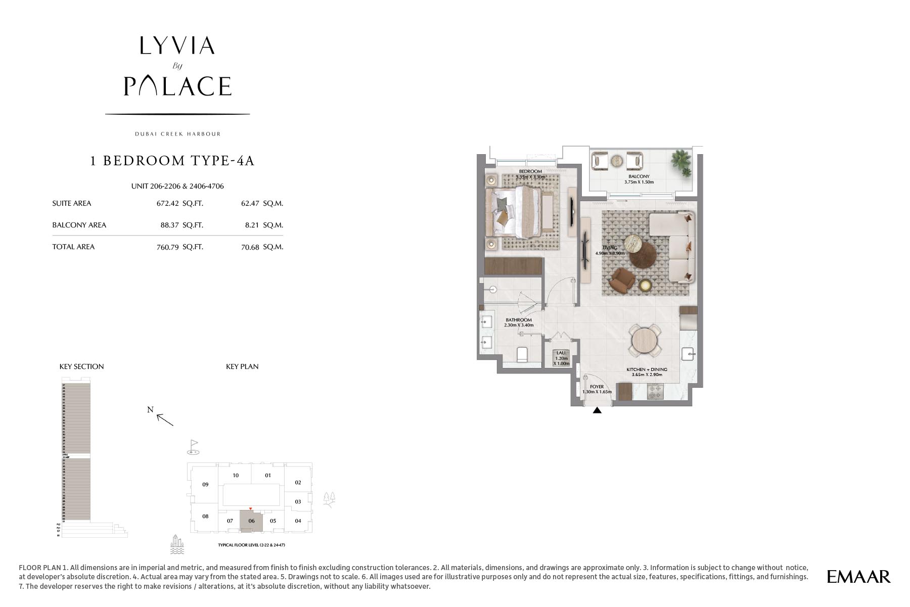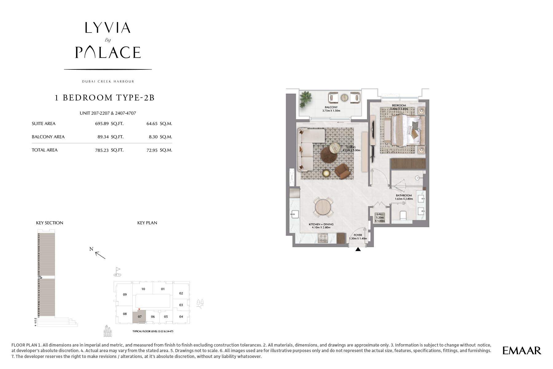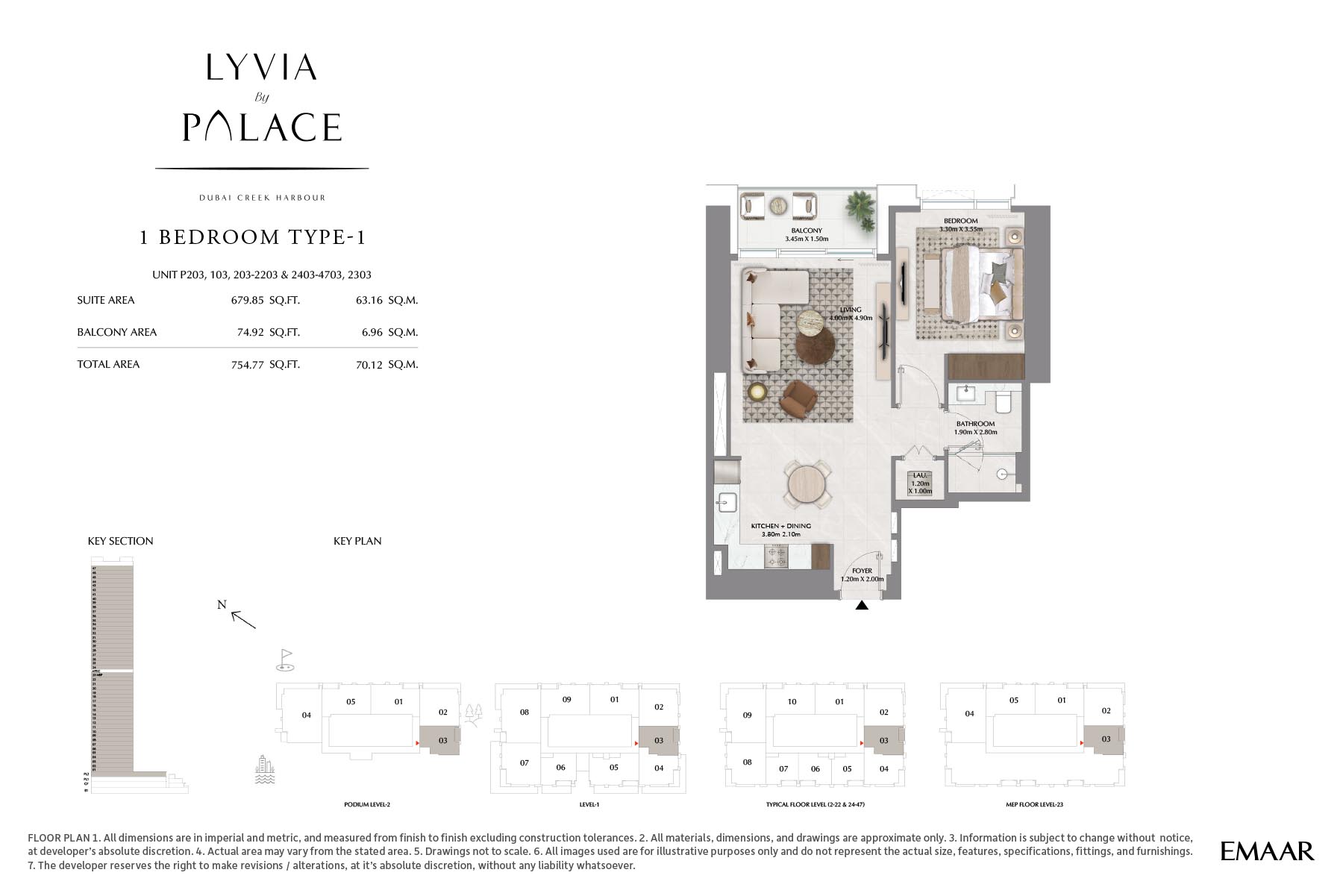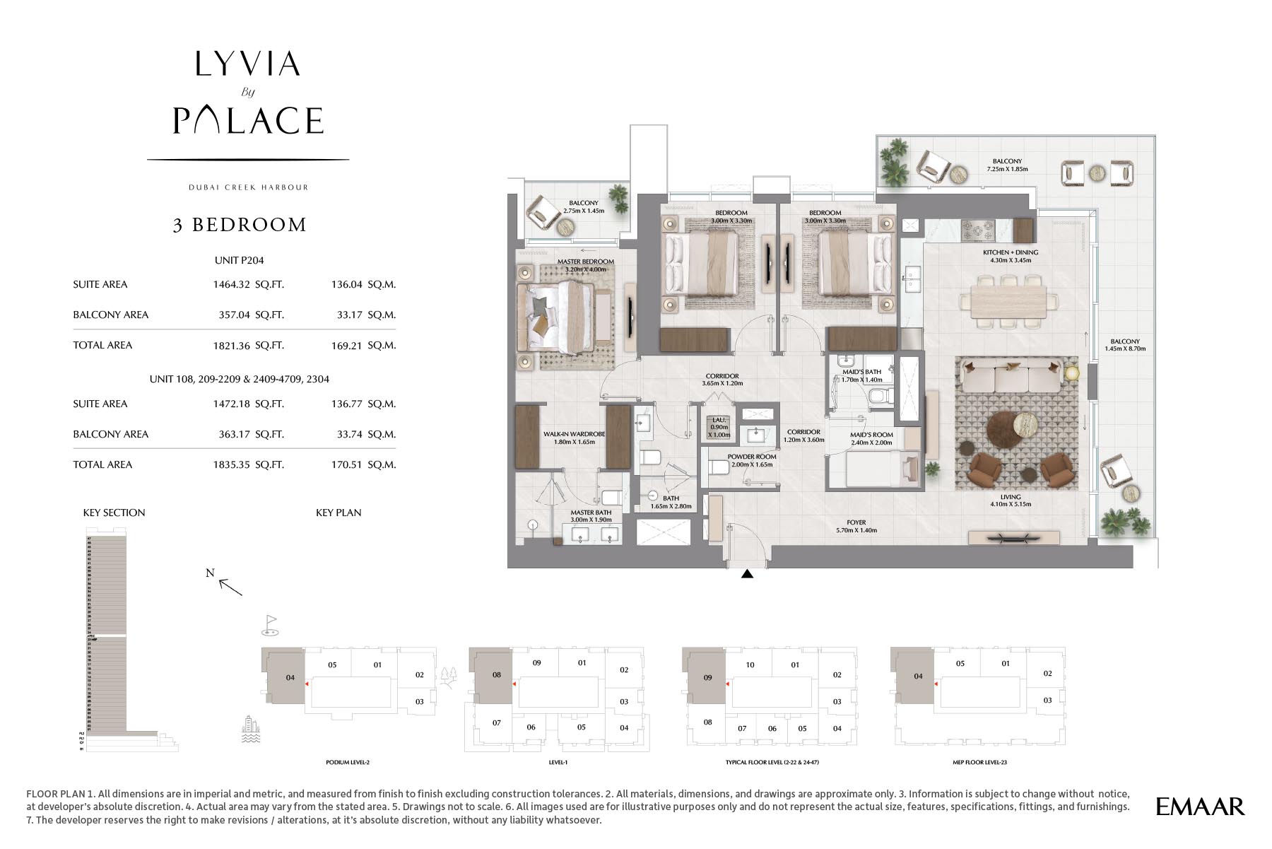 Emaar Lyvia Tower present a sophisticated range of floor plans of exclusive 1, 2 & 3-bedroom apartments as well as 3-bedroom townhouses. There are upscale living rooms with single bedroom residences for working professionals, to large bedroom options perfect for bigger family size. With spectacular waterfront views, the layouts are characterized by spacious lounge, vast balconies and floor to ceiling windows, glassy out-fitted kitchens incorporated with high-end apparatus. Further, the bedrooms are designed with in-suite bathrooms and have enough space that are flexible and can be used for dual purpose.