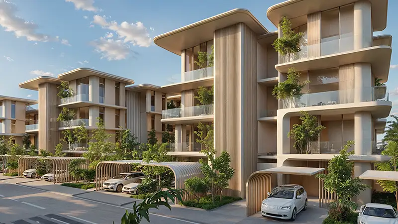 Architecturally, the façade is a sophisticated blend of proper warmth of the modern Mediterranean and urban cool edge. Individual homes, large villas and well-designed townhouses around the waterfront are organized in such a way that they get more canal views, natural lightning and the ability to live indoors and outdoors. The community is characterised by flowing lines, stratified facades, and spacious terraces around the waterfront areas. The inspiring leisure and recreational spaces are a part shaped by hospitality, lifestyle courtyards, and sport-themed design details that make slight references to performance, wellness and international athletic culture.