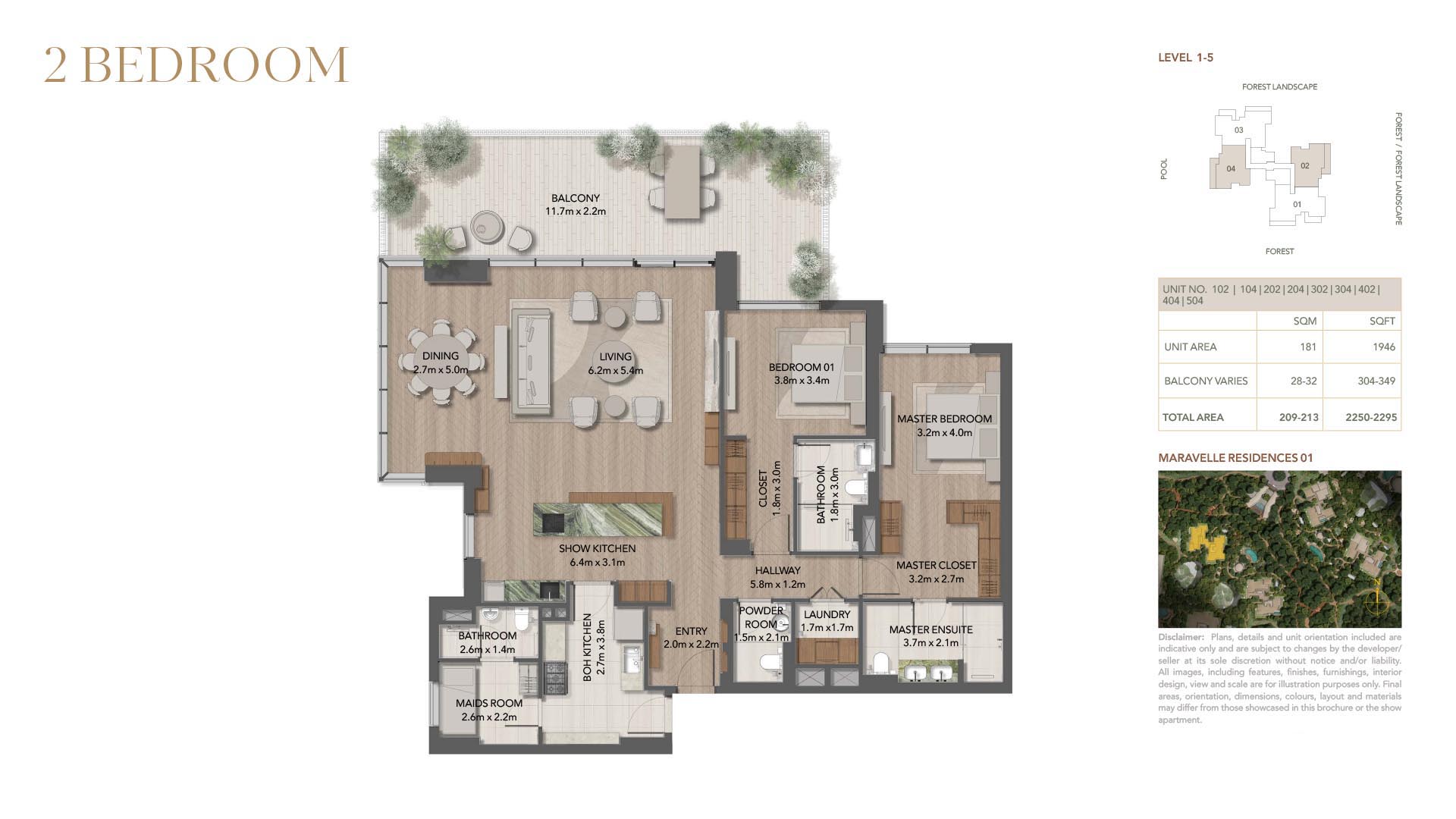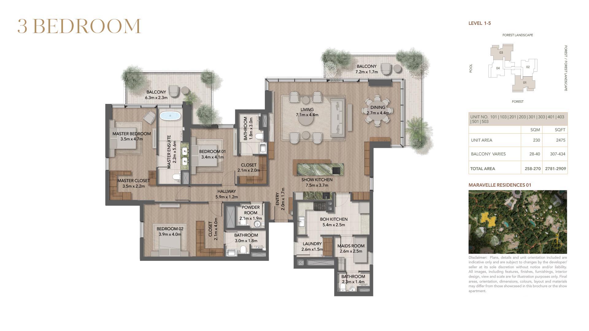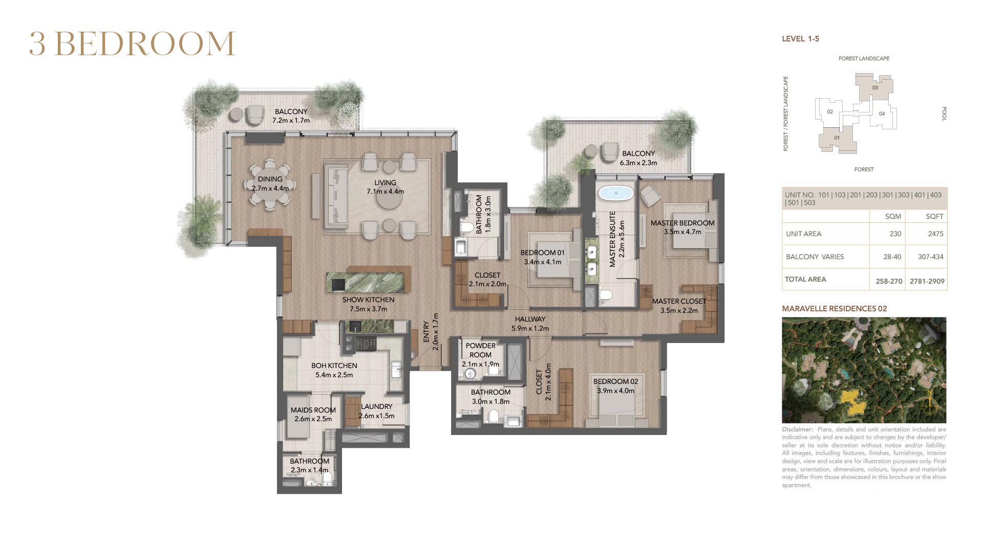 Maravelle Residences have an exquisite assortment of well-crafted floor plans of 2 & 3-bedroom apartments and 4-bedroom duplexes. The designs focus on open living, and the smooth flow of connections between the kitchen, dining, and living space is underlined. There are large windows and balconies, which guarantee the plenty of natural light and views of greenery, and bedrooms in order to keep privacy and rest. The choices of structure and materials are an indication of a sustainable design language: the low-emission materials, effective energy policies and water treatment systems are ingrained in the built form, so that sustainability is not introduced later as an add-on but rather as one of the founding principles.