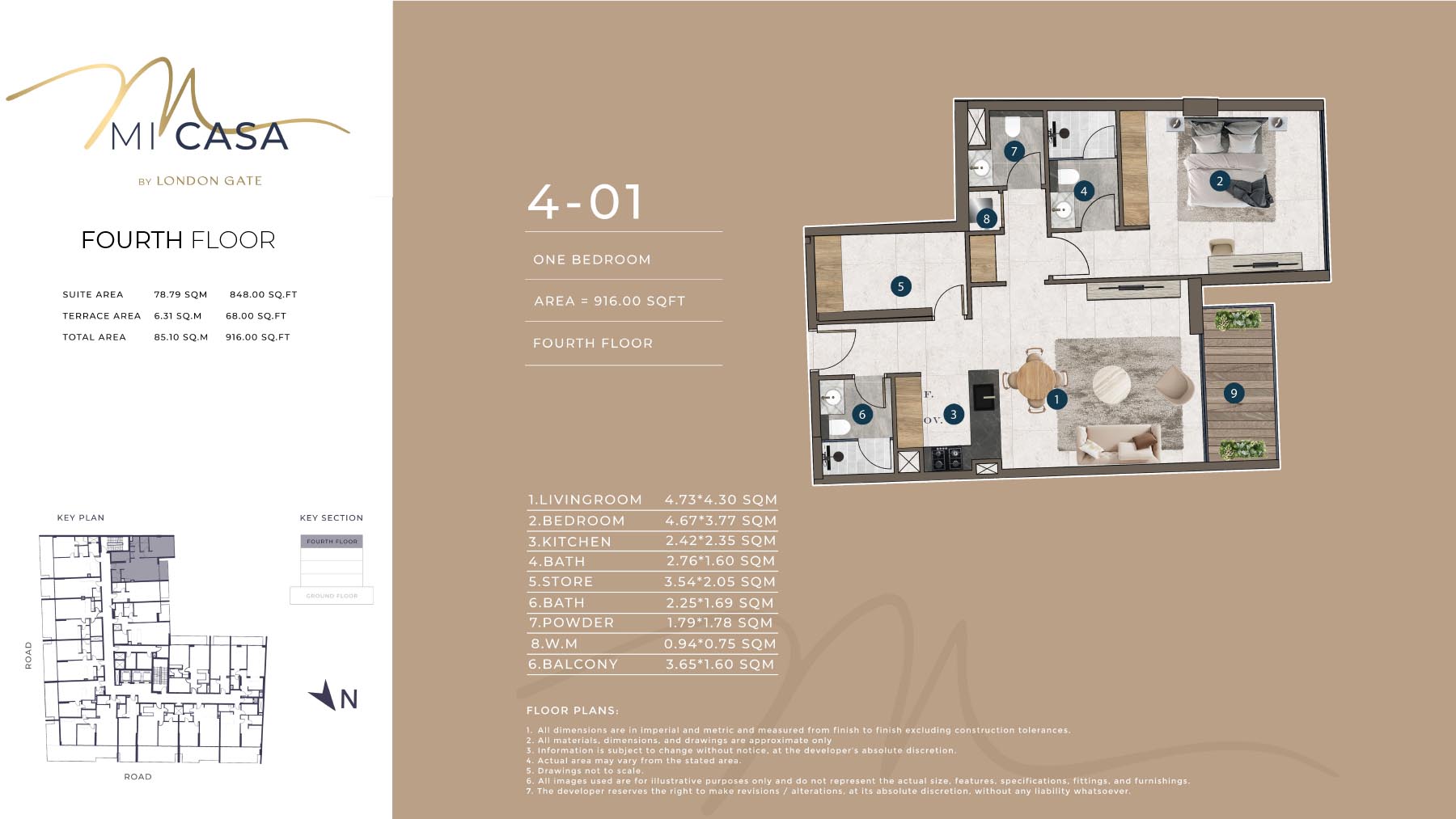 Mi Casa Residences reimagines the vibrant way of life within luxurious studios, 1 & 2-bedroom apartments constructed with spacious and well-curated floor plans. Here, all homes are perfectly placed in this safe and smart efficient housing address. Planned with refined aesthetics, quality textures, chic furnishings, open and dynamic design, every unit enjoys an ideally calm and comfy environment with smart and energy-efficient sustainable home features. In this 4-storey complex, each residence features living space with 3 metres high ceilings and 2.4 metres height in kitchen and bedrooms, forming a feeling of openness. The soft floorings, clear and chic design with sun-lit spaces, each space is crafted for effortless convenience and comfort.