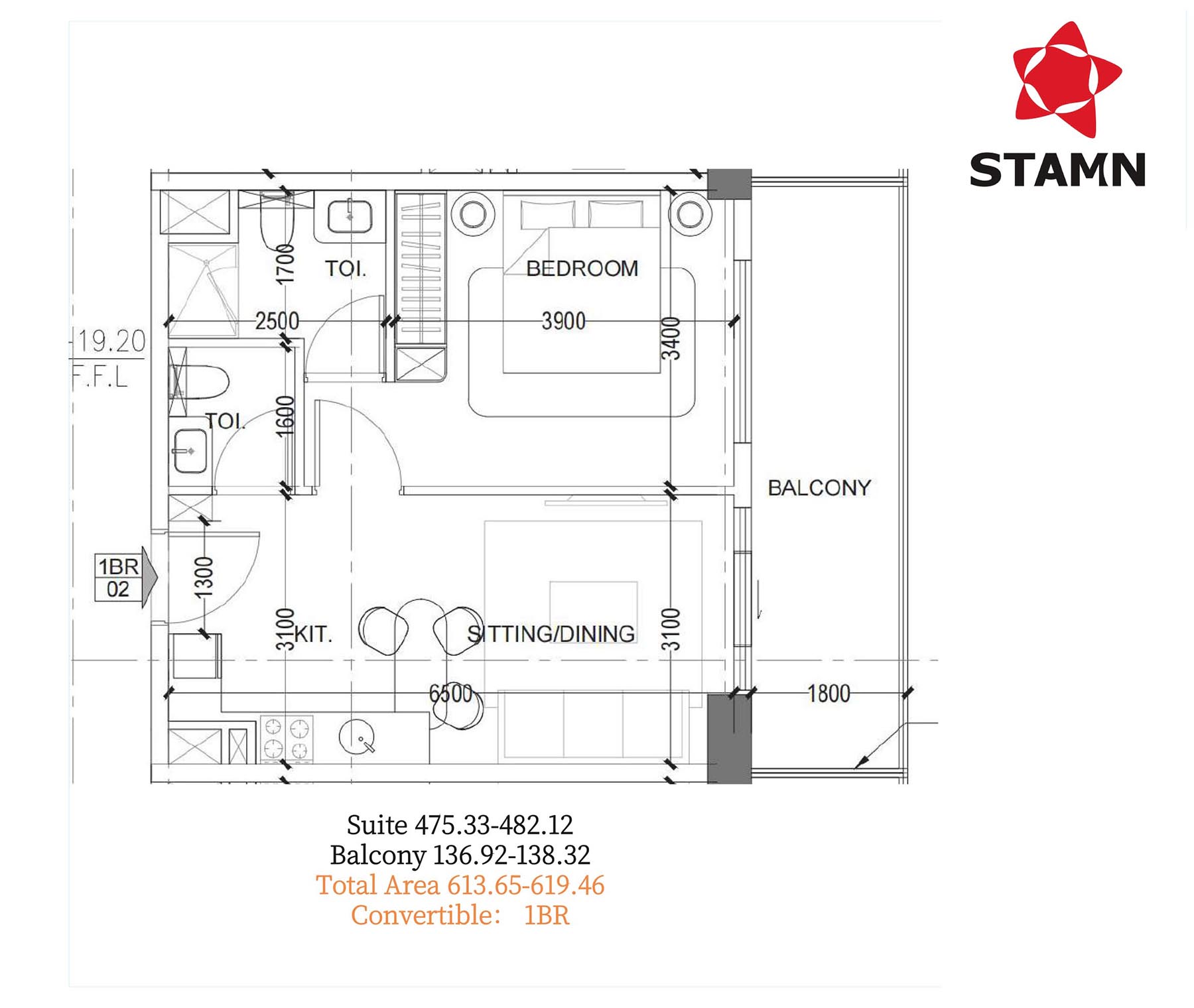 608 - 1,195 Sq Ft.