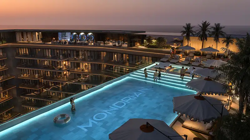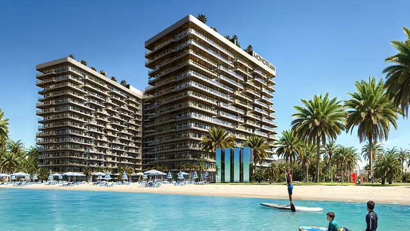Mondrian Al Marjan Beach Residences is the first of its kind Mondrian-branded beachfront epitome by Elevate lined with 1 to 3-bedroom apartments, townhouses, and exclusive sky collection. The project announces itself not with a whisper, but confidently in lyric - in bold geometry, fluid lines and joyful bursts of colour, which reinterpret beachfront living for the contemporary connoisseur. The development therefore offers a composition of experiences intended to surprise and calm down the visitor from the moment of entering the landscaped arrival: from the moment the visitor steps on the landscaped arrival one is enveloped by the slightly salty breath of the sea. Each dwelling is conceived as an intimate gallery - in scale, materiality and modesty in framing views of the Arabian Gulf. Reinforcing an obsession with detail that goes beyond finishes to lived experience, the façade not only promises just a home; but a branded lifestyle backed by global hospitality benefits and with levels of service that transform ownership.