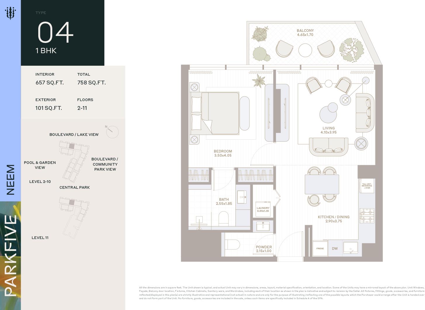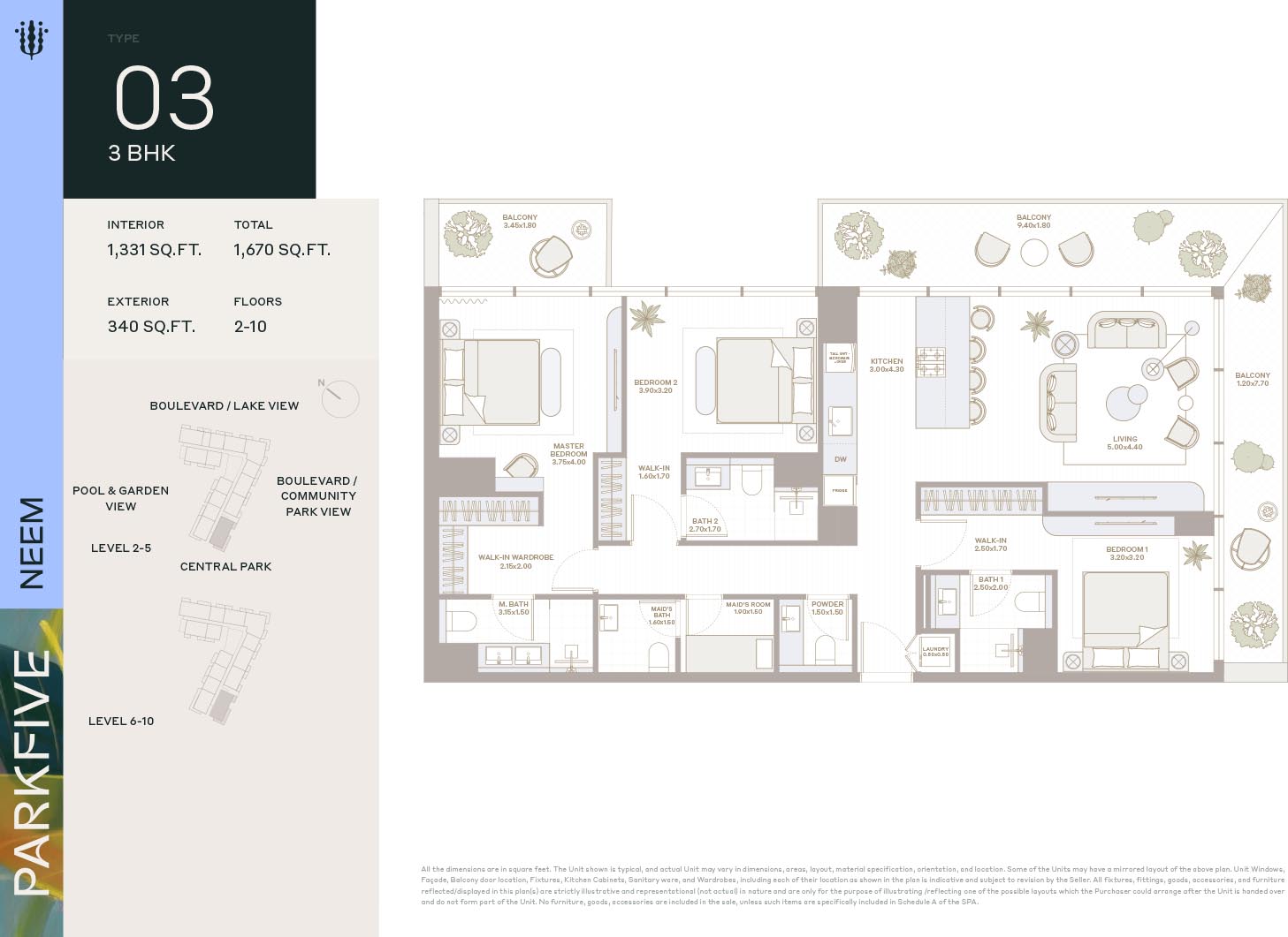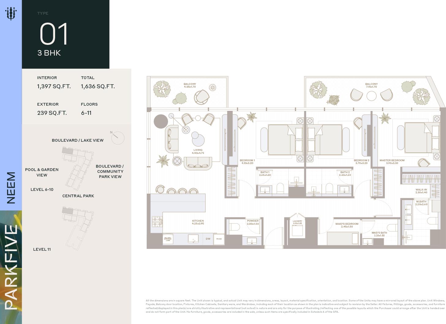 Deyaar Neem at Park Five introduces itself as the latest complex of the mega development with mindfully crafted floor plans of luxury homes that fulfill modern needs of the natives. This multi-storey complex with creative design features generous-sized enticing homes. Here, each unit comes with high ceilings and large windows of the same height that invite an amazing flow of sunlight and fresh air. The curated and furnished living & bedrooms offer picturesque views of the gardens, parks, and the harmonious locality via expensive windows.
