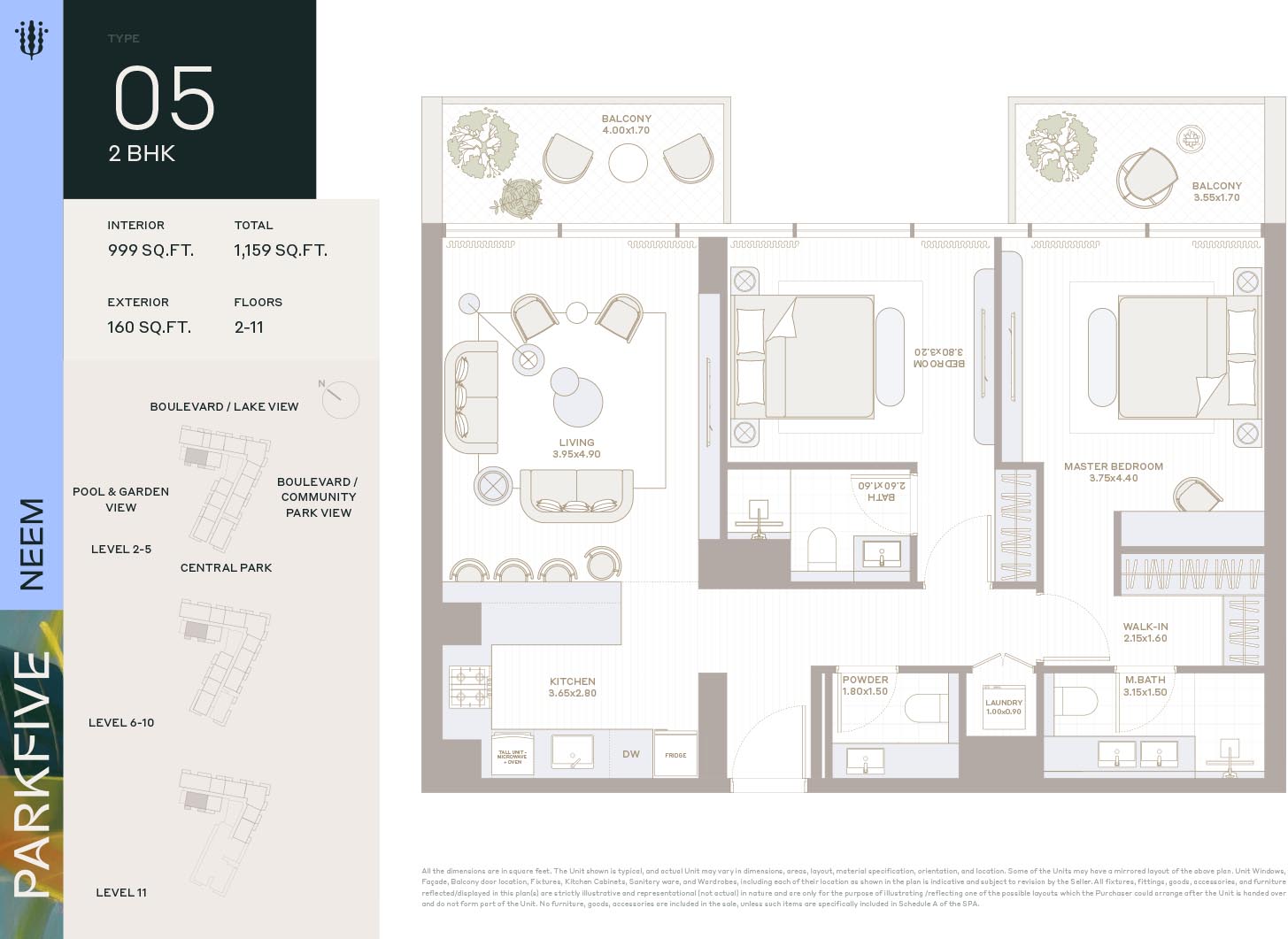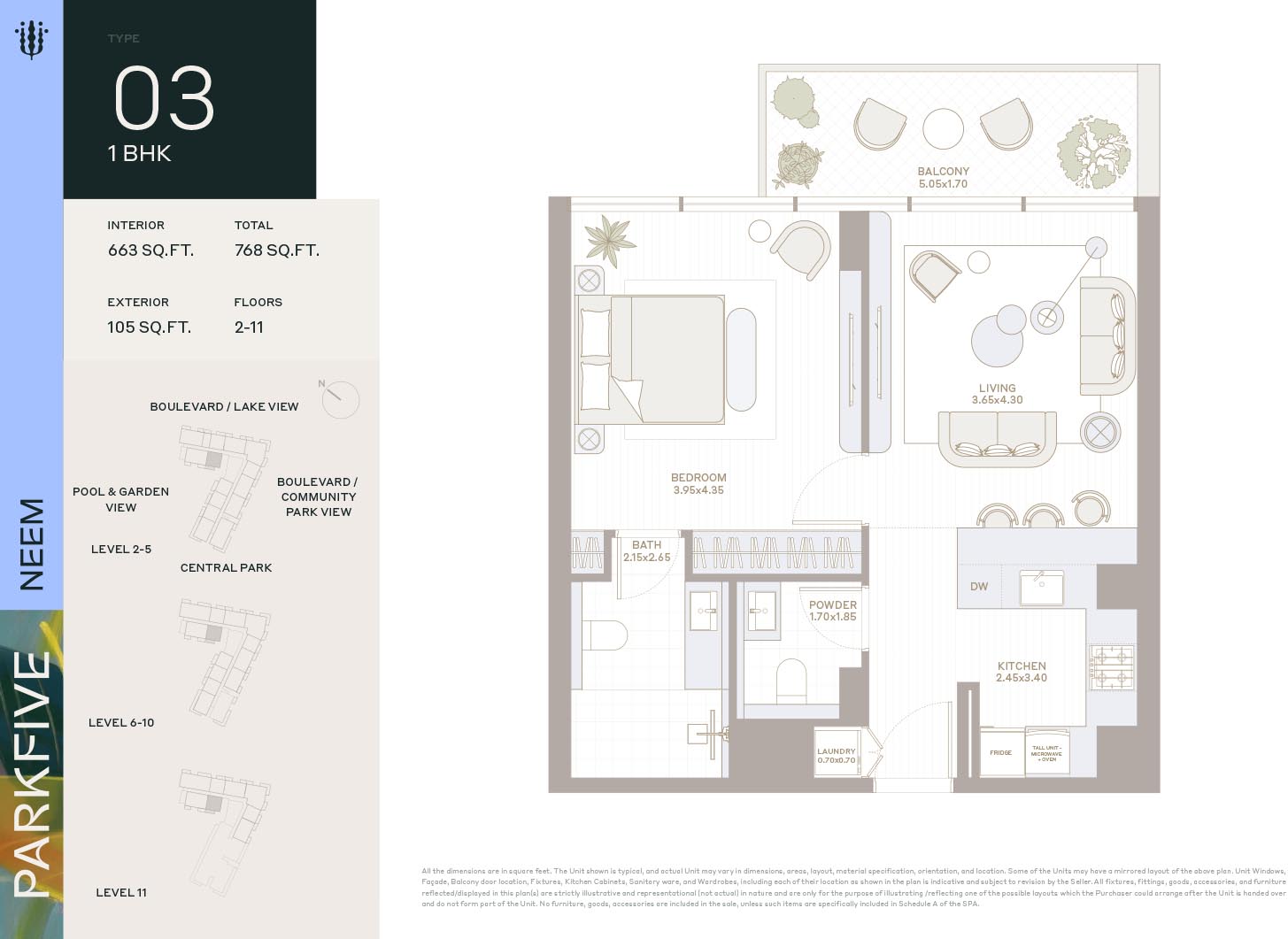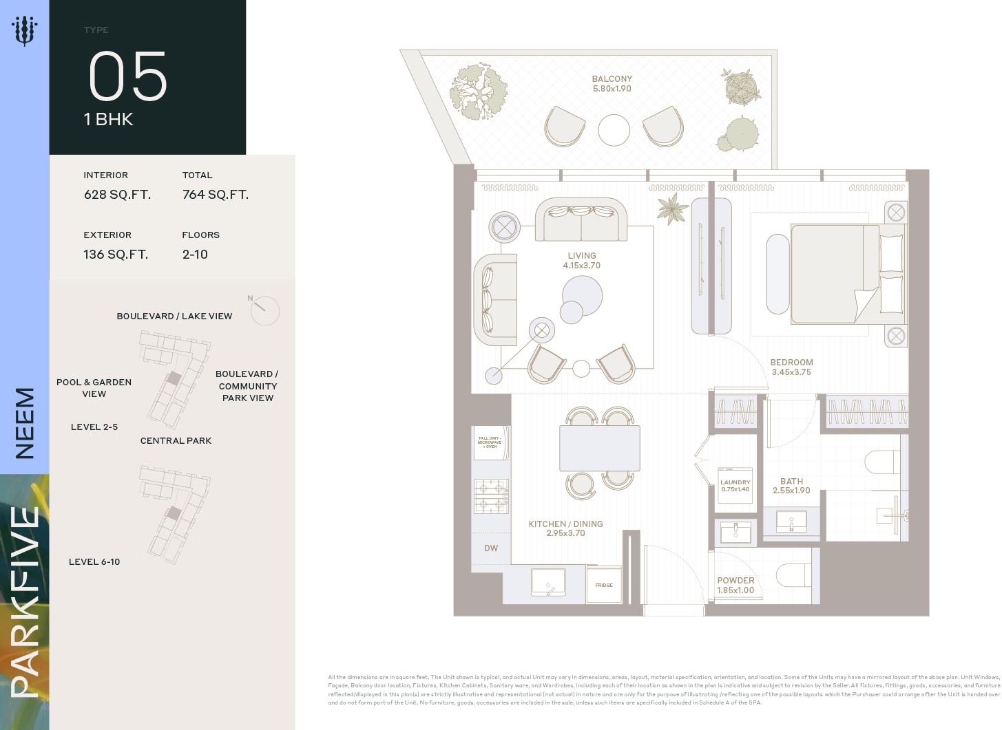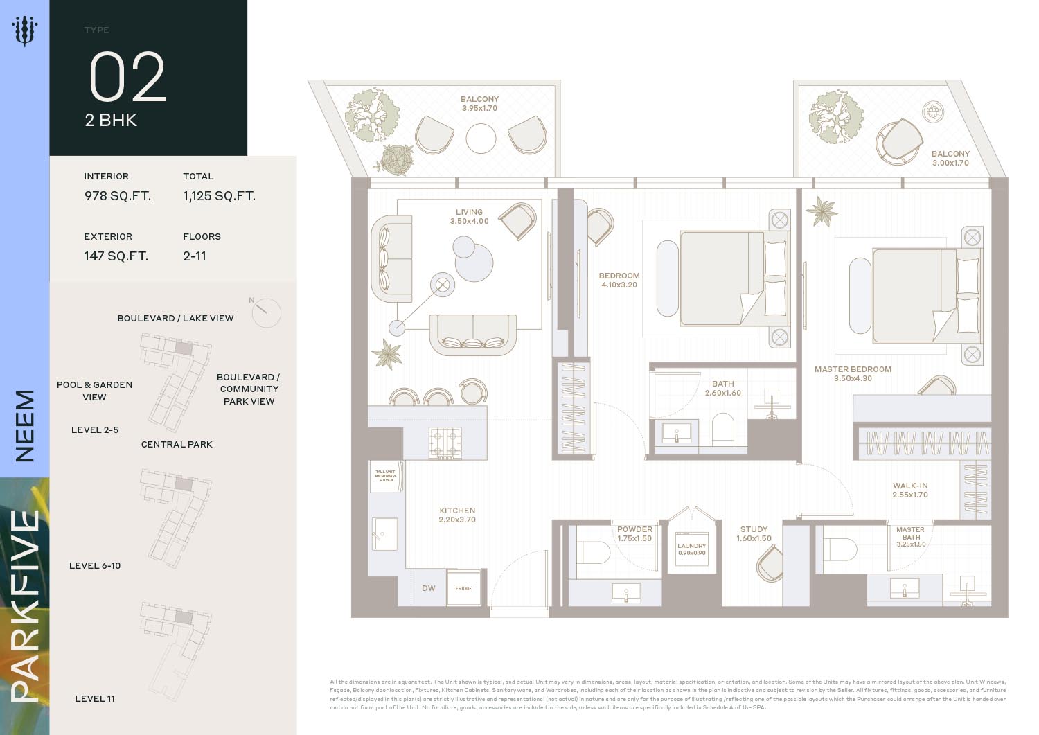Deyaar Neem at Park Five introduces itself as the latest complex of the mega development with mindfully crafted floor plans of luxury homes that fulfill modern needs of the natives. This multi-storey complex with creative design features generous-sized enticing homes. Here, each unit comes with high ceilings and large windows of the same height that invite an amazing flow of sunlight and fresh air. The curated and furnished living & bedrooms offer picturesque views of the gardens, parks, and the harmonious locality via expensive windows.