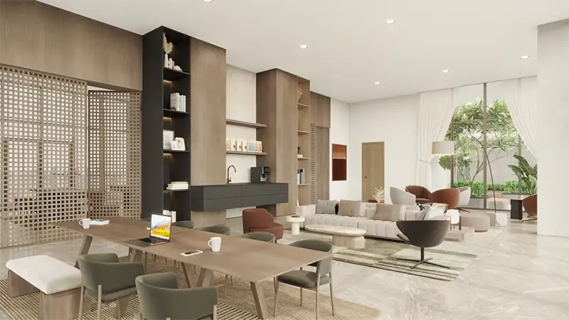 - The rooftop level introduces panoramic leisure spaces, co-working zones, and entertainment areas, offering residents stunning views and flexible work spaces.