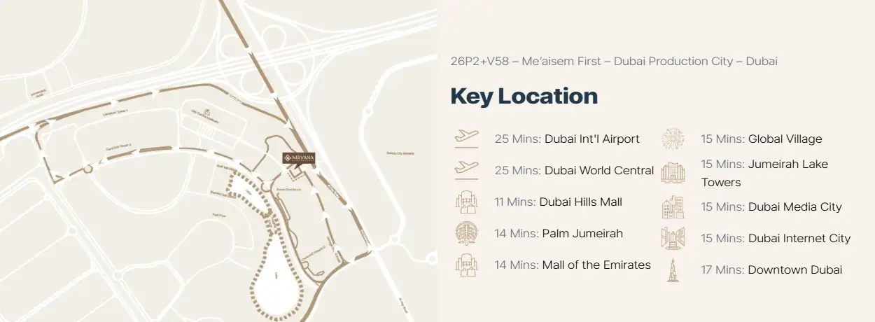 Nirvana Residences 1 at Dubai Production City is the modern class high-rise development by the renowned Meraki Developers with studios, 1, 2 & 3-bedroom apartments. With its rapid rhythm and impressive city landscape, and a notion of a living in harmony with nature, deservedly called wellness, the façade is brought into the welcoming city. This future residential tower which is carefully located in Me’aisem, part of the Production City to provide its residents with a comfortable combination of both calmness and urbanity. Built to rise with a grace and a modernity and a perfect blend of proportions with a residential philosophy that is created through comfort, elegance, and functionality. The development is planned as an oasis within city centre, providing residents with peaceful lifestyle and directing them to bustling focus areas of the fast-paced Dubai life.