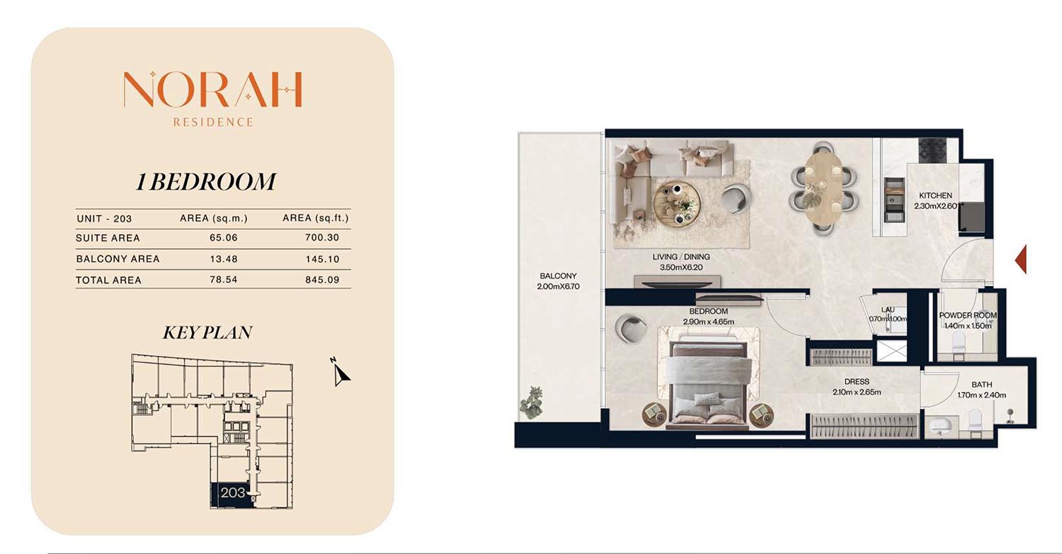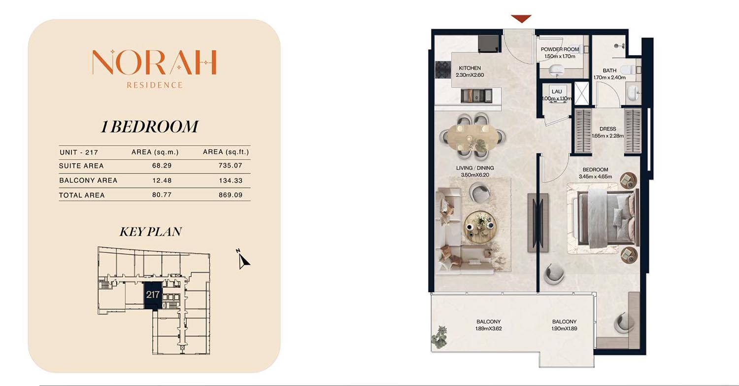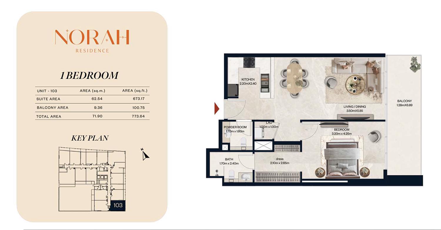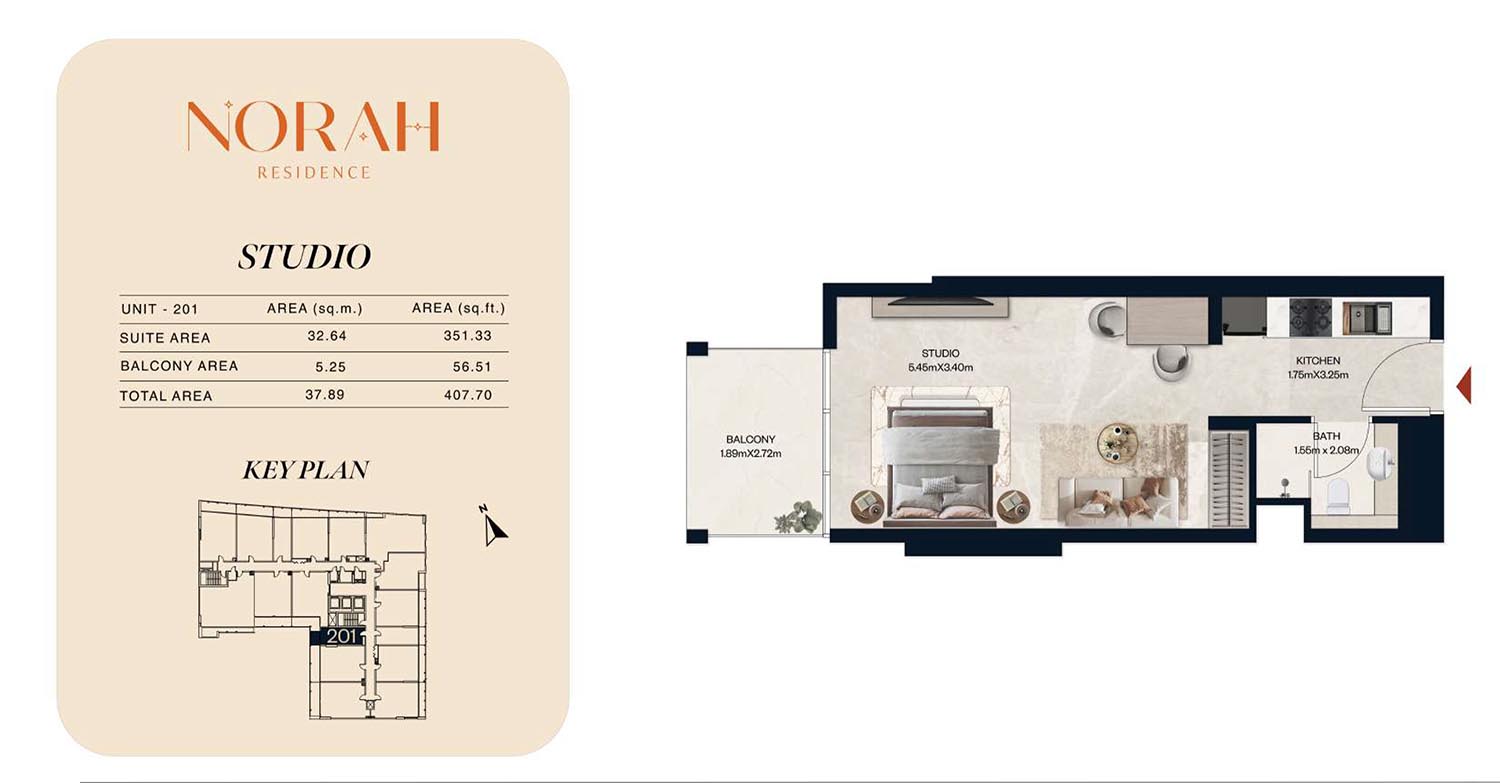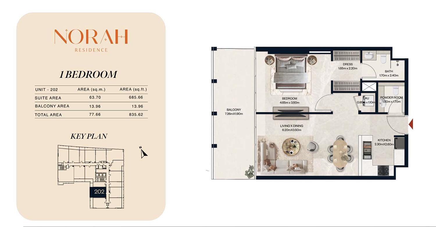 Catered to the futuristic & modern lifestyle, the Norah Residence is a 16-storey building with floor plans of studios, 1, 2, & 3-bedroom apartments & duplexes. From a diverse collection of unique styles, all the 183 residences have been planned to offer comfortable and dynamic open spaces. Each unit boasts smooth finishes, elegant and neutral tones, smart appliances, and furnished living areas and bedrooms with bright ambience and panoramic vistas of the cityscape and lush setting.