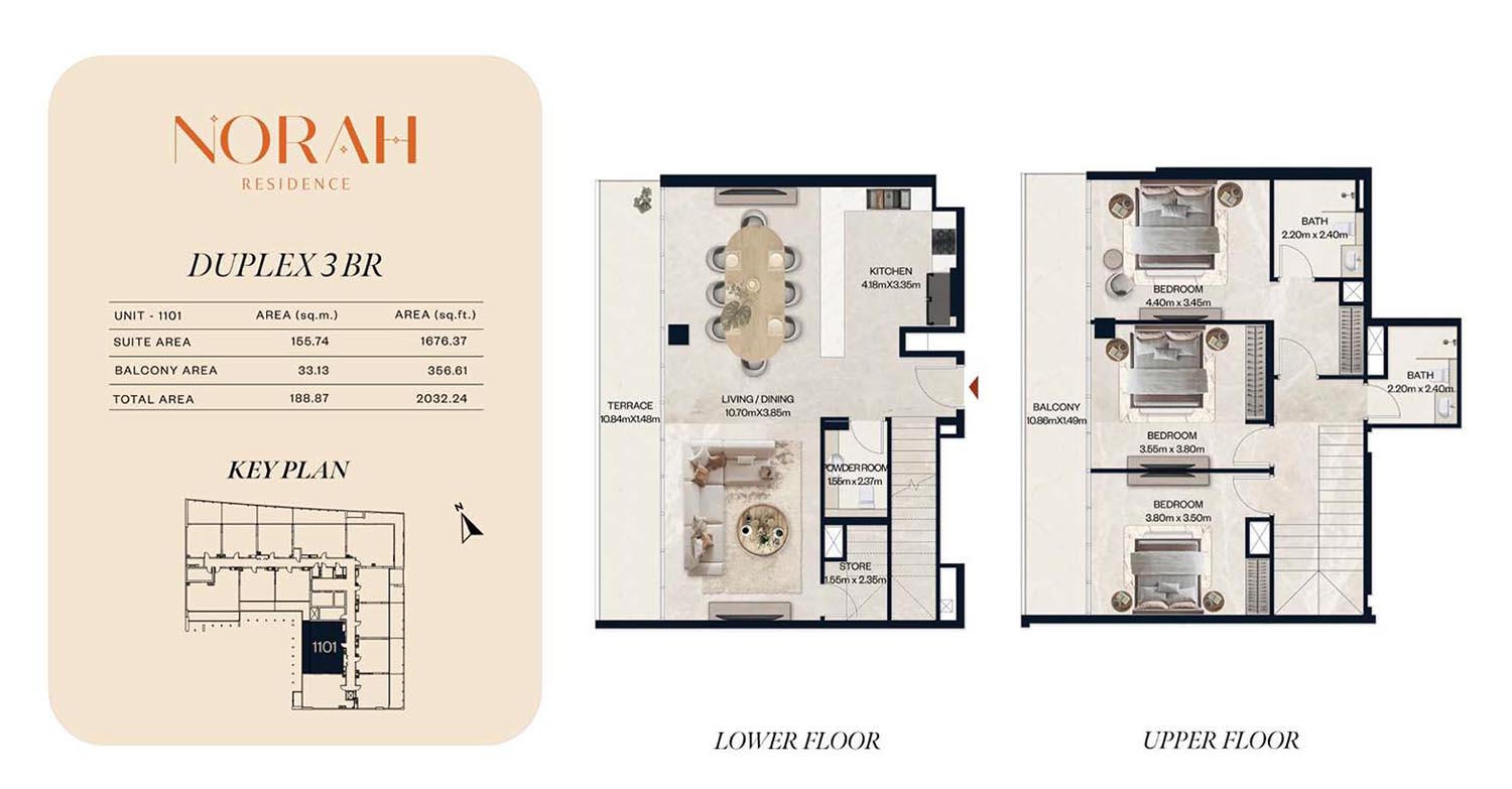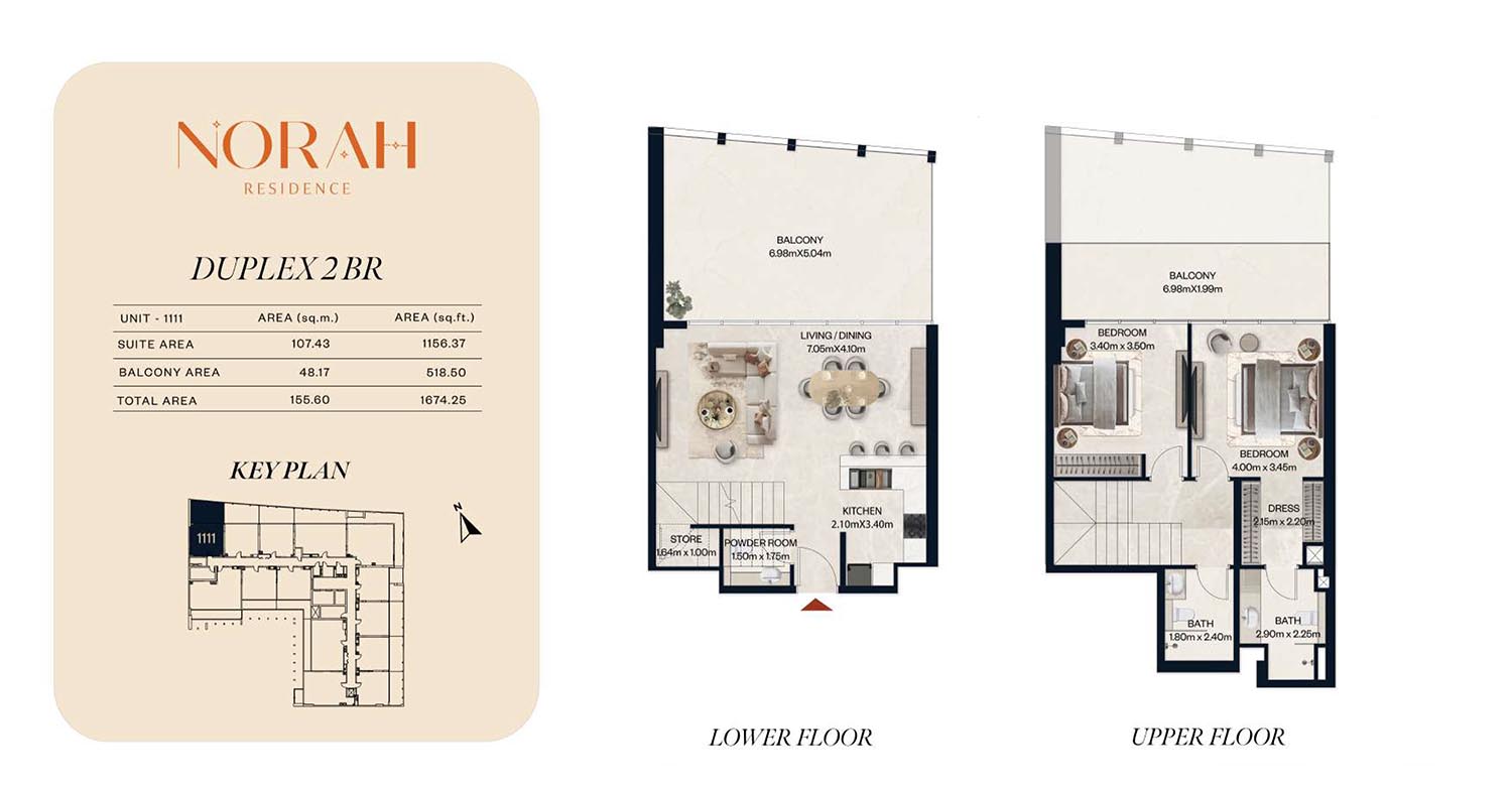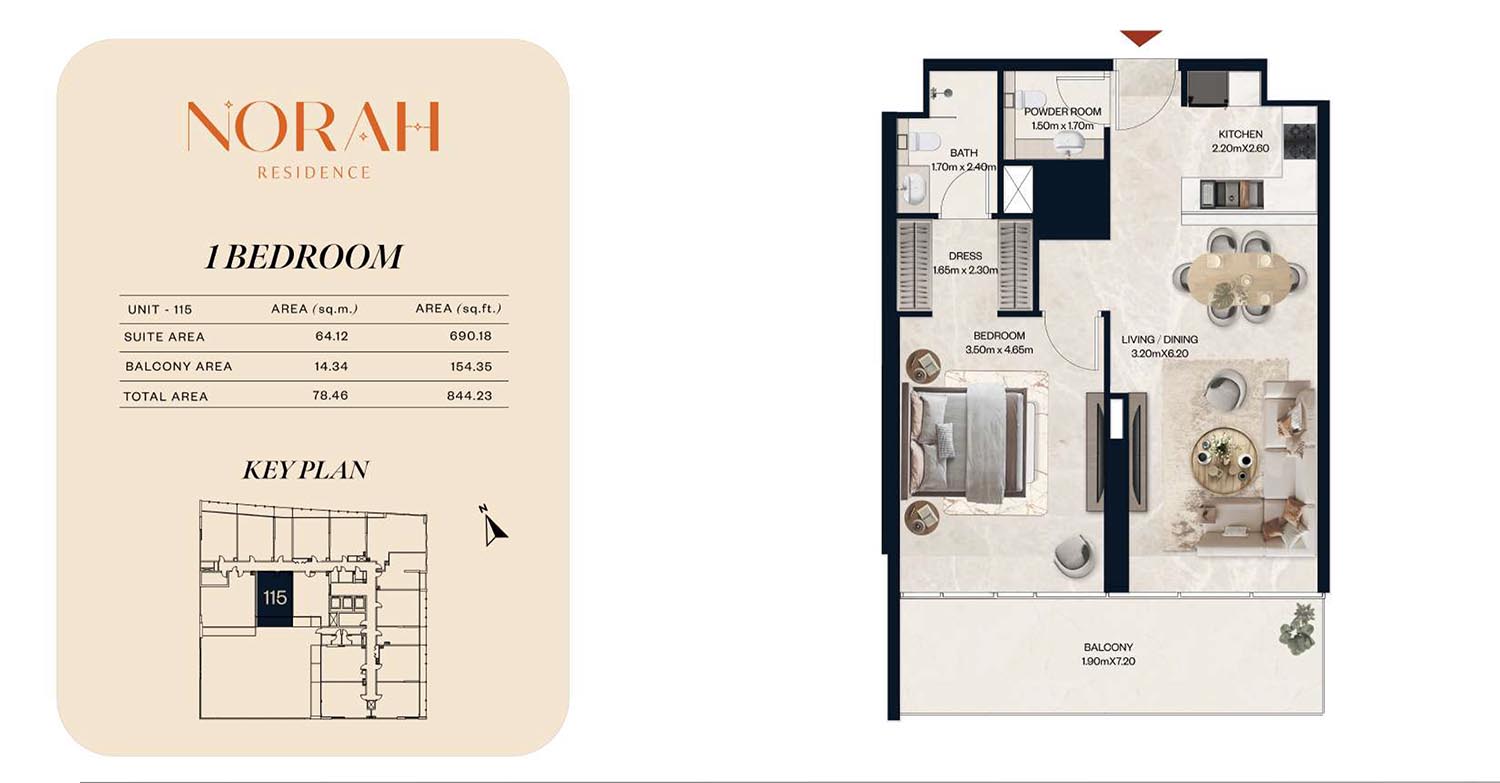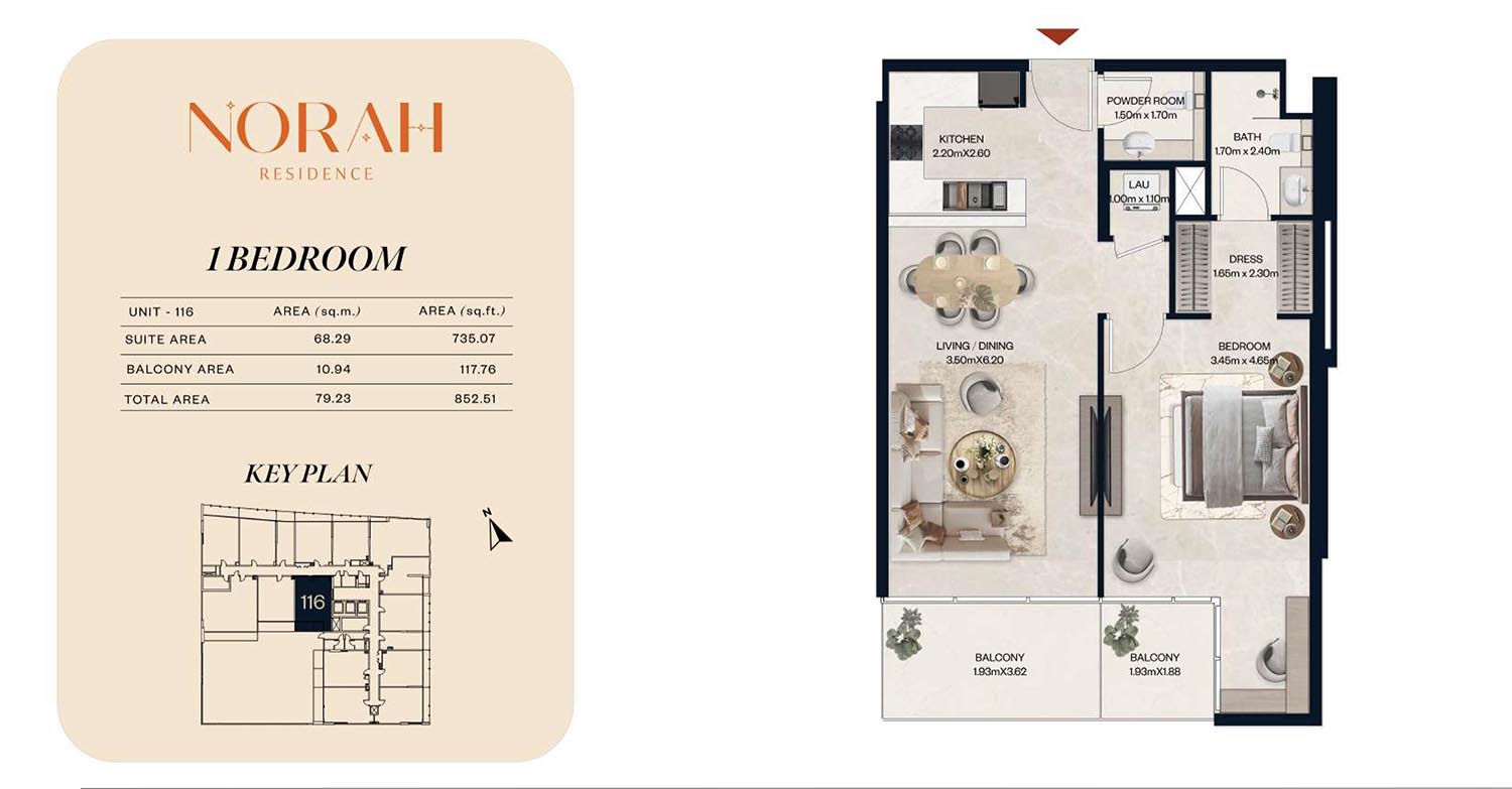 Catered to the futuristic & modern lifestyle, the Norah Residence is a 16-storey building with floor plans of studios, 1, 2, & 3-bedroom apartments & duplexes. From a diverse collection of unique styles, all the 183 residences have been planned to offer comfortable and dynamic open spaces. Each unit boasts smooth finishes, elegant and neutral tones, smart appliances, and furnished living areas and bedrooms with bright ambience and panoramic vistas of the cityscape and lush setting.