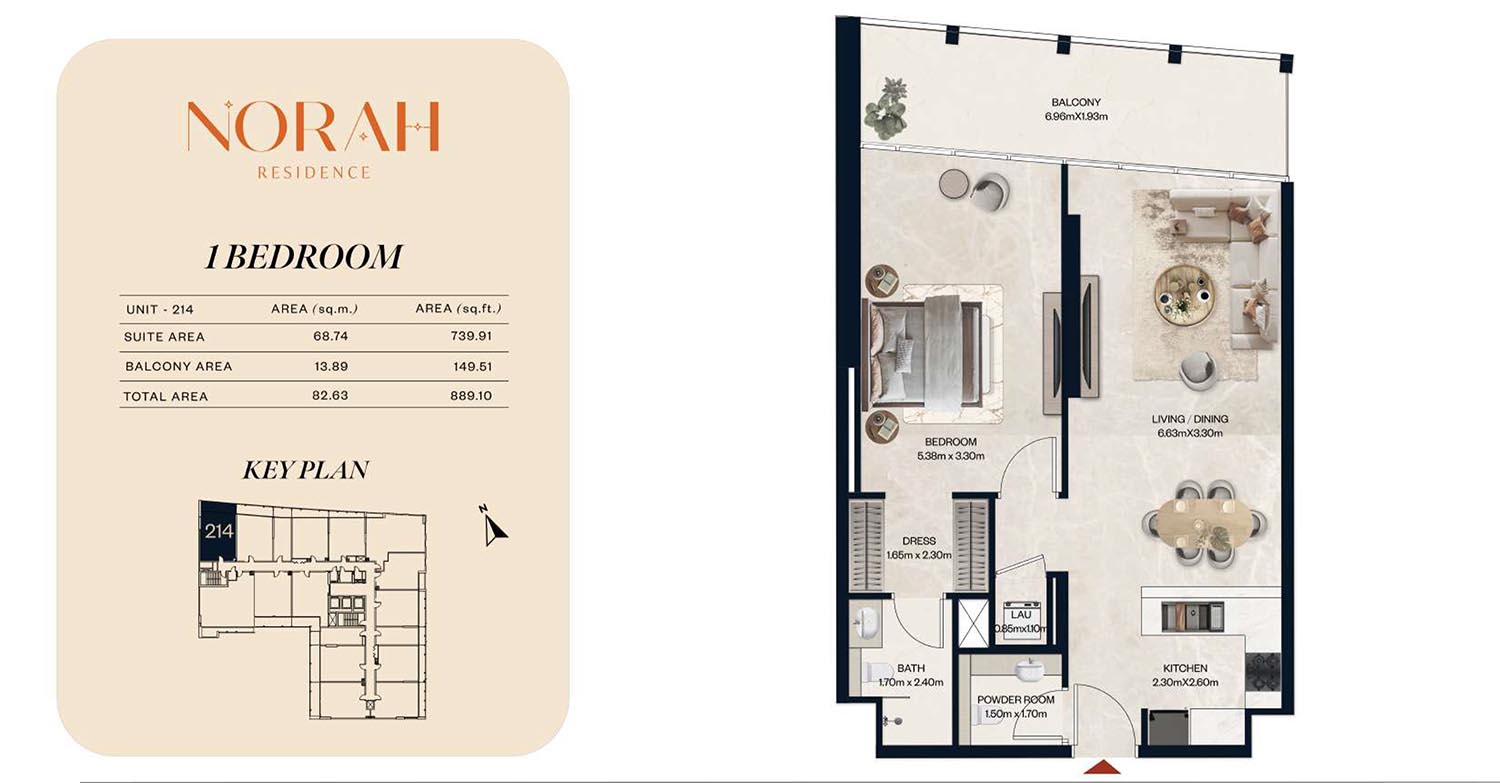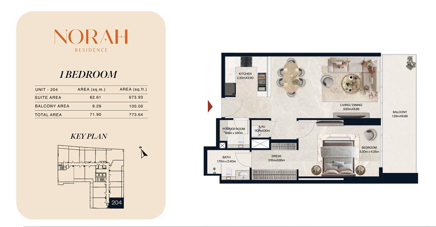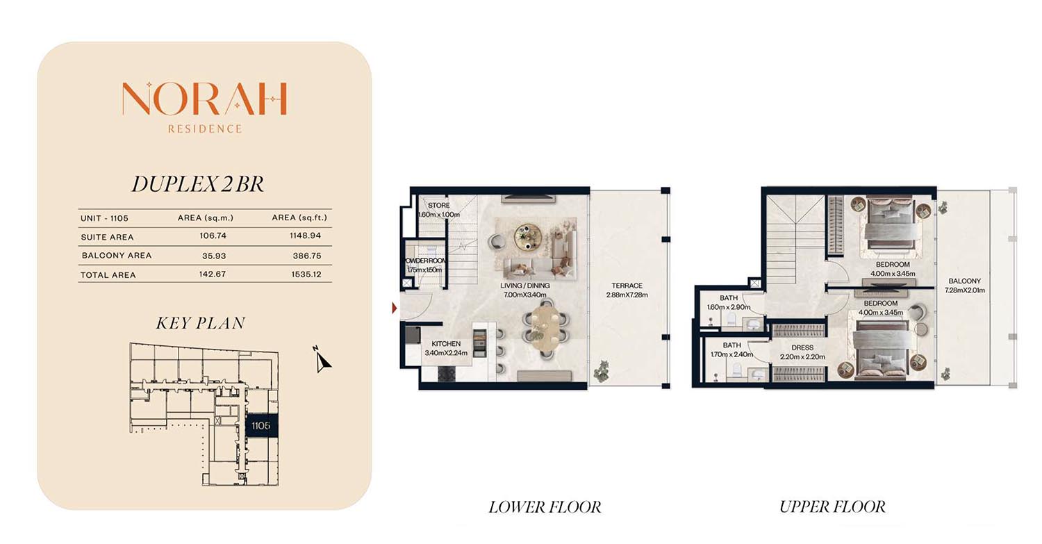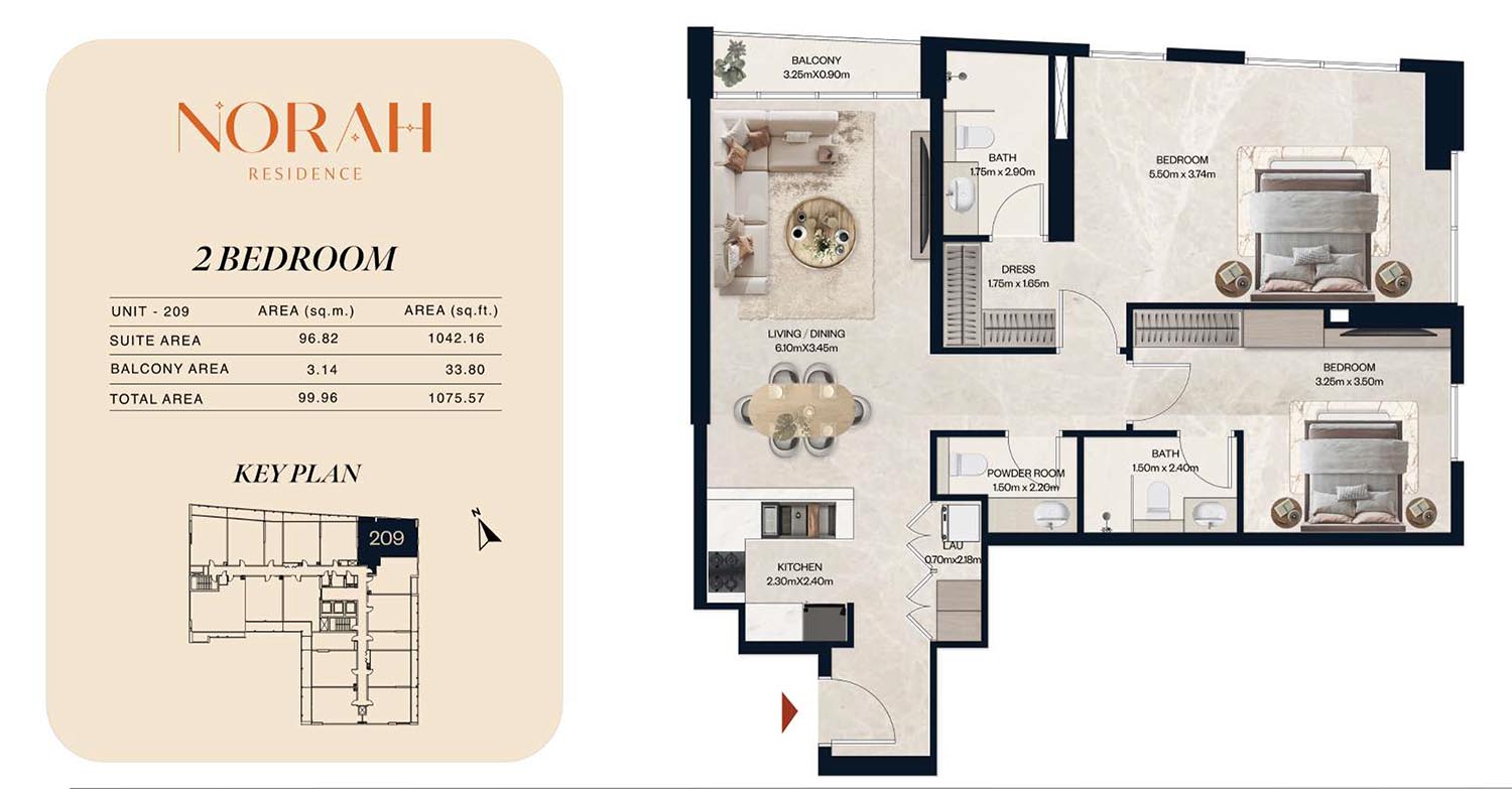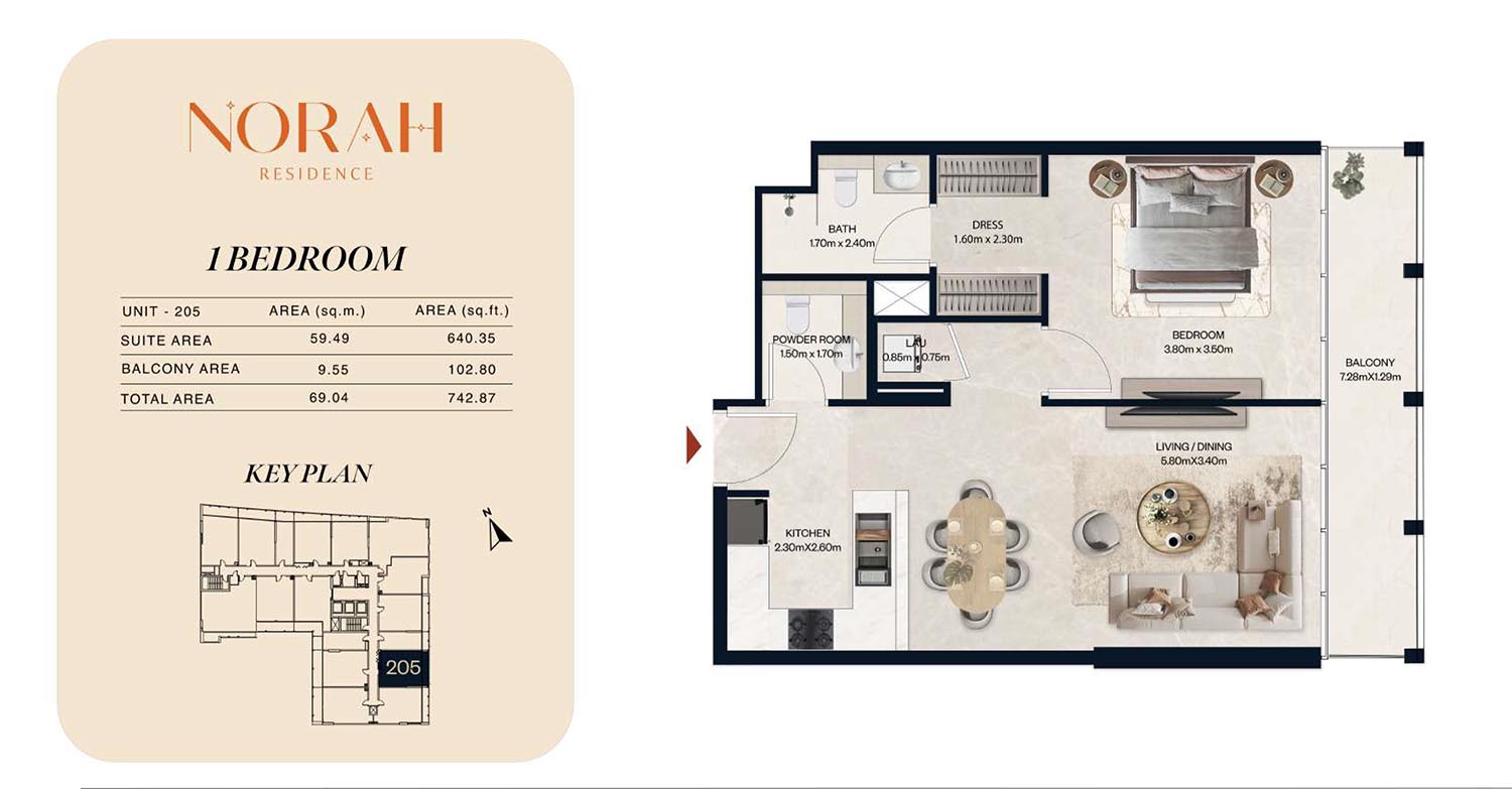 Catered to the futuristic & modern lifestyle, the Norah Residence is a 16-storey building with floor plans of studios, 1, 2, & 3-bedroom apartments & duplexes. From a diverse collection of unique styles, all the 183 residences have been planned to offer comfortable and dynamic open spaces. Each unit boasts smooth finishes, elegant and neutral tones, smart appliances, and furnished living areas and bedrooms with bright ambience and panoramic vistas of the cityscape and lush setting.