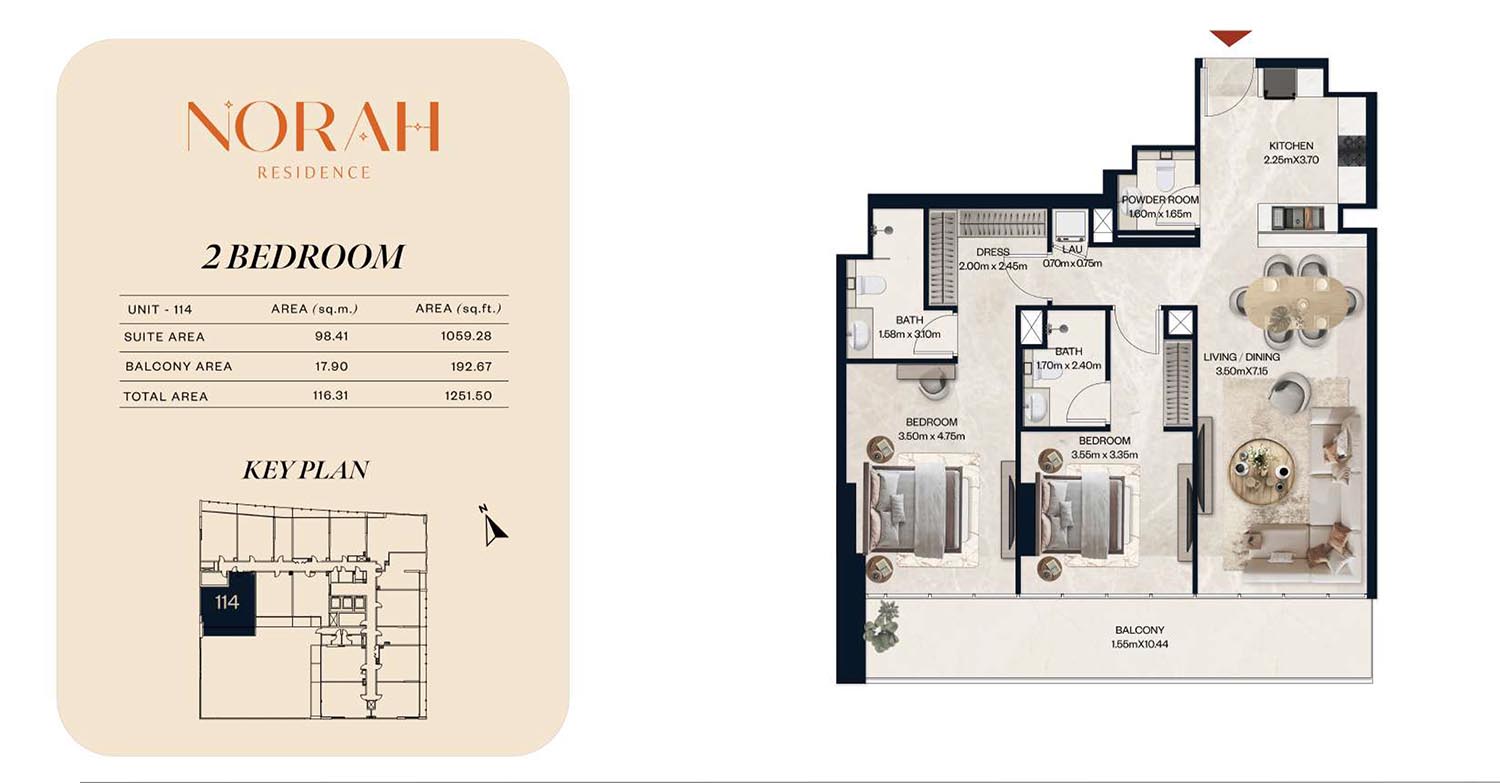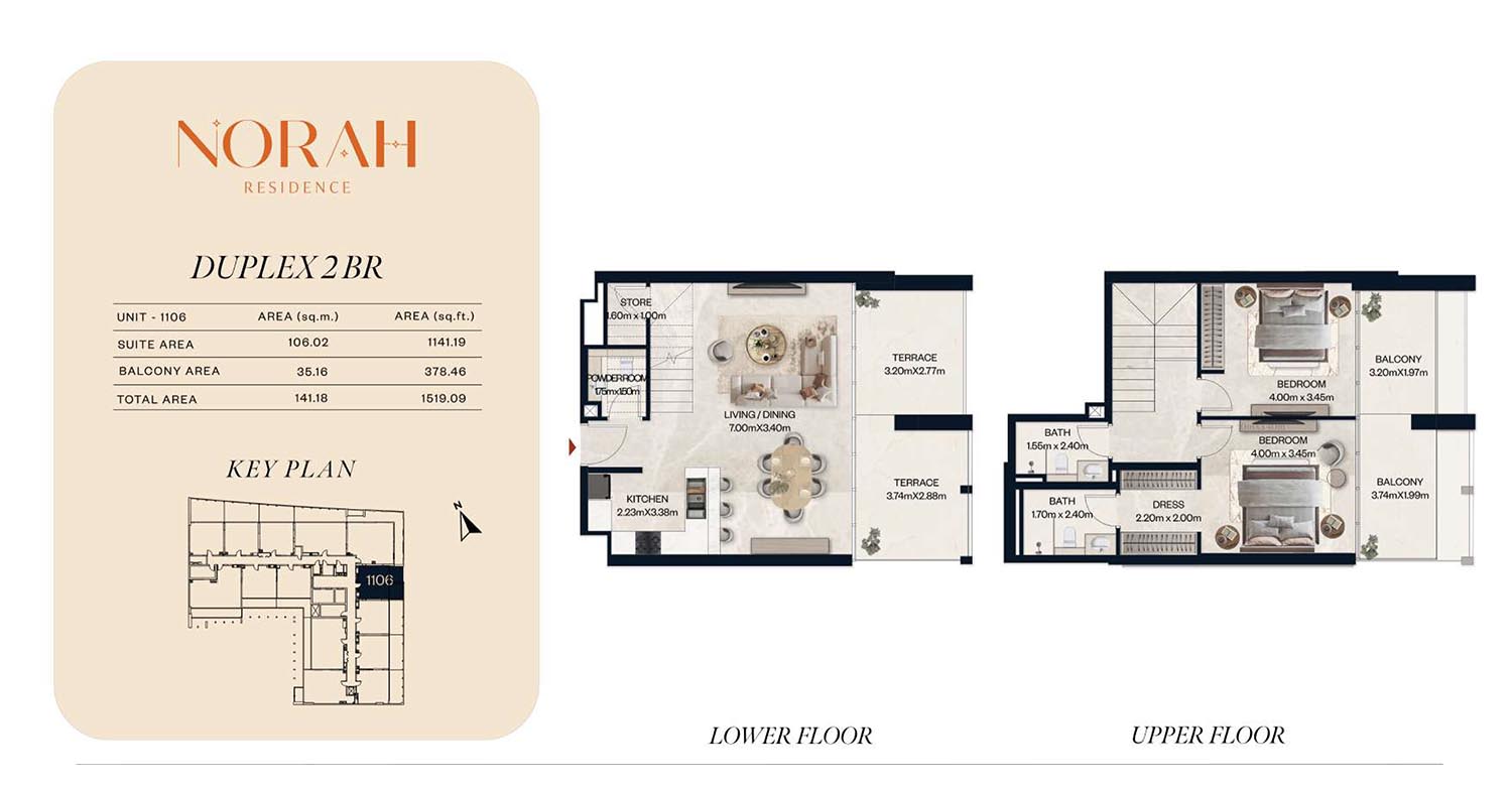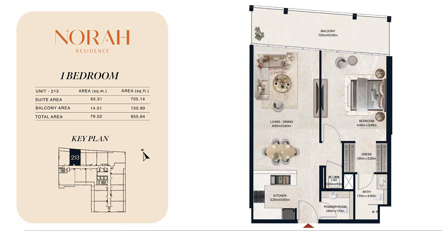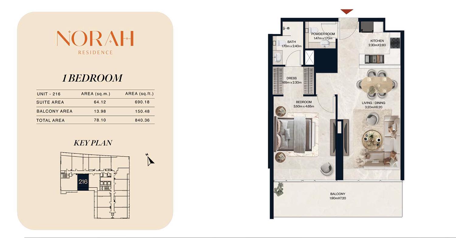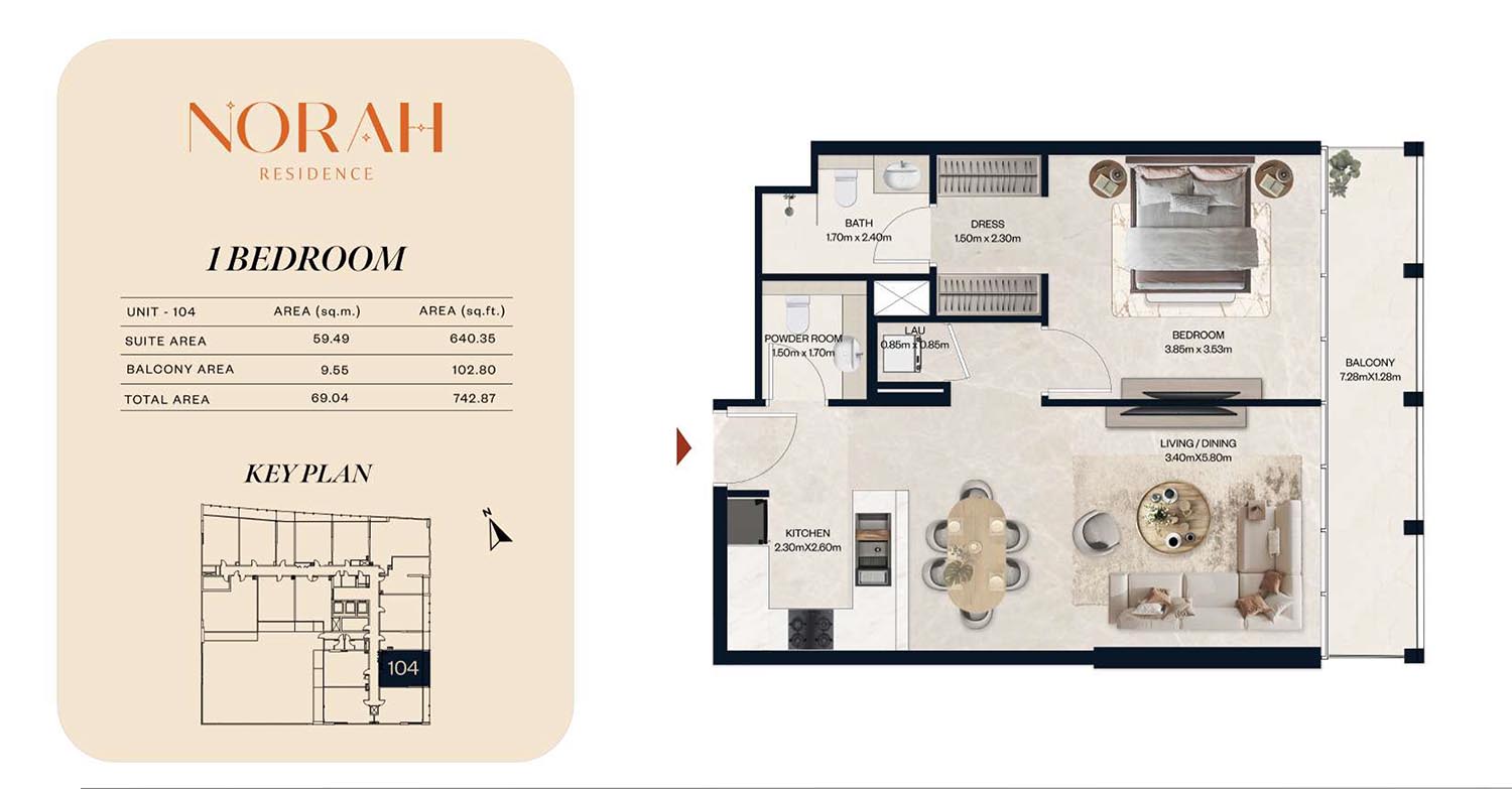 Catered to the futuristic & modern lifestyle, the Norah Residence is a 16-storey building with floor plans of studios, 1, 2, & 3-bedroom apartments & duplexes. From a diverse collection of unique styles, all the 183 residences have been planned to offer comfortable and dynamic open spaces. Each unit boasts smooth finishes, elegant and neutral tones, smart appliances, and furnished living areas and bedrooms with bright ambience and panoramic vistas of the cityscape and lush setting.