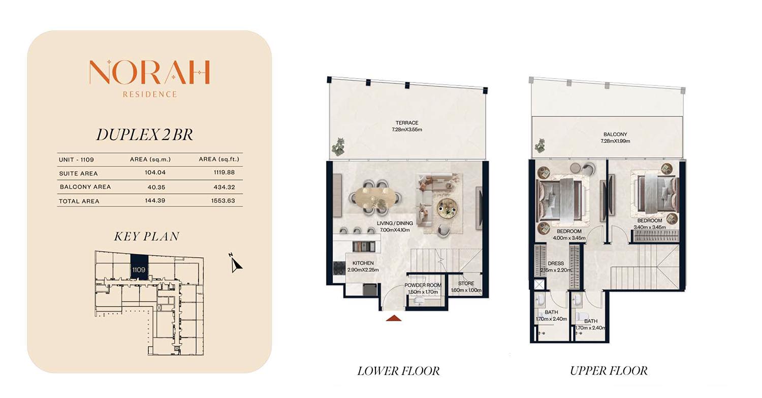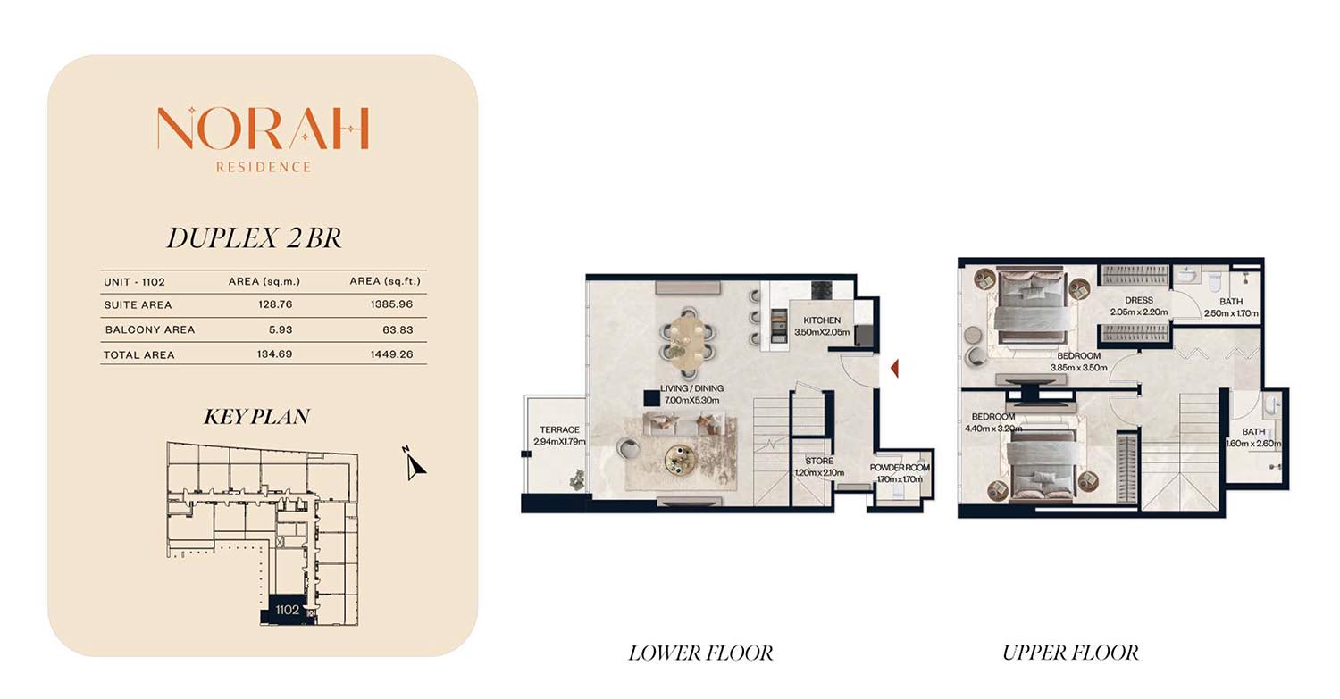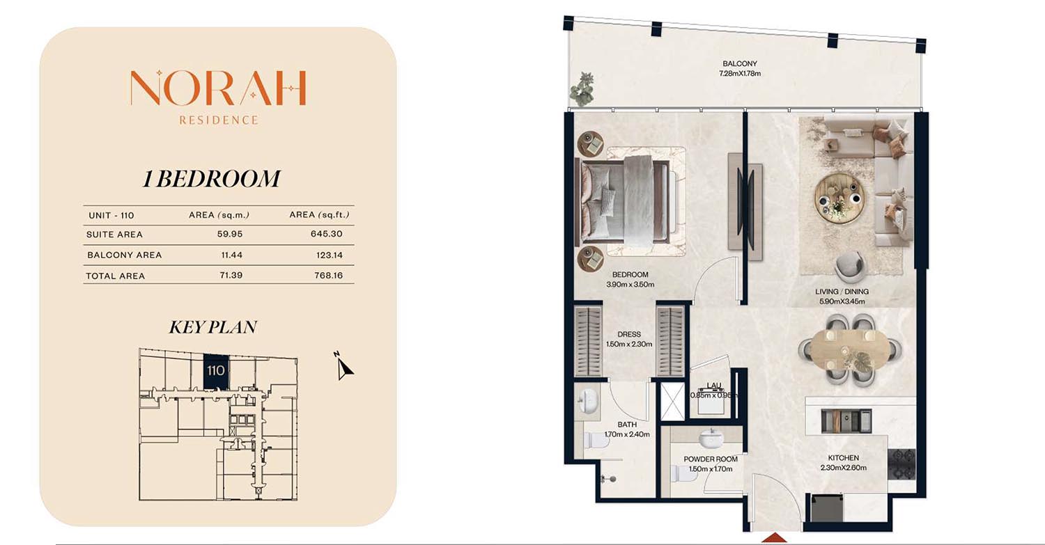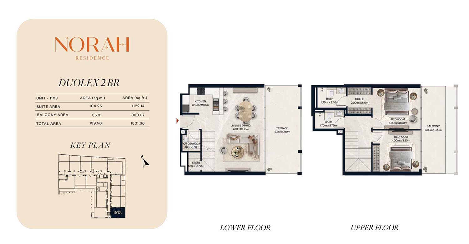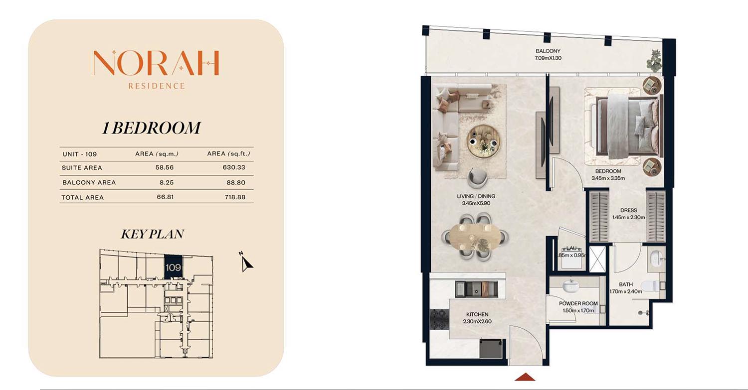 Catered to the futuristic & modern lifestyle, the Norah Residence is a 16-storey building with floor plans of studios, 1, 2, & 3-bedroom apartments & duplexes. From a diverse collection of unique styles, all the 183 residences have been planned to offer comfortable and dynamic open spaces. Each unit boasts smooth finishes, elegant and neutral tones, smart appliances, and furnished living areas and bedrooms with bright ambience and panoramic vistas of the cityscape and lush setting.