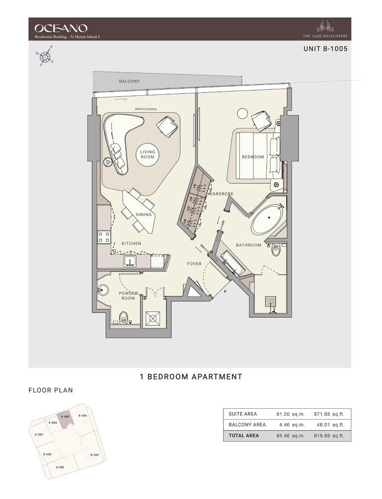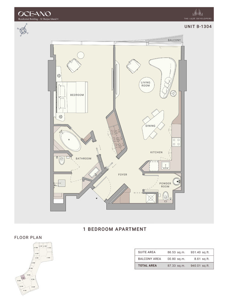 Oceano is the premium residential landmark at Al Marjan Island, featuring exquisite floor plans range of 1 - 4 bedroom apartments, penthouses and sky villas. This multi-storey twin building complex exudes ample storage of interiors and floor-to-ceiling window with lavish furnishing, elegant detailing, sustainable and functional interiors that cater to the preferences of the residents.