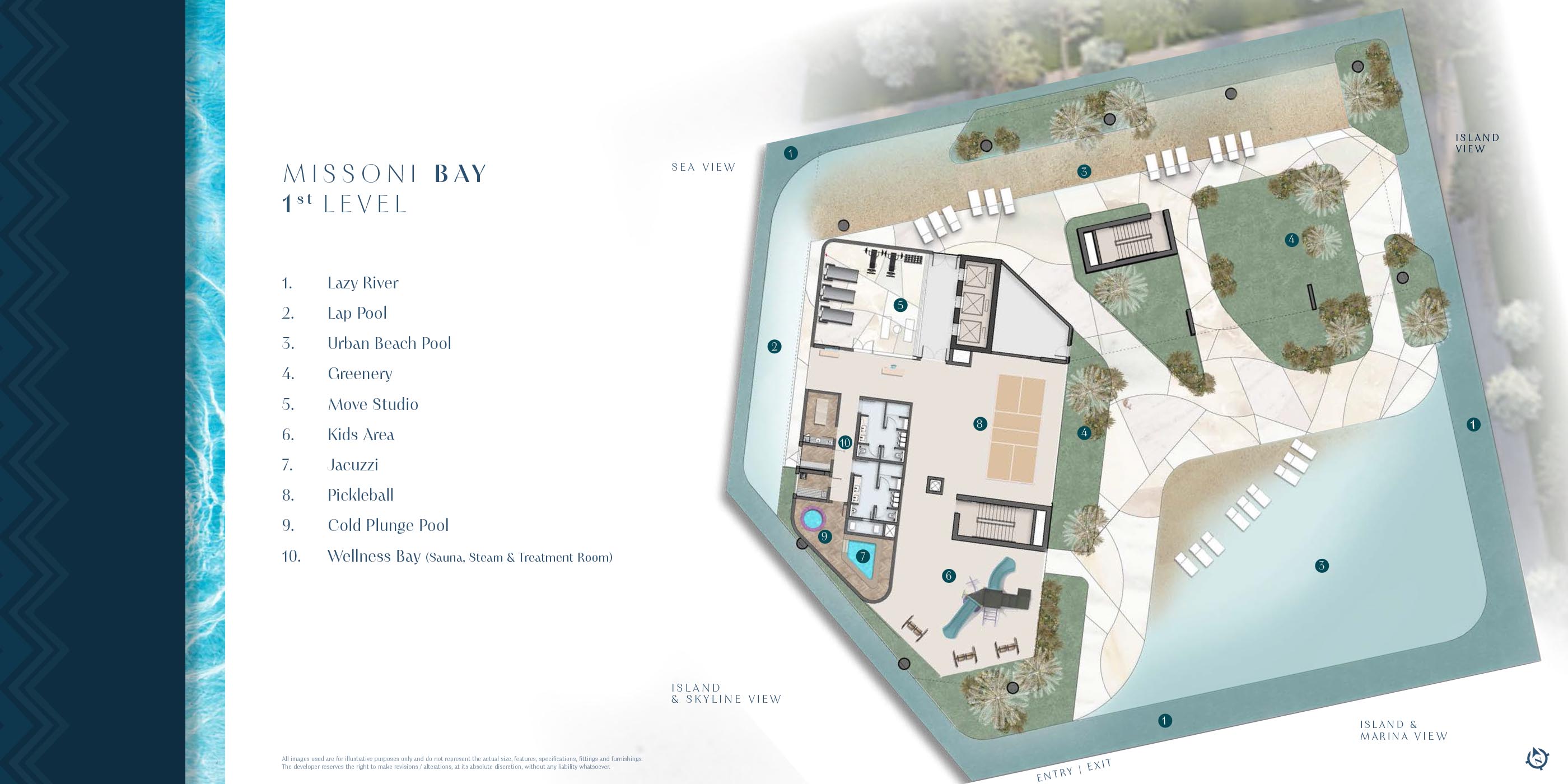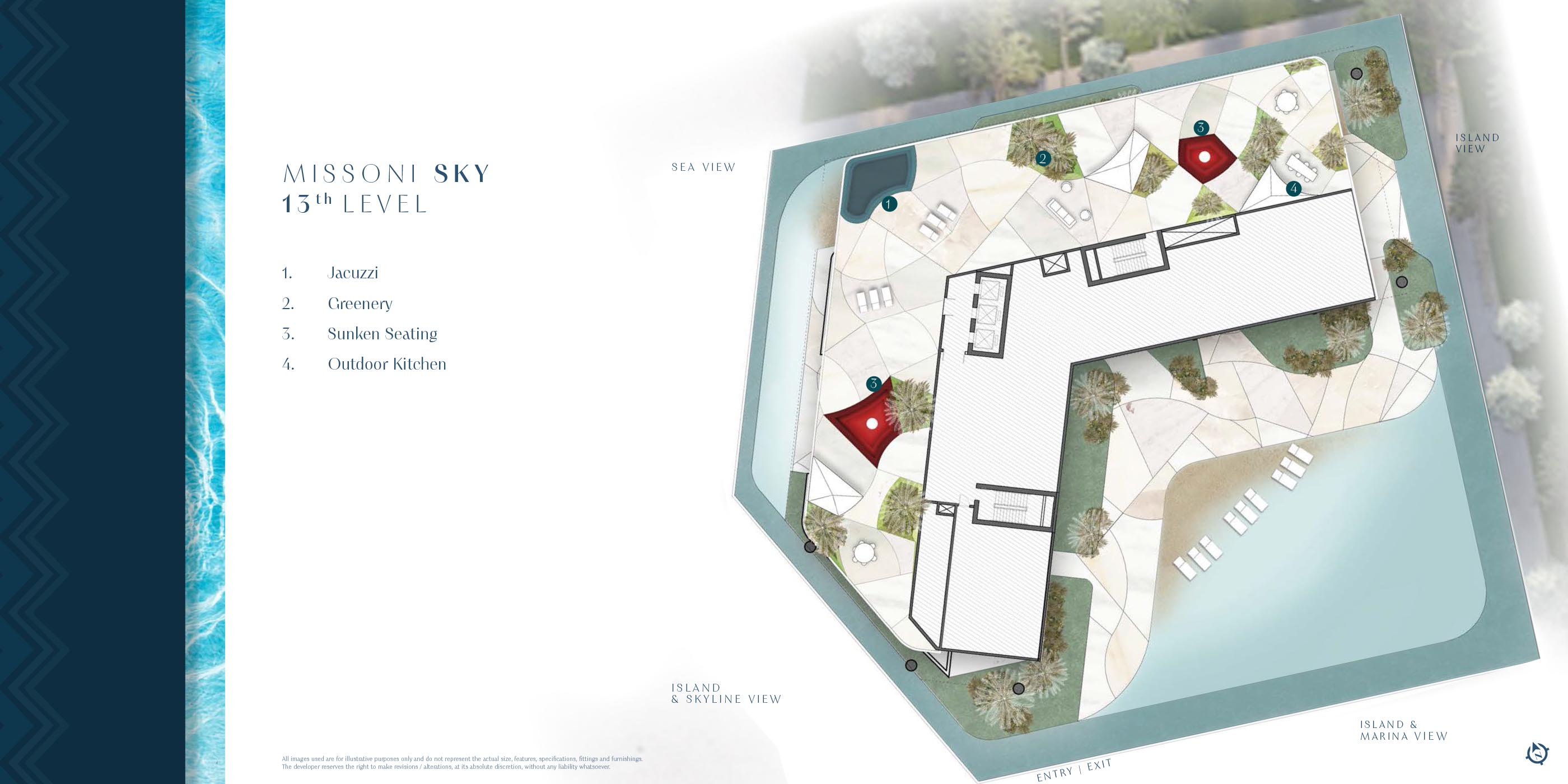 All floor plans of 2 to 5-bedroom plus apartments in the Octa Isle Interiors Missoni development are created to match the expectations of all modern residents. The residences are carefully designed to ensure there’s plenty of natural light, enough room and astounding views of the Arabian Gulf on one side or Dubai Islands skyline on the other. You can see the design ideas in the high-ceiling and open-plan living areas, all cosily fitted with personalized finishes that are sophisticated at the same time. By offering big balconies and tall windows, residents easily connect their inside space to the outdoor calm of the Island.