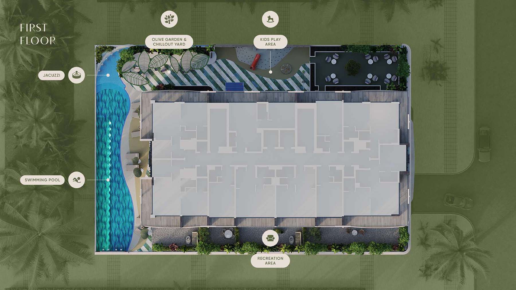 Presenting the Olivia Gardens Residence, a symbol of elevated luxury living, capturing floor plans of homes with sufficient spaces and curated & smart elements. Rising with only 5 levels, it offers only limited numbers and variety of homes. Each unit is distinguished by the invigorating spaces, soft and aesthetic layouts, ample indoor storage, and spacious balconies, while the large windows invite the mesmerizing daylight and stunning views of the lush setting and active locality.