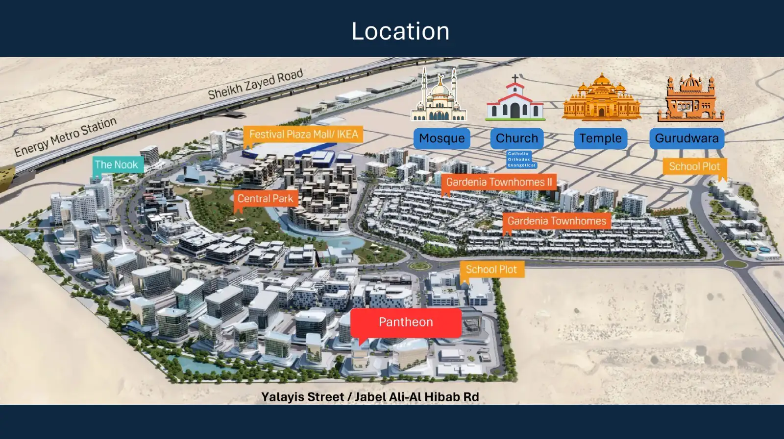 The Omya Residences at Wasl Gate master plan is modelled to facilitate the integrated lifestyle by making the residential living blend with retailing and leisure areas. The building is located in strategic positions to maximize the views, accessibility and privacy without compromising the high visual harmony all over the community. Walkways and green corridors are landscaped, making people more approachable to walking, which improves the quality of life. The