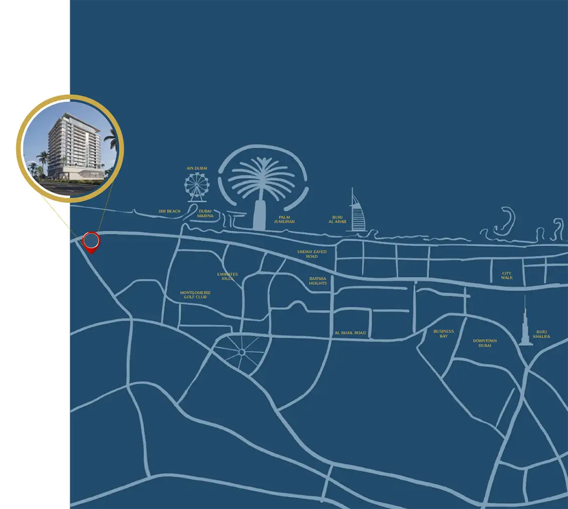 Omya Residences is situated in an excellent position at Wasl Gate with the direct connection to the Sheikh Zayed Road that provides excellent connectivity within the city of Dubai. The project is only a few steps away to Energy Metro Station thus allowing individuals to commute easily to key business and shopping areas and other recreational centers. This is a great place advantage that contributes greatly to the daily convenience and a good rental and resale potential. Wasl Gate is bordered with a well-developed infrastructure and constant development, and it keeps becoming a very appealing urban location.