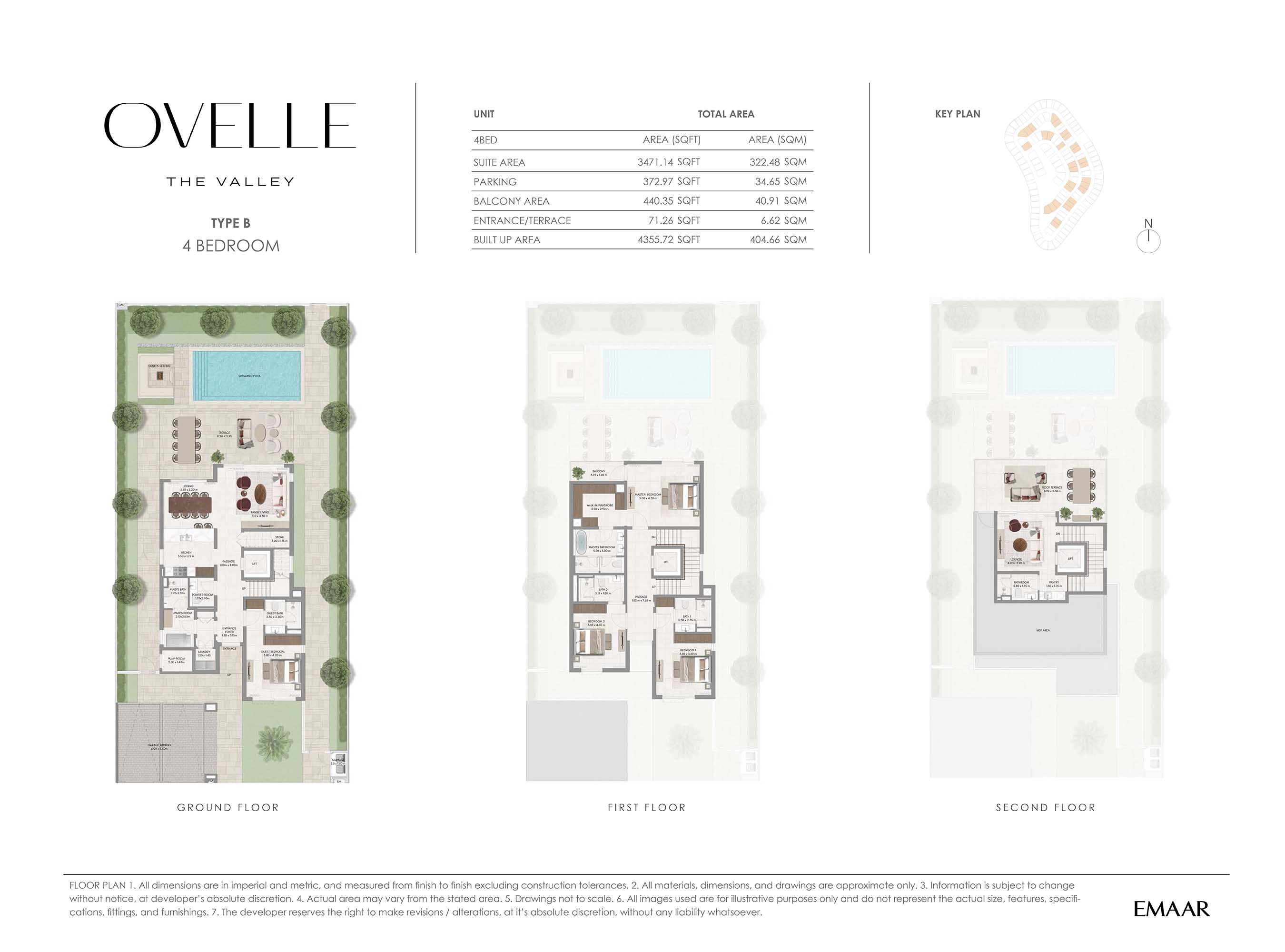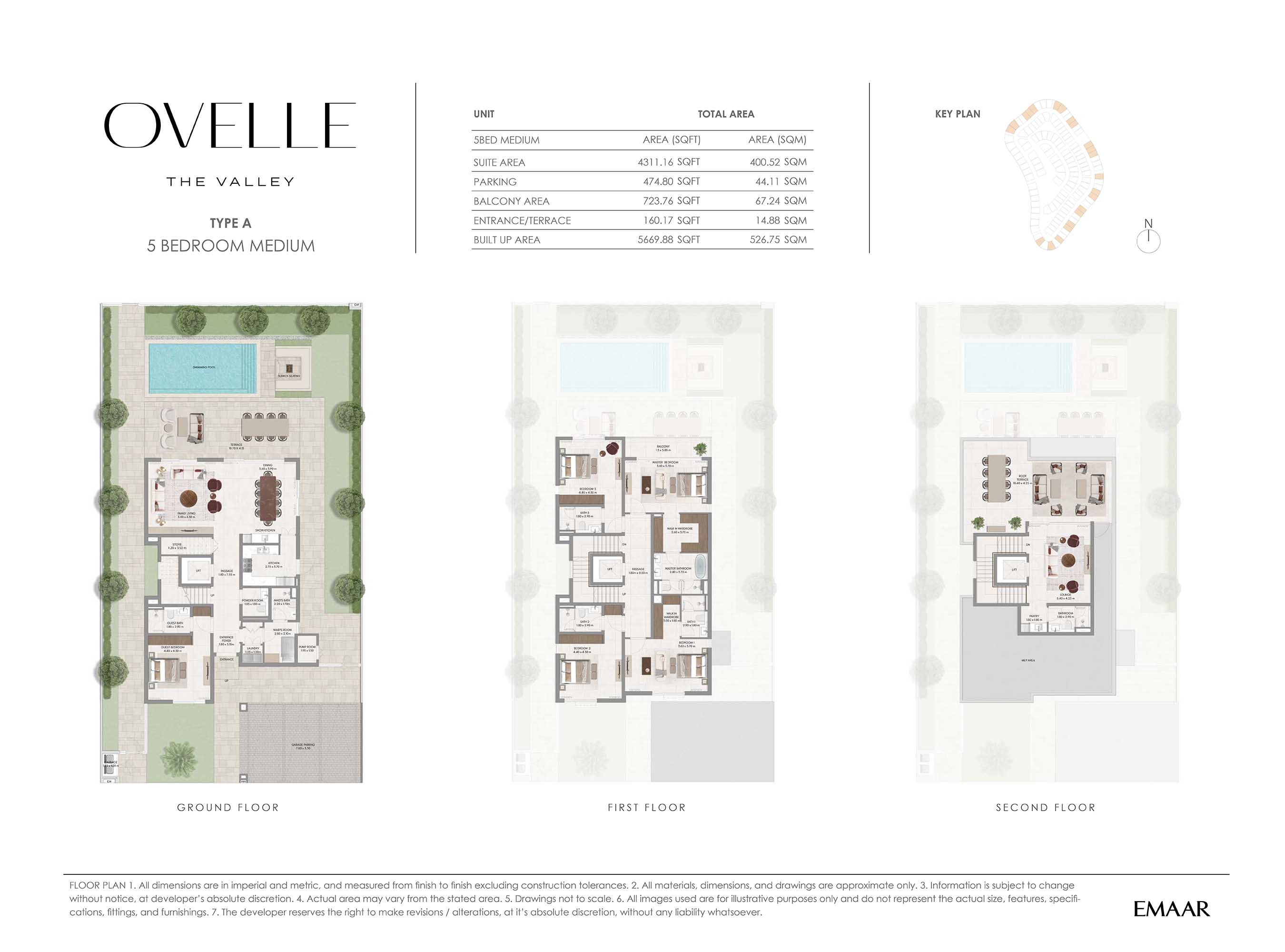 Emaar Ovelle floor plan feature extensive floor plans of 4 & 5-bedroom residences with realistic in terms of layouts with separate areas for privacy. The rooms have been designed to be peaceful with en-suites, integrated wardrobes, and the master bedroom often accompanied by lounge or terrace area. The living spaces are opened to outdoor gardens or patios on large glass doors to allow transition of thee indoor and outdoor space. The spacious floor-plates provides spaces to enjoy the diversity of usages.