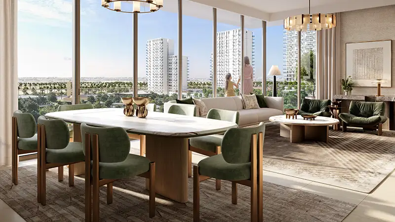 Introducing Emaar’s inviting and opulent master plan housing jewel that is all set to define the norms of upscale living in the green heart of Dubai Hills Estate. This branded Palace hotel-inspired property is a gateway to explore an upscale and shared lifestyle in the verdant and mindfully planned hillside setting. Residents of this property will have the benefits of easier access to its attractions, such as a 180, 000 square metres Dubai Hills Park for outdoor activities, picnics, leisure walks, and socialisation, a championship 18-hole golf course for professional-like golfing experiences, and a bicycle route with open green spaces and pocket parks ensuring lively well-being and engaging experiences for people. Some exceptional options of Dubai Hills Business Park and Dubai Hills Mall are the hubs for professionals and shoppers with world-class co-working spaces, corporate offices, retail options of cafes, fine dining, and entertainment facilities. The highway connectivity is an additional benefit that allows you to access nearby districts and landmarks within minutes.